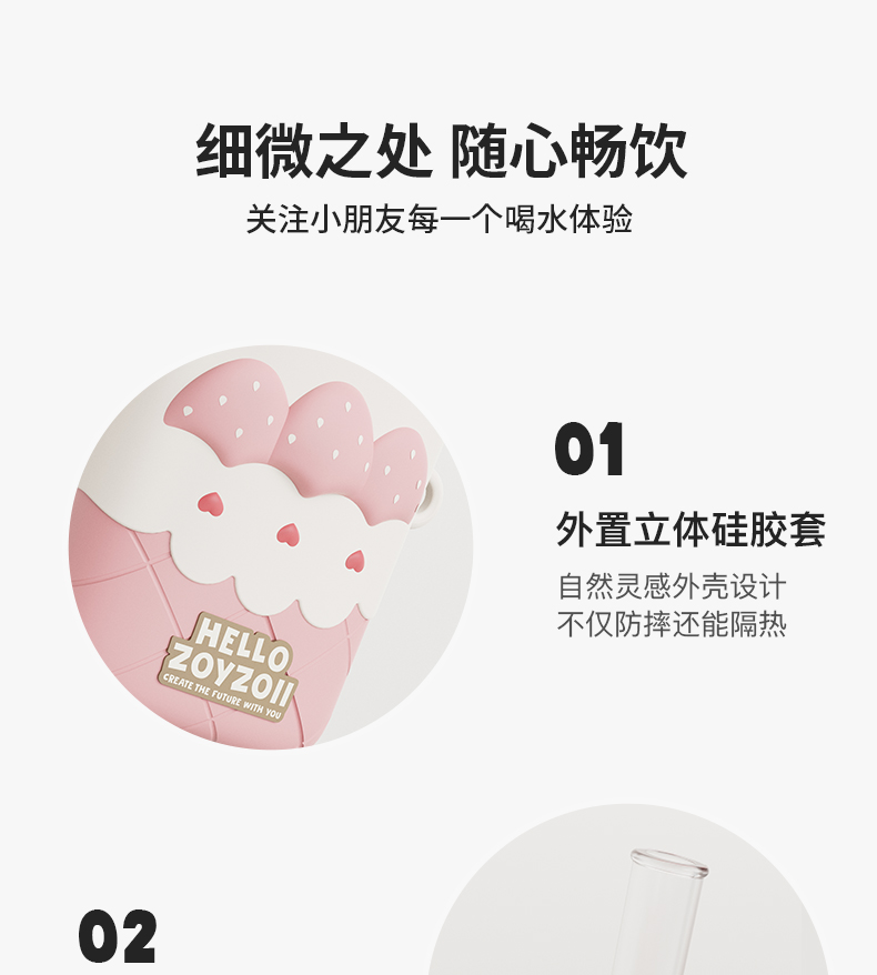 zoyzoii儿童水杯宝宝直饮吸管杯扁扁杯E16