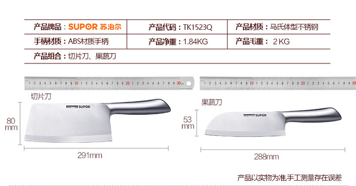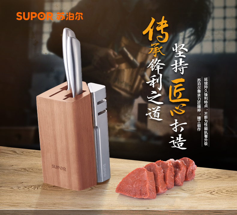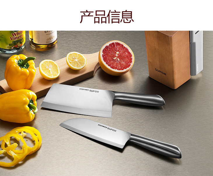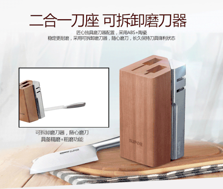 苏泊尔(508537)套装刀具菜刀切片刀厨房多功能厨房刀具家用磨刀石松木刀座 TK1523Q