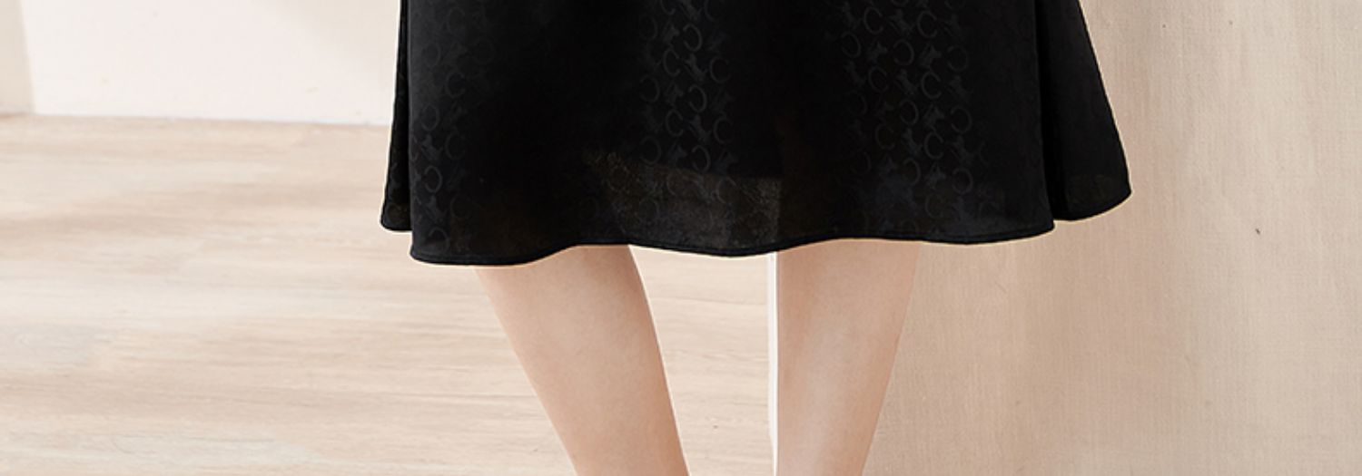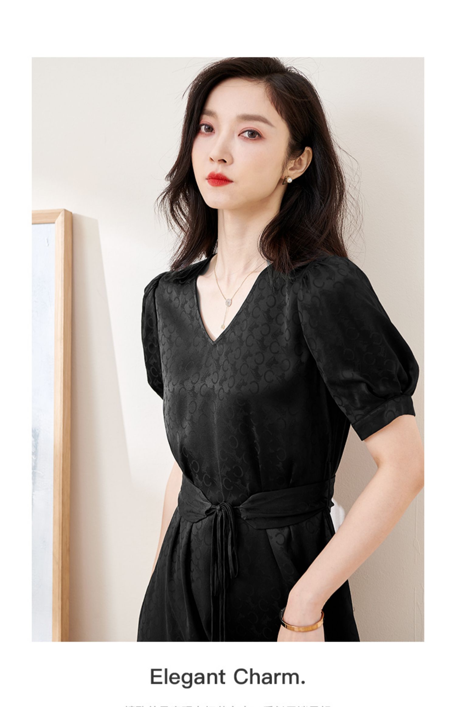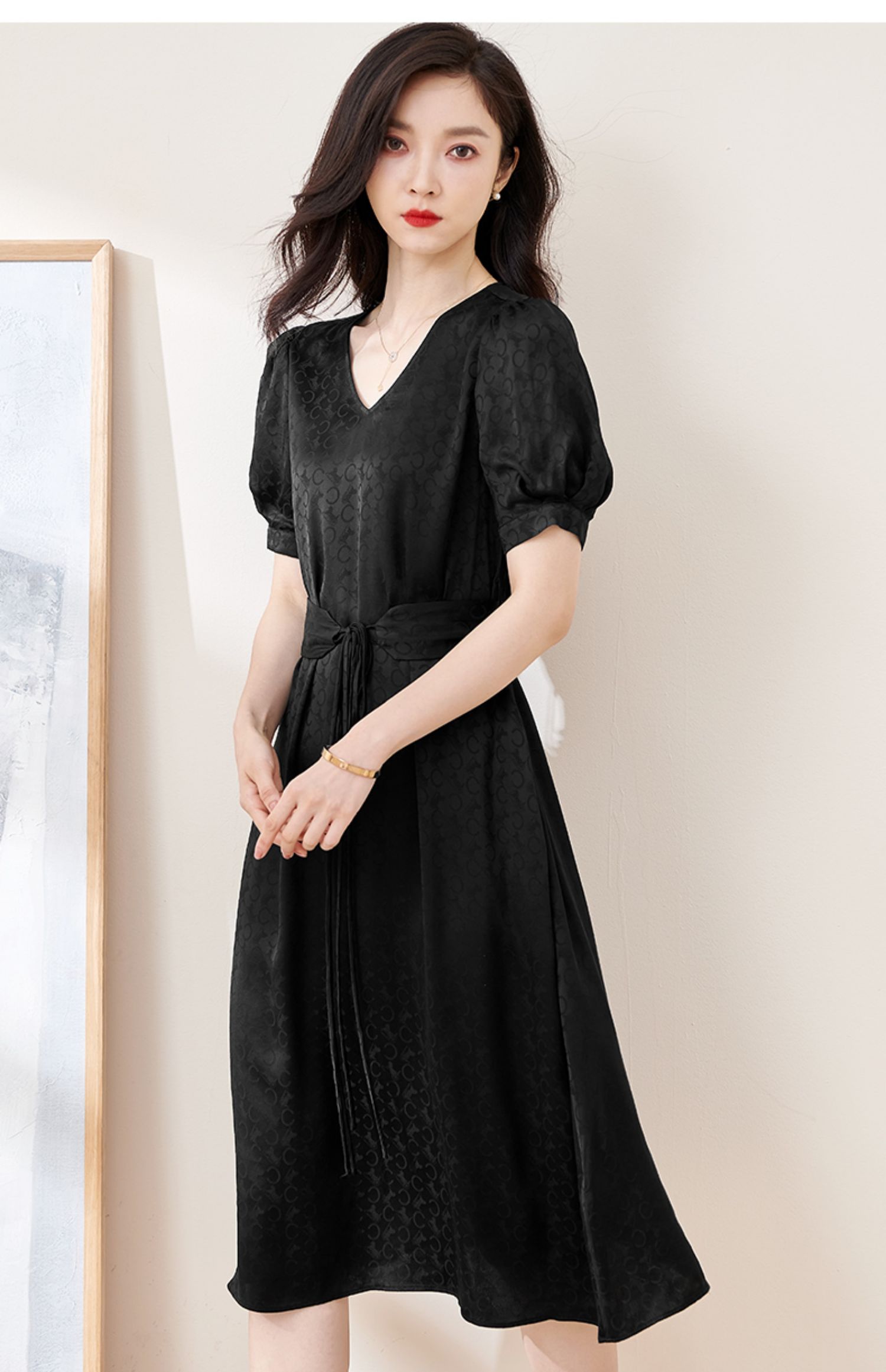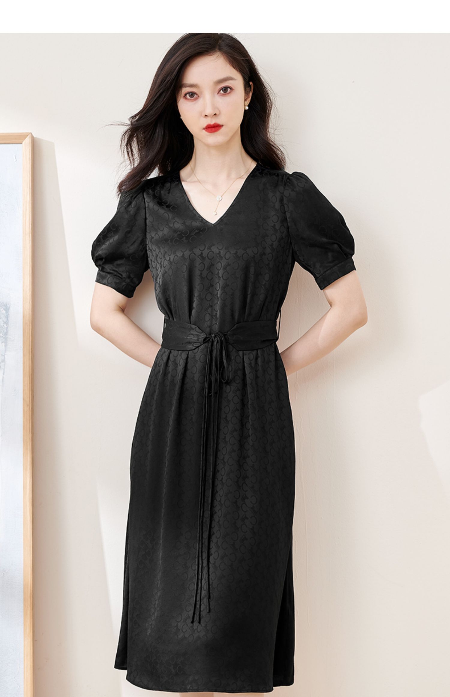 剩S/M 米思阳夏季新款时尚气质优雅提花泡泡袖连衣裙黑色中长裙1908