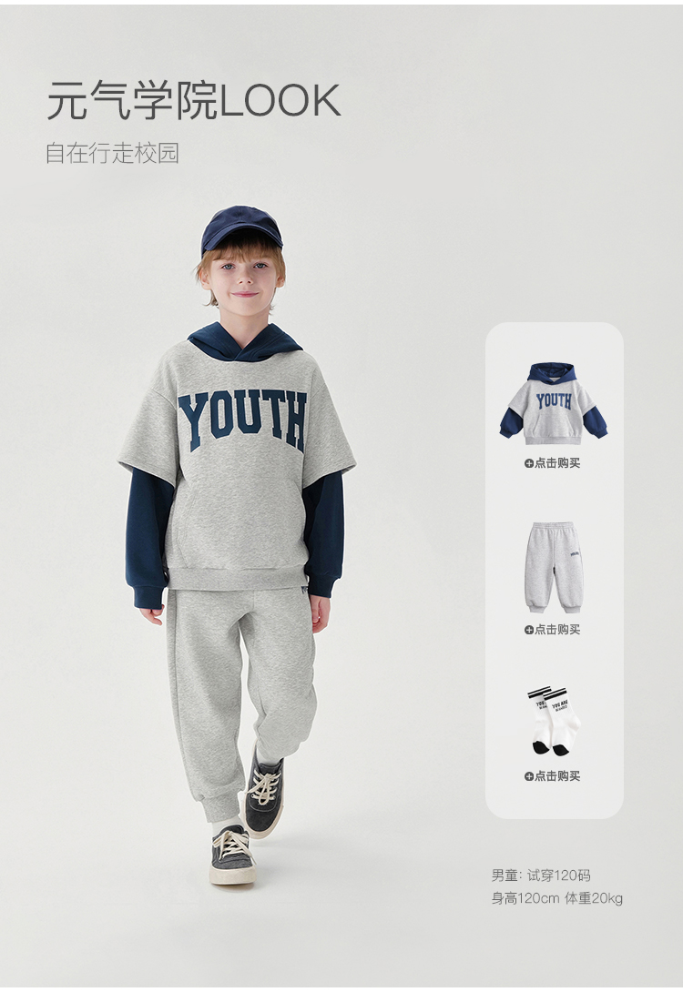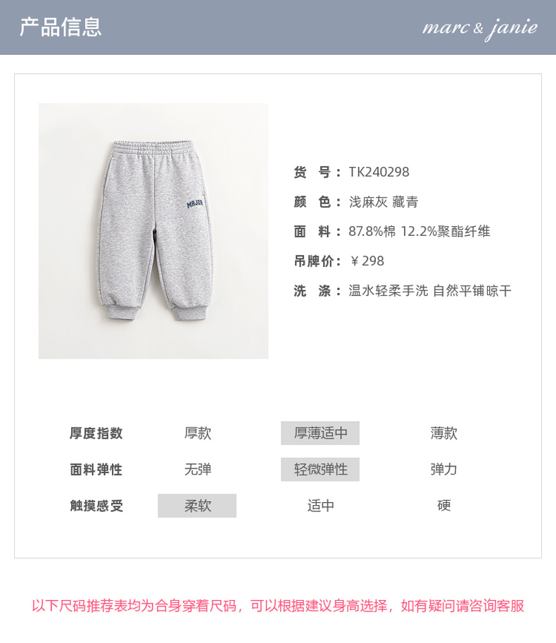 【休闲学院】马克珍妮男童超舒棉字母运动裤 儿童裤子春款 240298