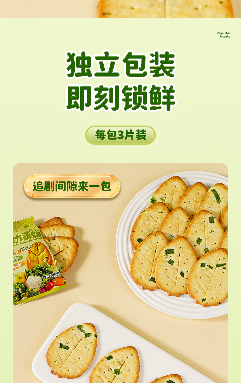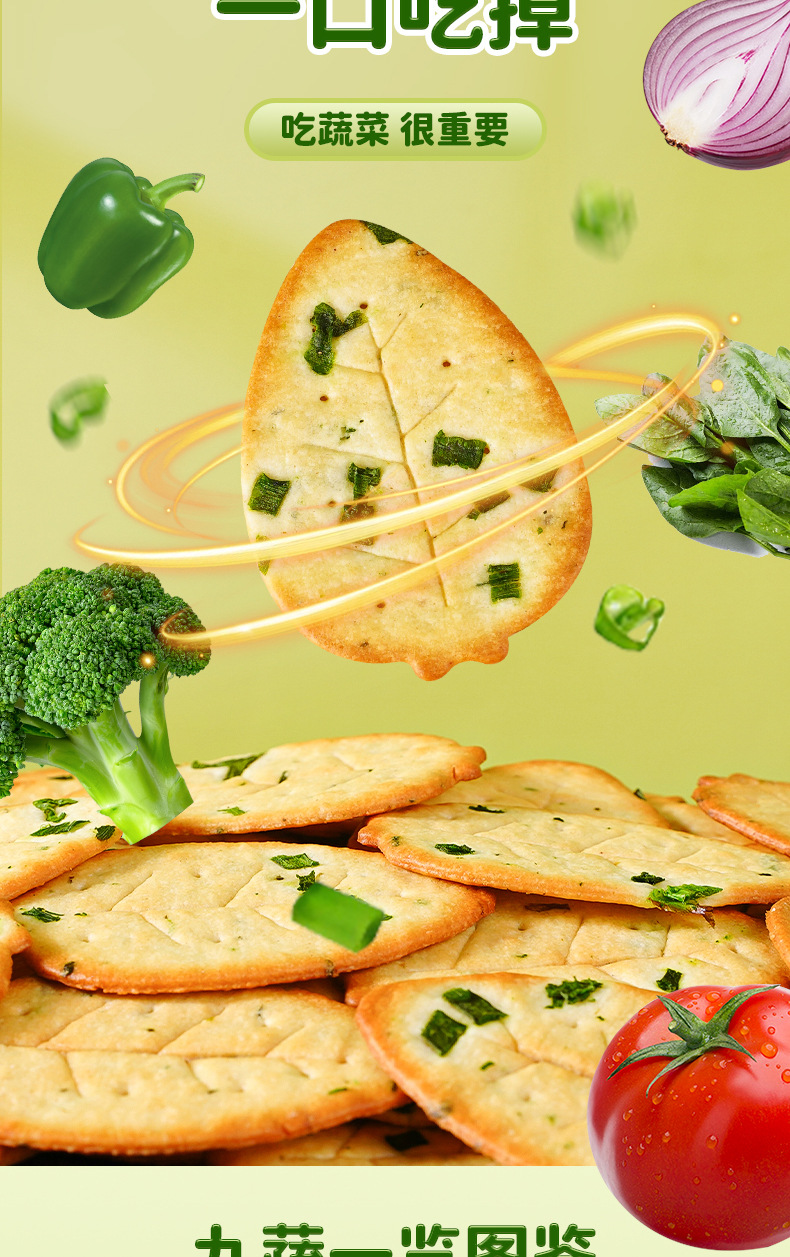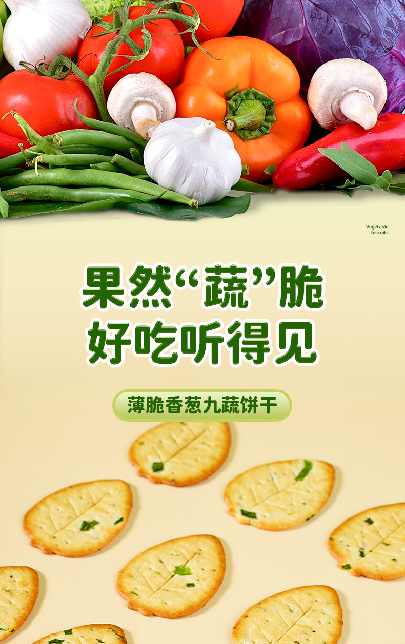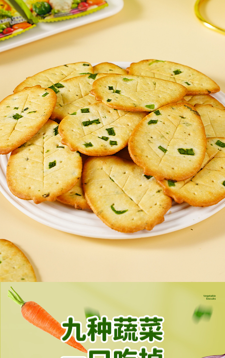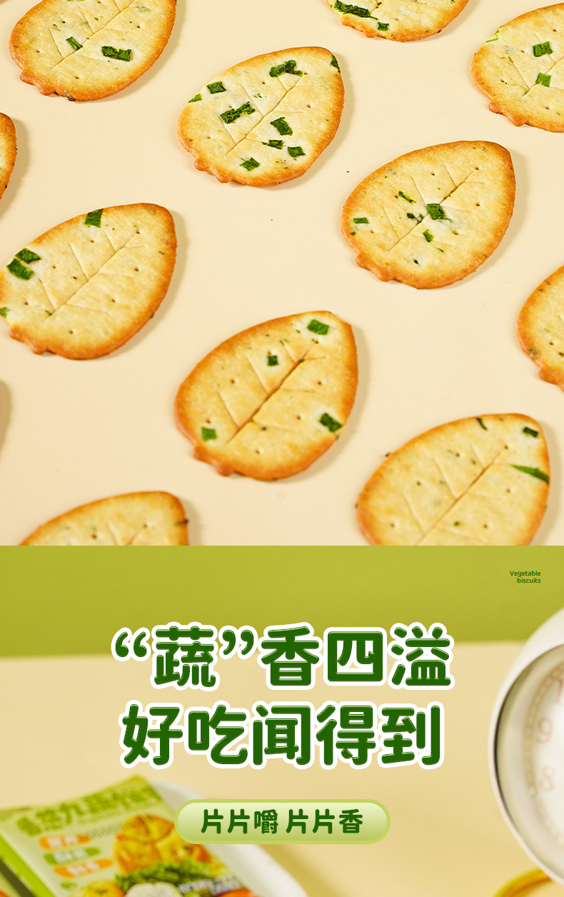 【9.9到手10包❗香葱九蔬菜饼干】果然“蔬”脆,好吃听得见,九种蔬菜一口吃掉,早餐代餐下午茶休闲零食小吃L