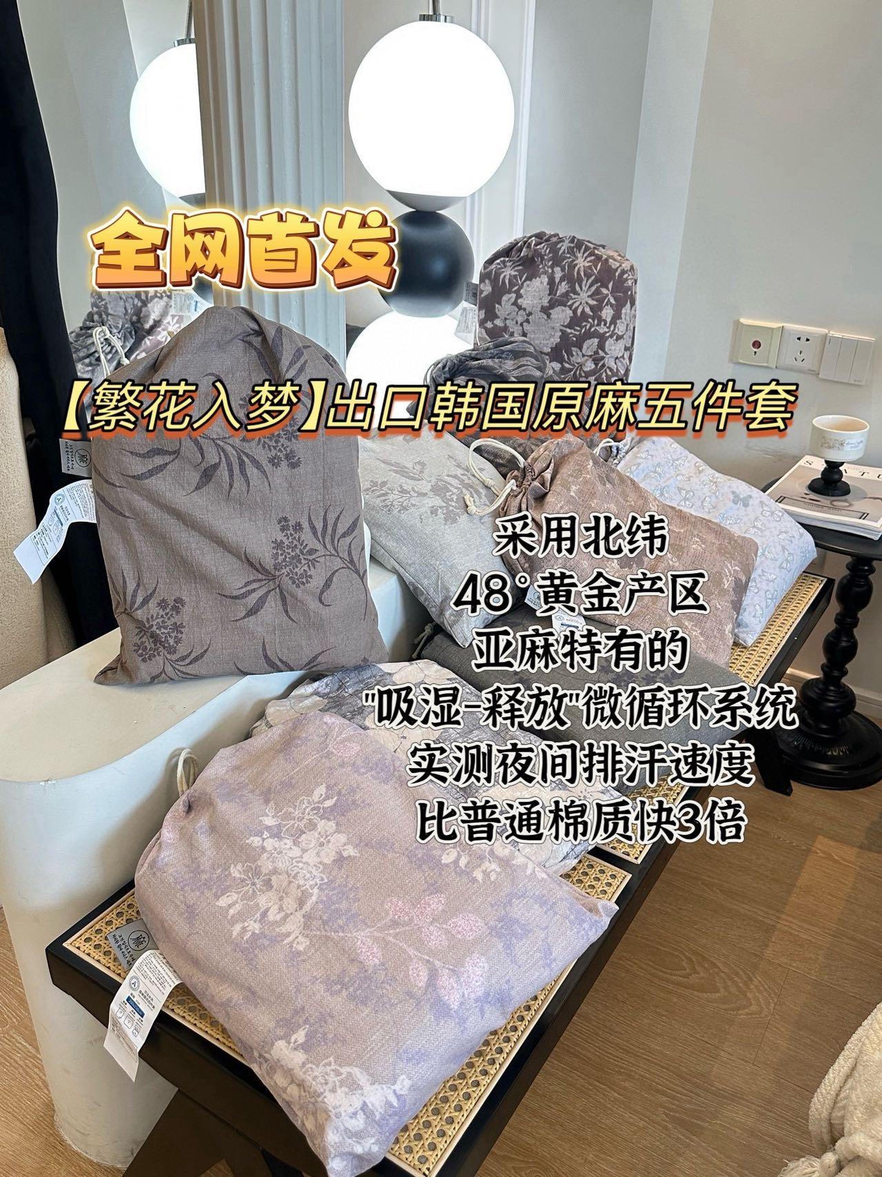 北纬48°黄金产区亚麻❗️『繁花入梦』系列【轻法式原麻五件套】在40℃也能享受20℃山涧般的舒爽裸睡感❗️