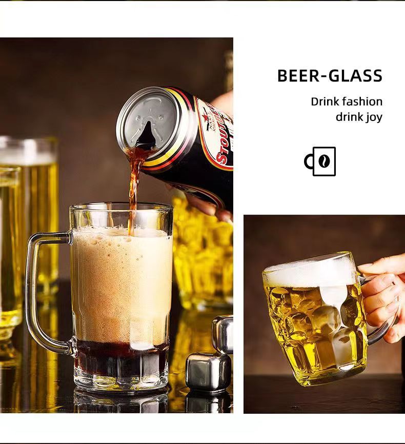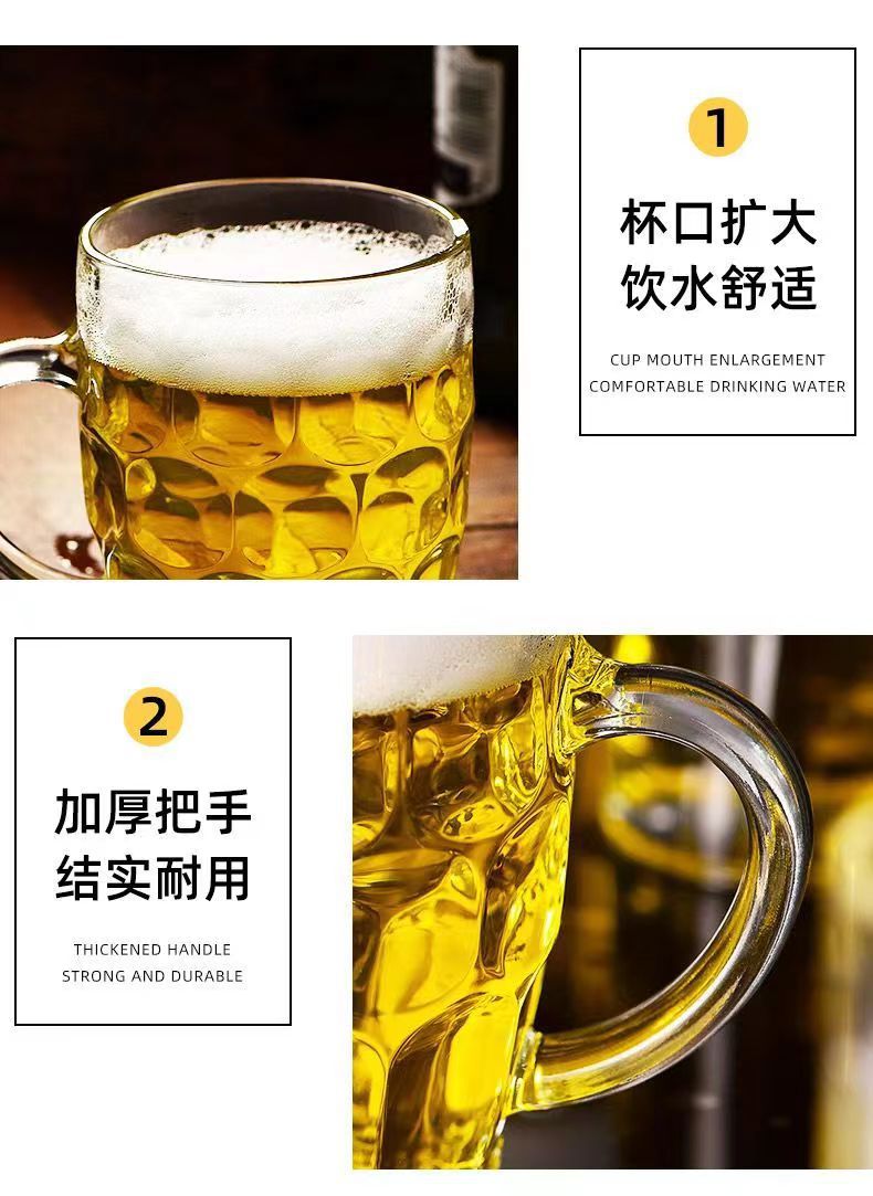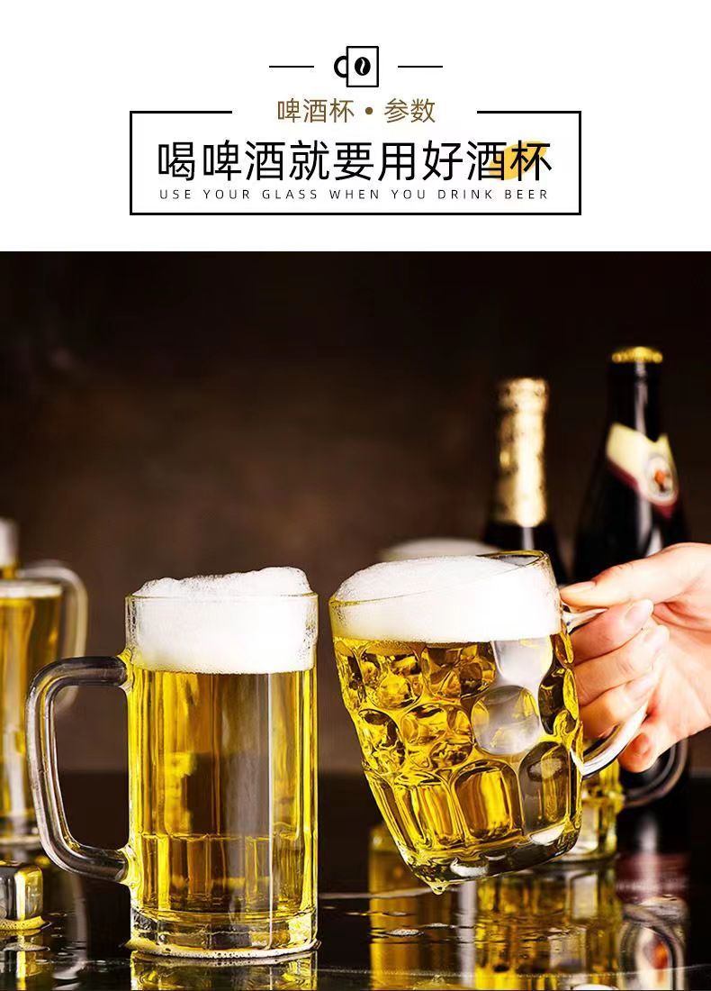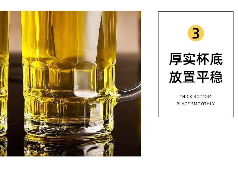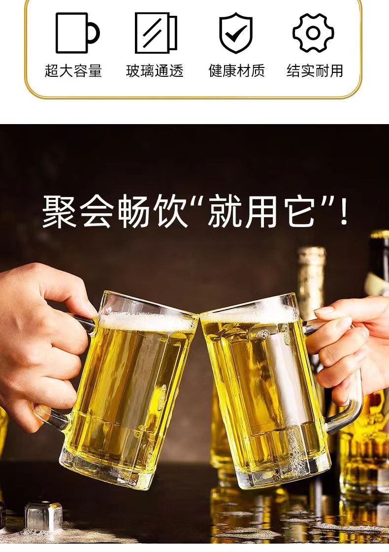 「19.9到手4只装」大容量加厚啤酒杯带把手家用玻璃杯透明无铅水杯餐饮用具