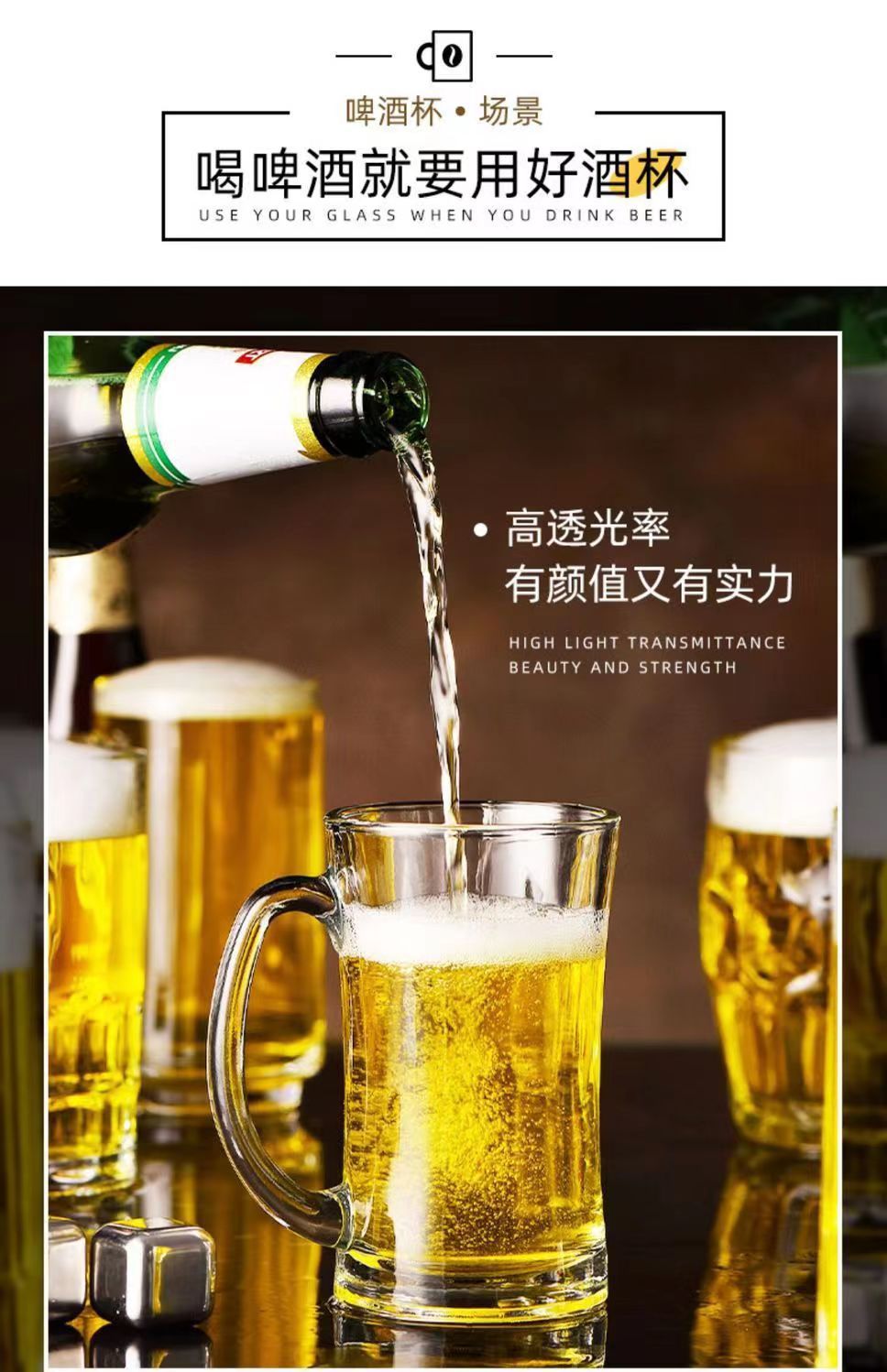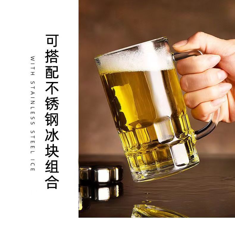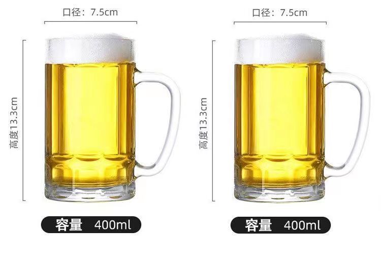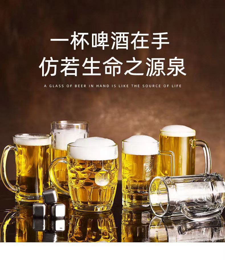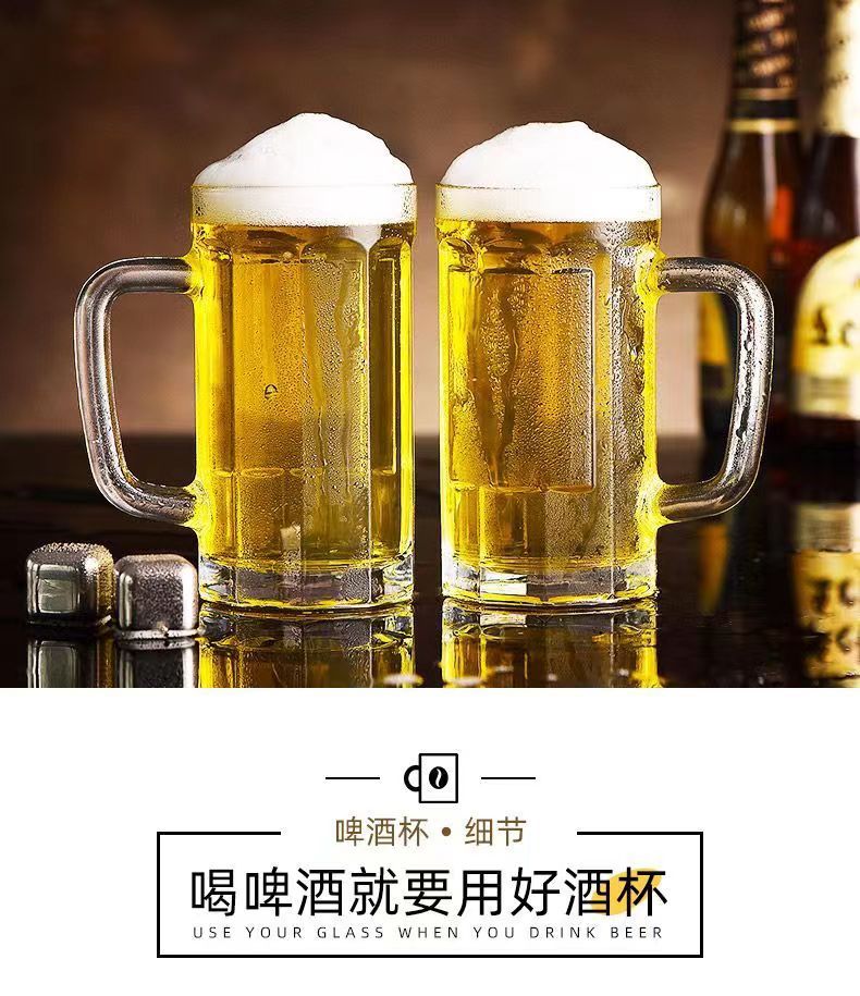 「19.9到手4只装」大容量加厚啤酒杯带把手家用玻璃杯透明无铅水杯餐饮用具
