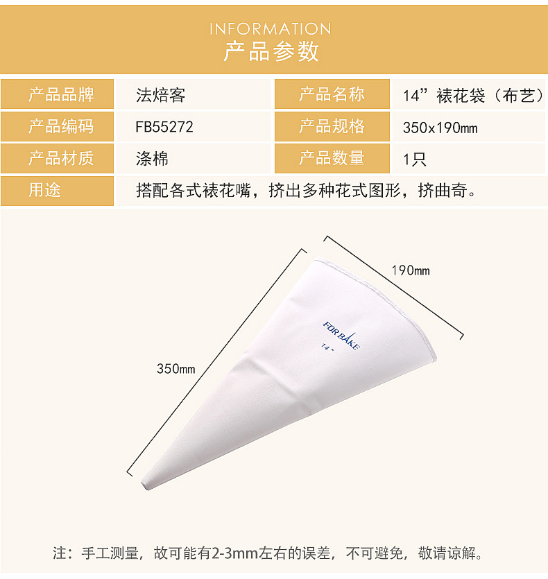 FB55272 法焙客14"裱花袋(布艺)蛋糕裱花挤奶油曲奇 可反复使用
