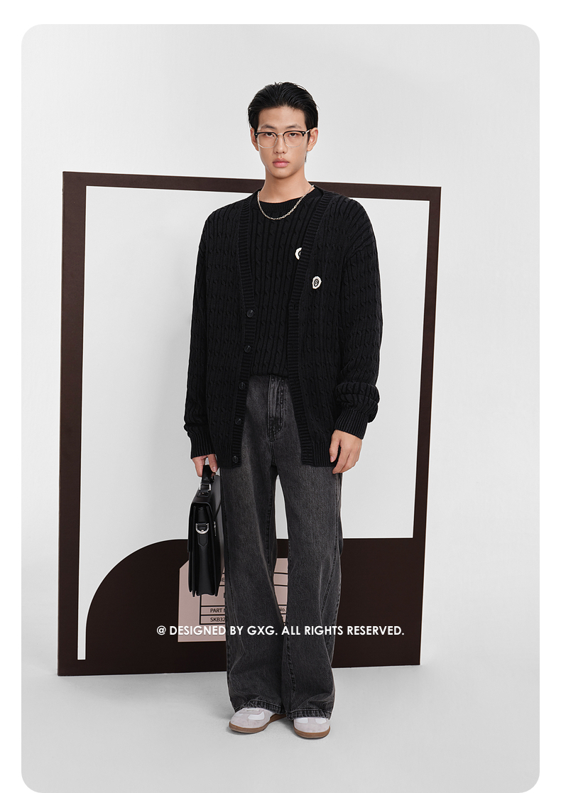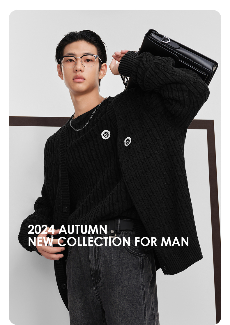 GXG男装 新年绣花毛衣拼接针织毛衫外穿简约外套 2025年冬季新品