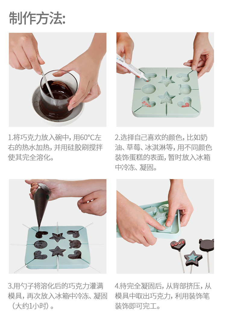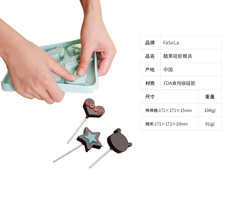 FaSoLa烘培DIY工具棒棒糖巧克力硅胶模具儿童方形糖果模具