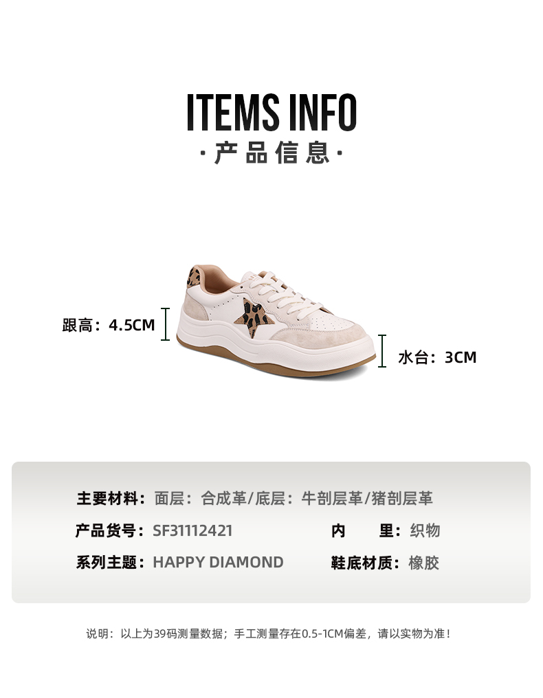 Safiya/索菲娅 潮趣星星波浪底2023年春季新款拼色运动松糕面包大头休闲板鞋 SF31112420