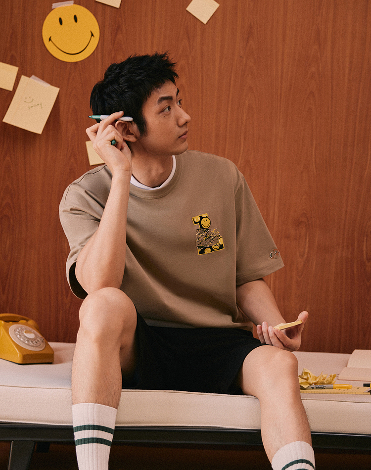 小鱼 × SMILEY联名 2024春夏 卡通笑脸圆领短袖T恤