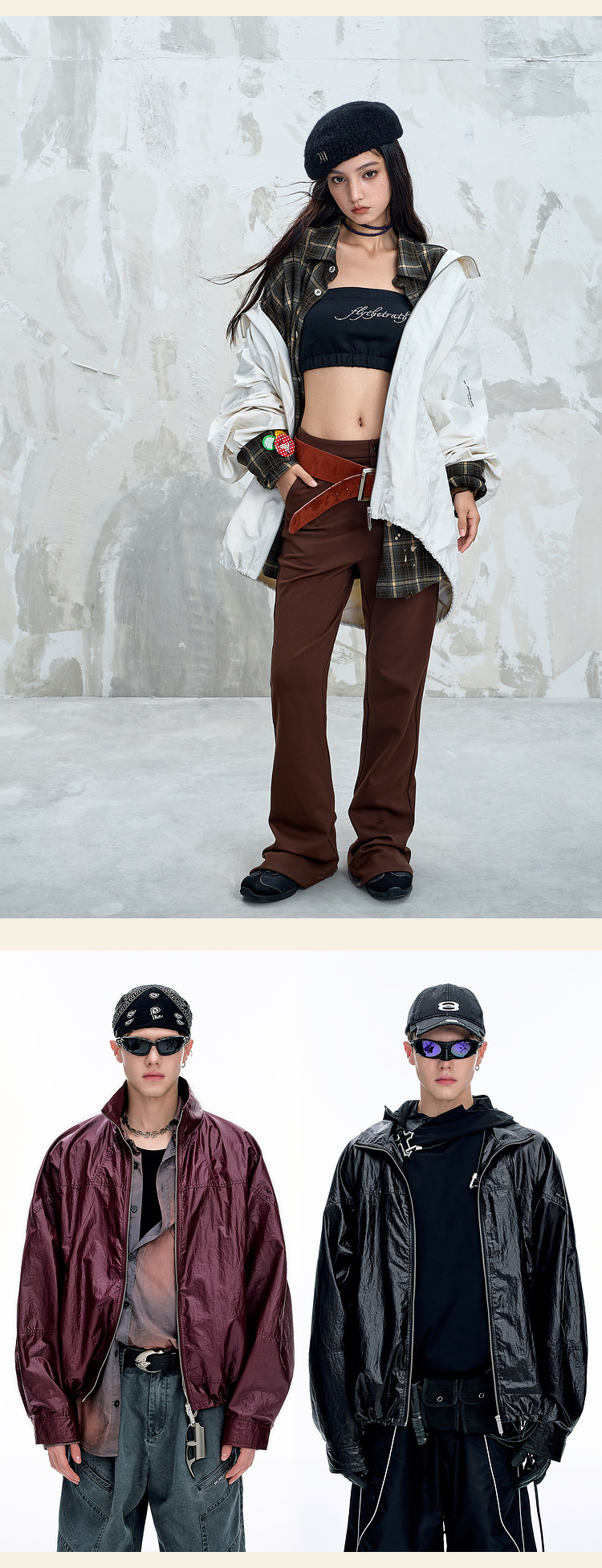 BJHG不计后果美式夹克外套男女款秋季2025新款情侣高级光泽感皮衣