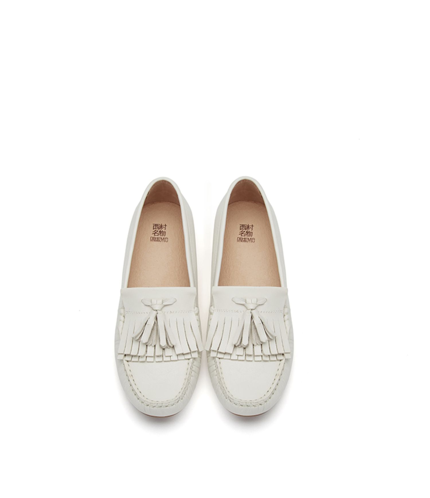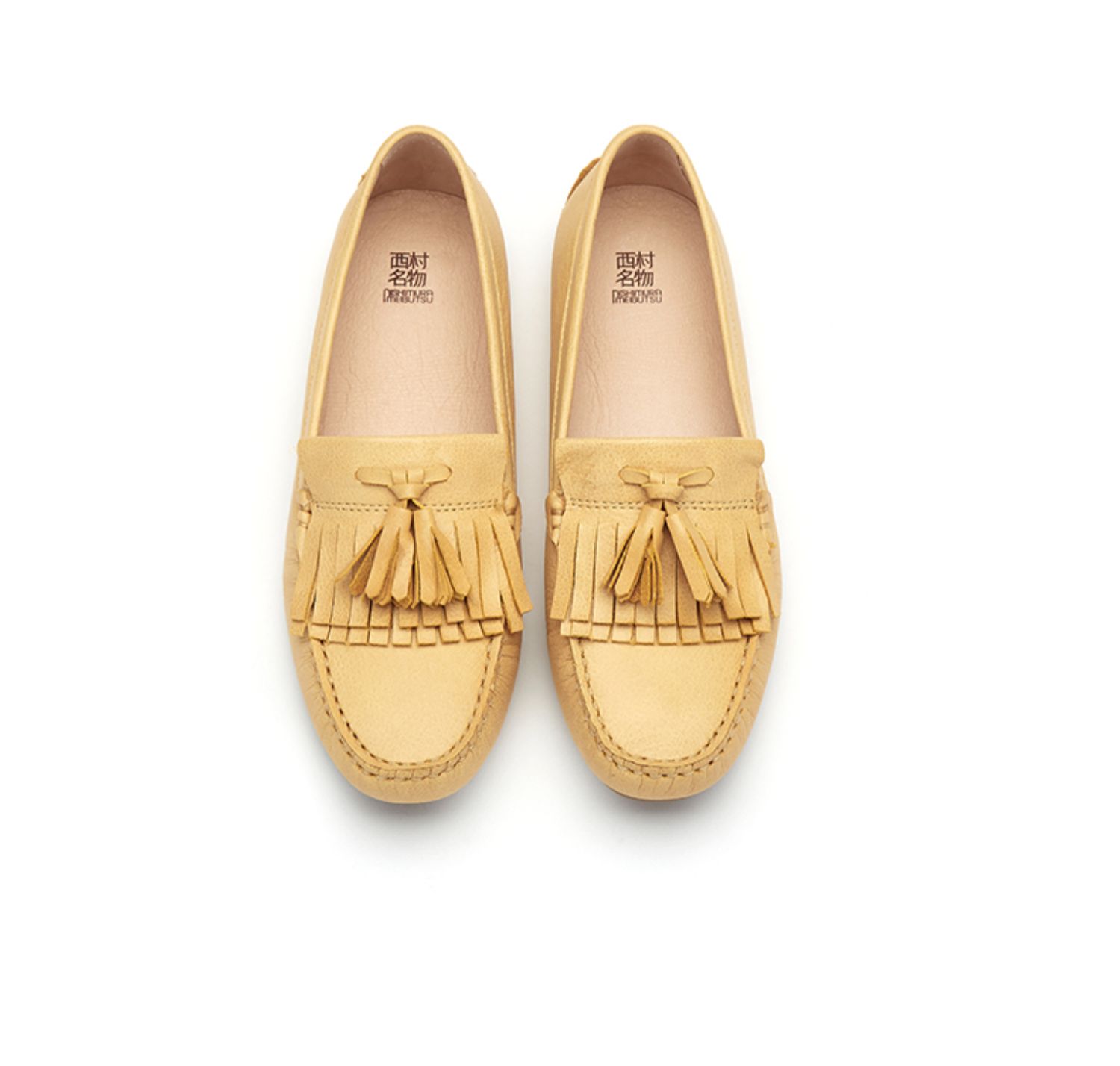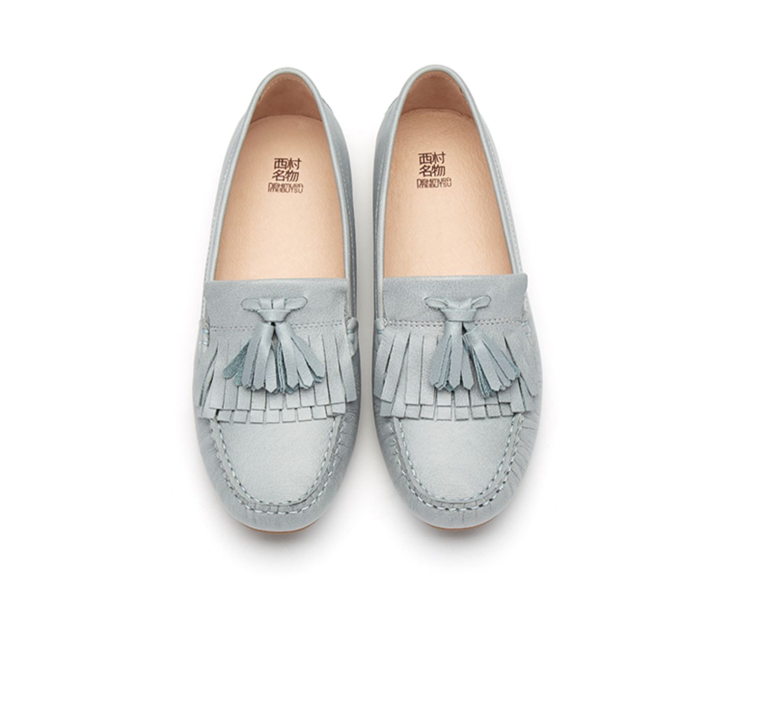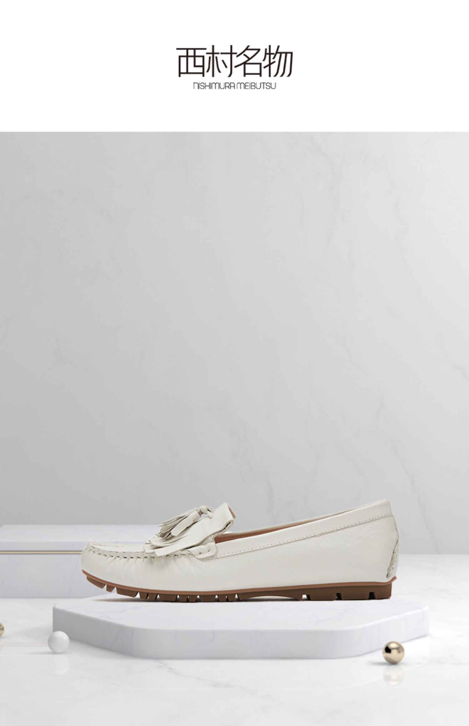 西村名物2021春新款流速真皮软底女鞋一脚蹬浅口平跟乐福鞋T21AM14691