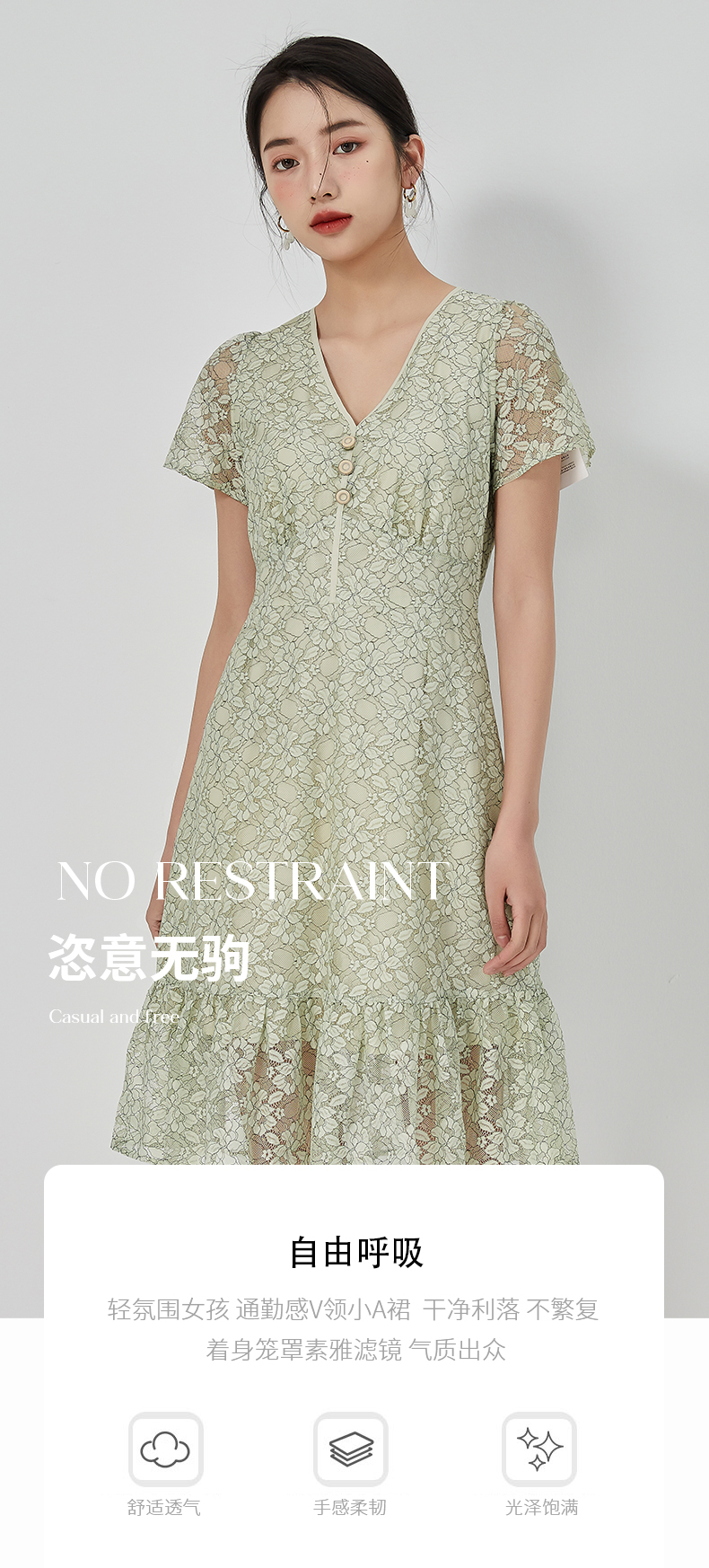 oldcolour2023夏季新款绿色清新淡雅V领A字碎花连衣裙GN21101731