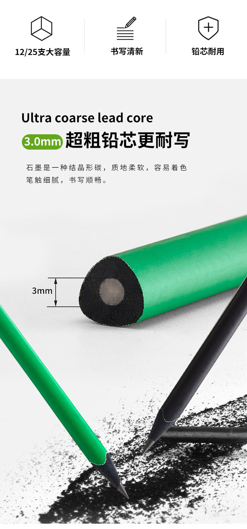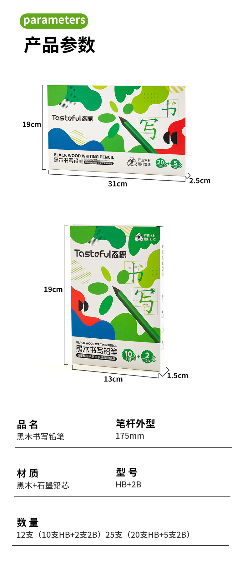 【商品名称】态思黑木书写铅笔