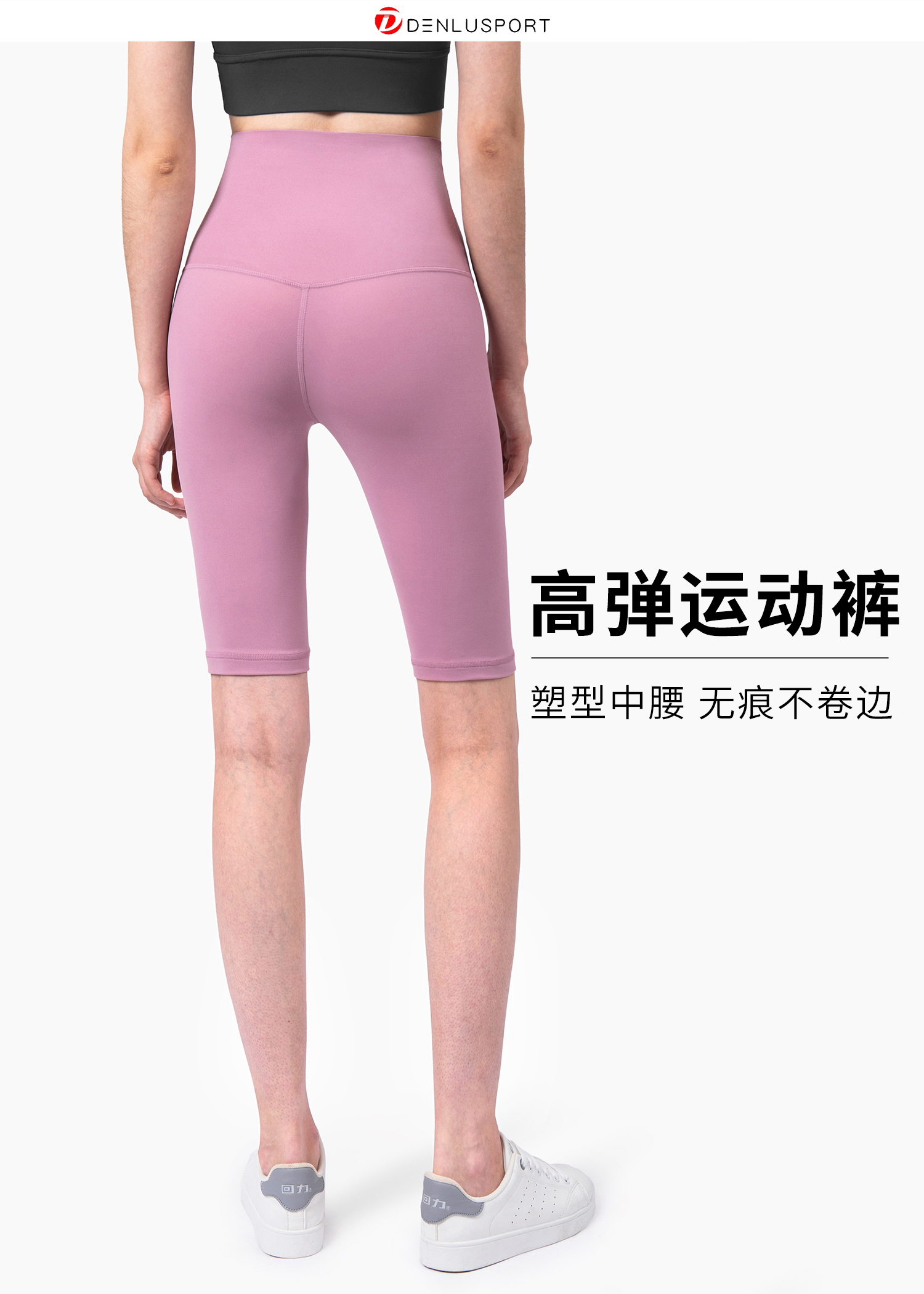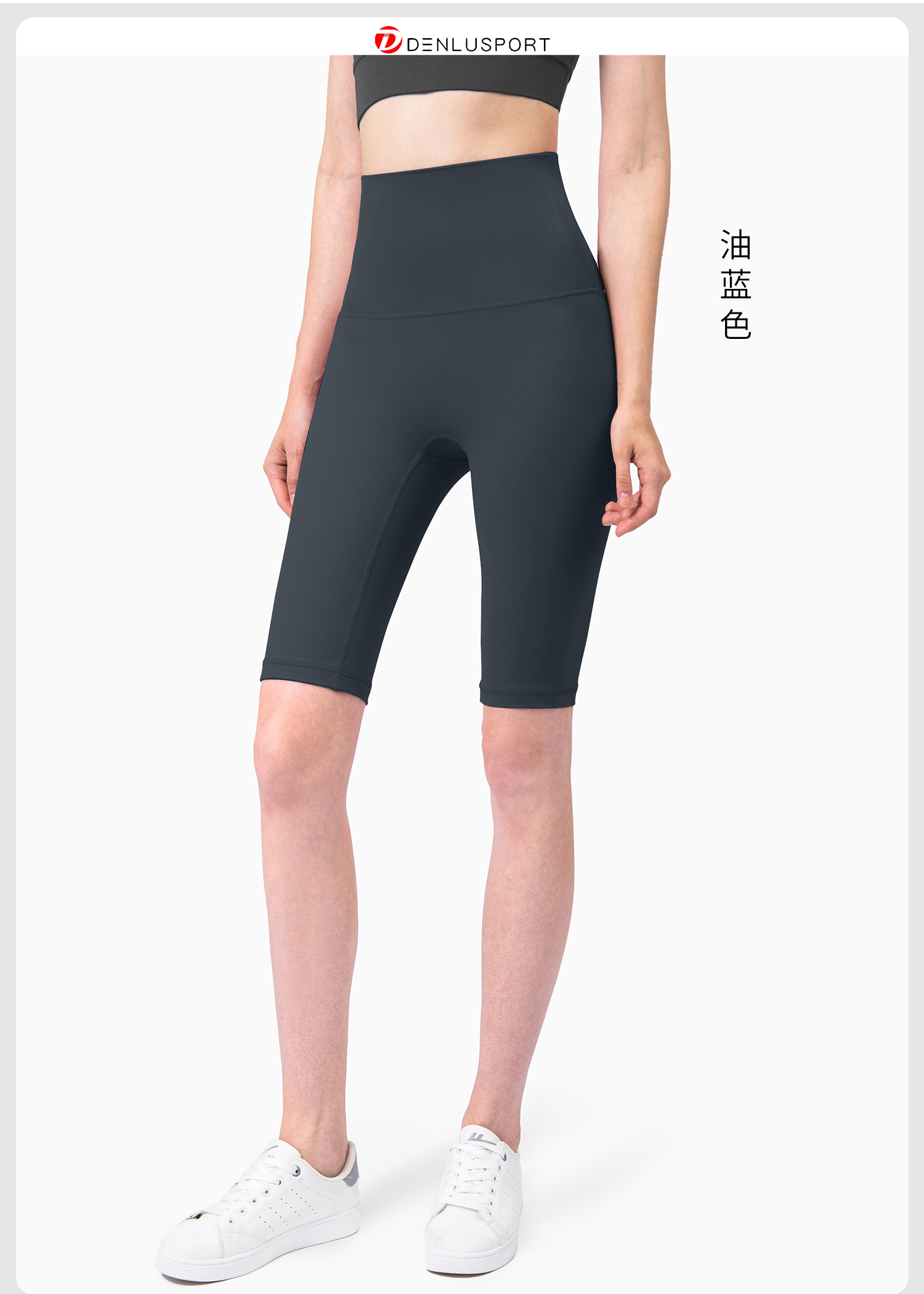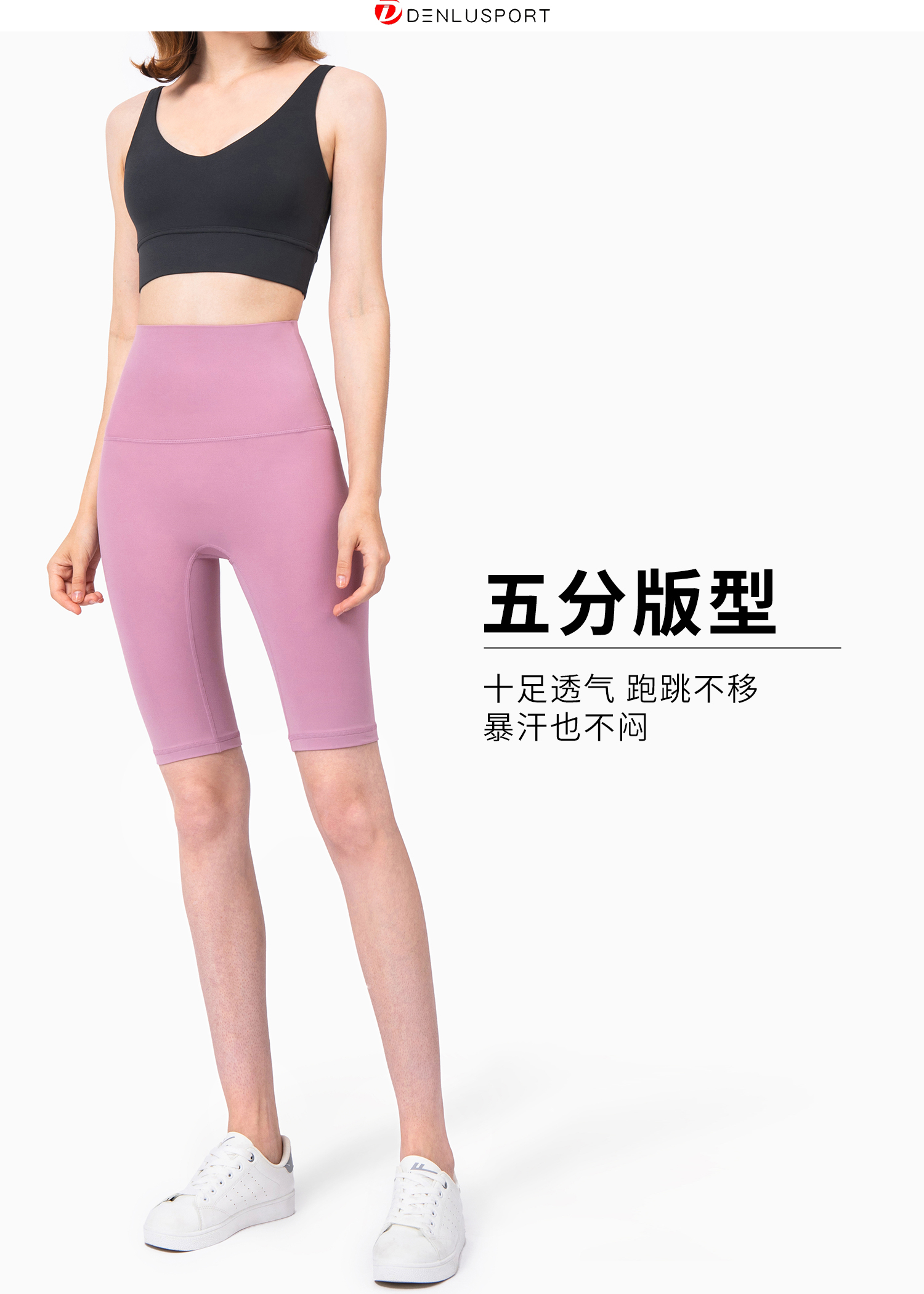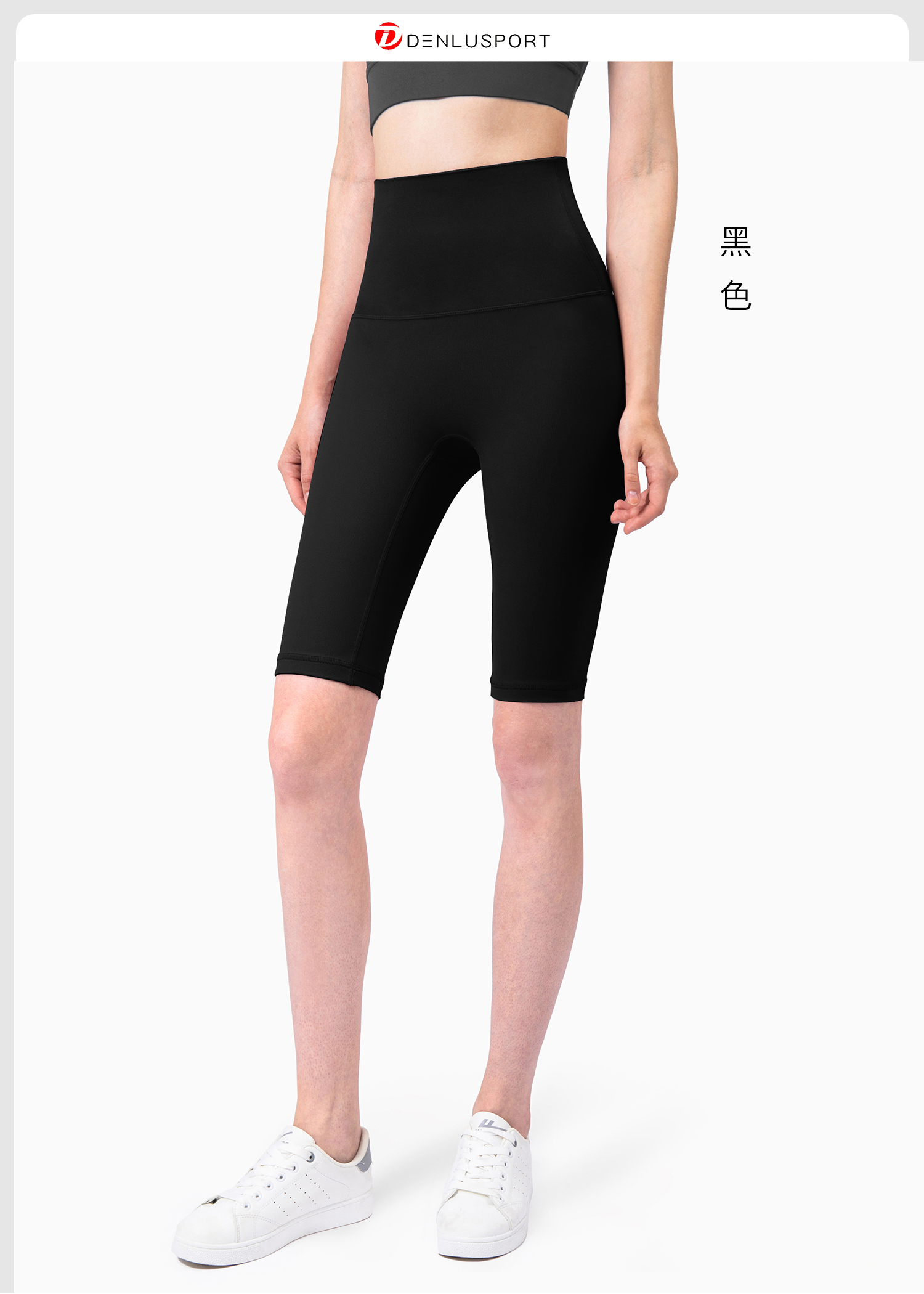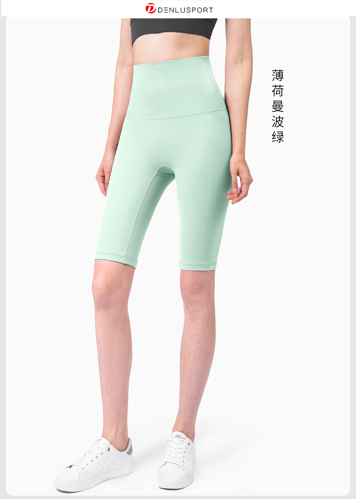 新款高腰提臀外穿瑜伽健身五分短裤双面锦纶运动紧身裸感骑行裤DK95102#