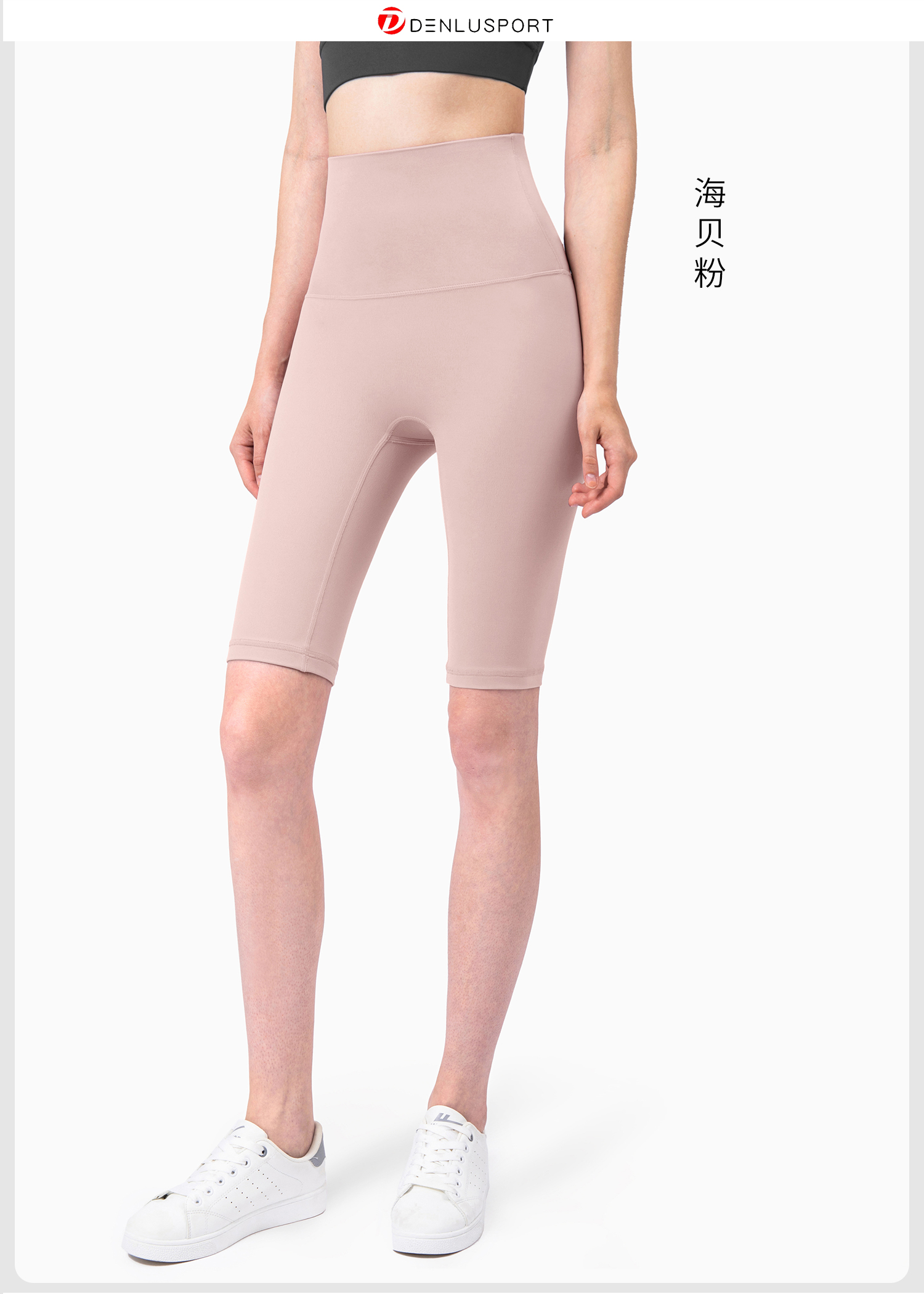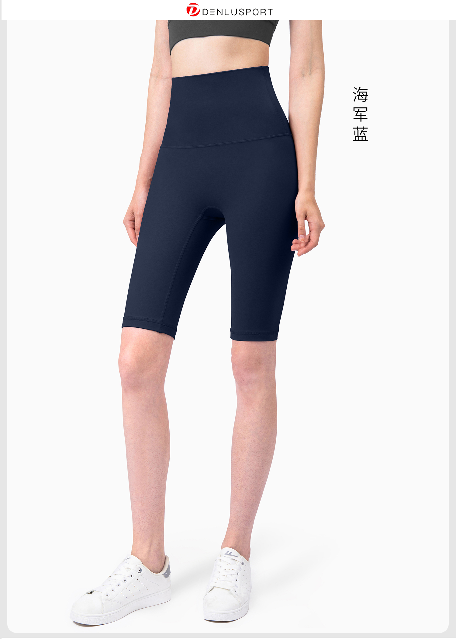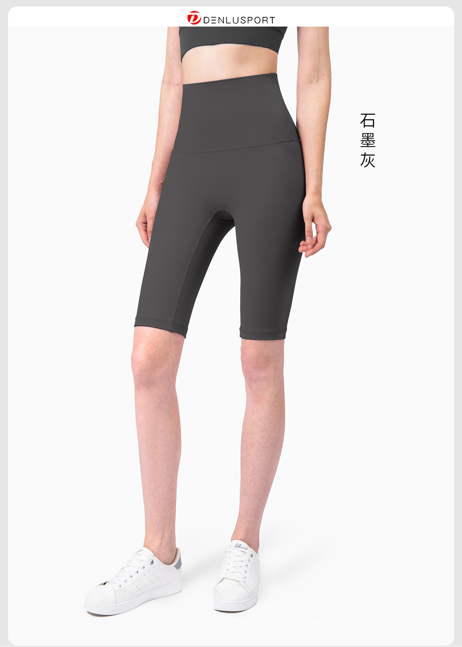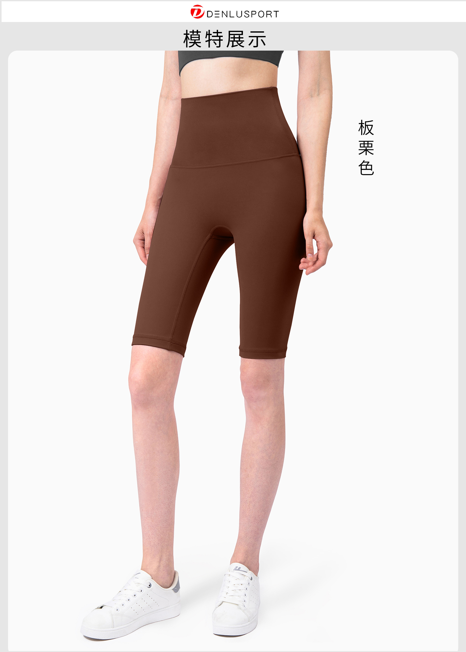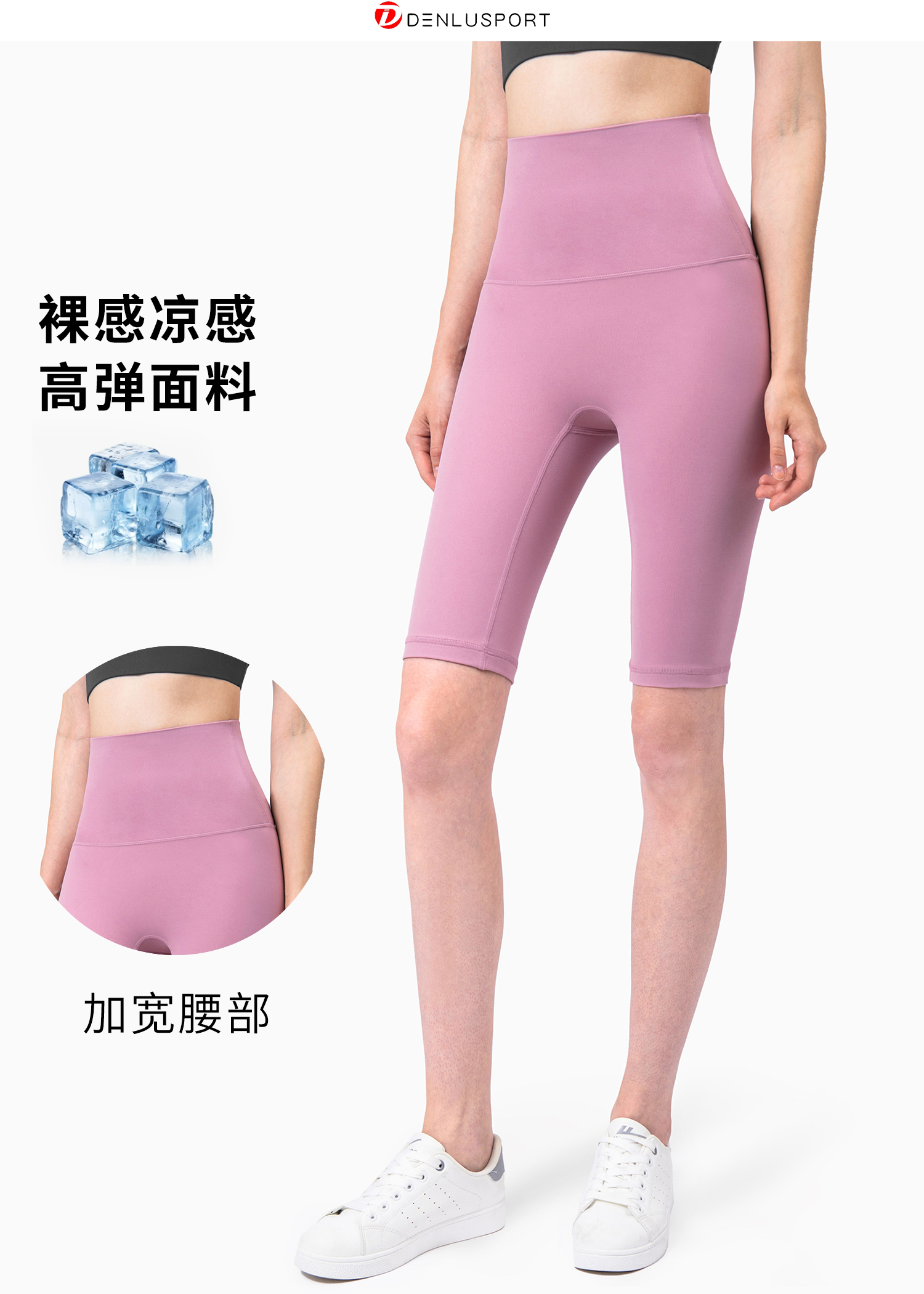新款高腰提臀外穿瑜伽健身五分短裤双面锦纶运动紧身裸感骑行裤DK95102#