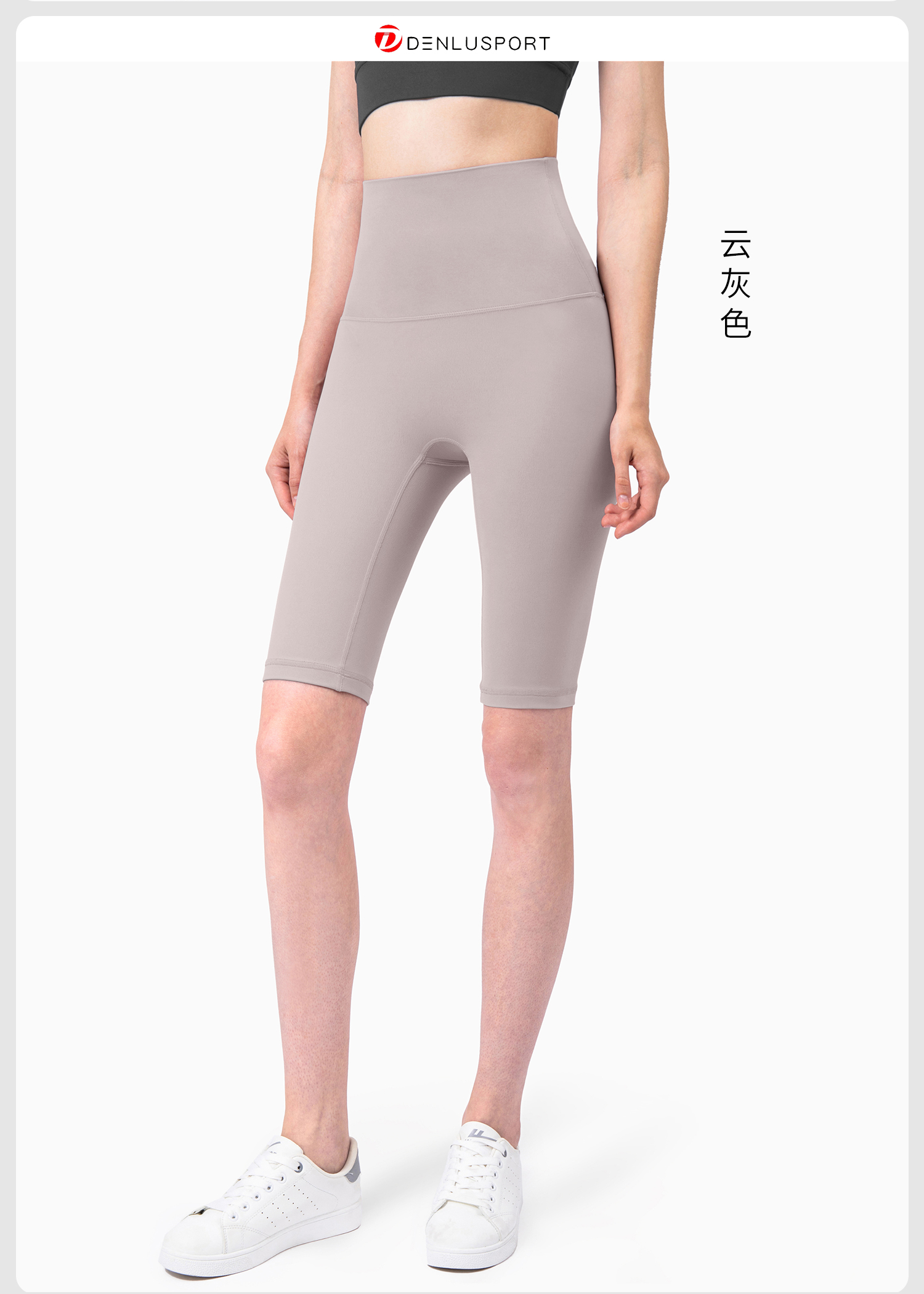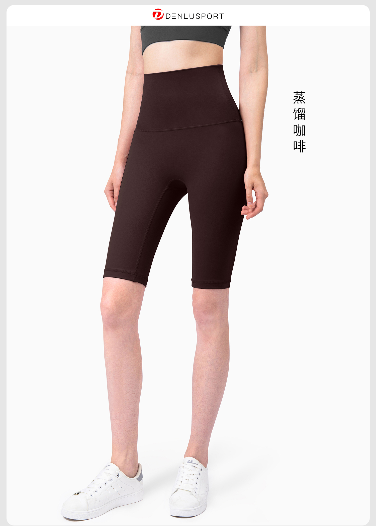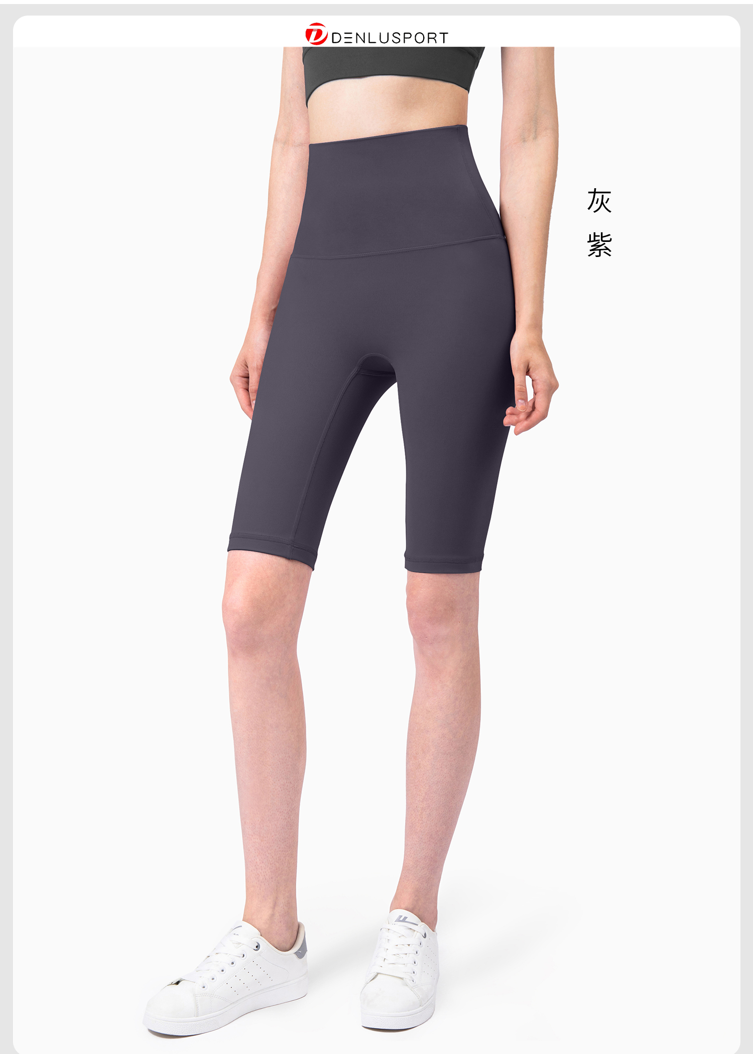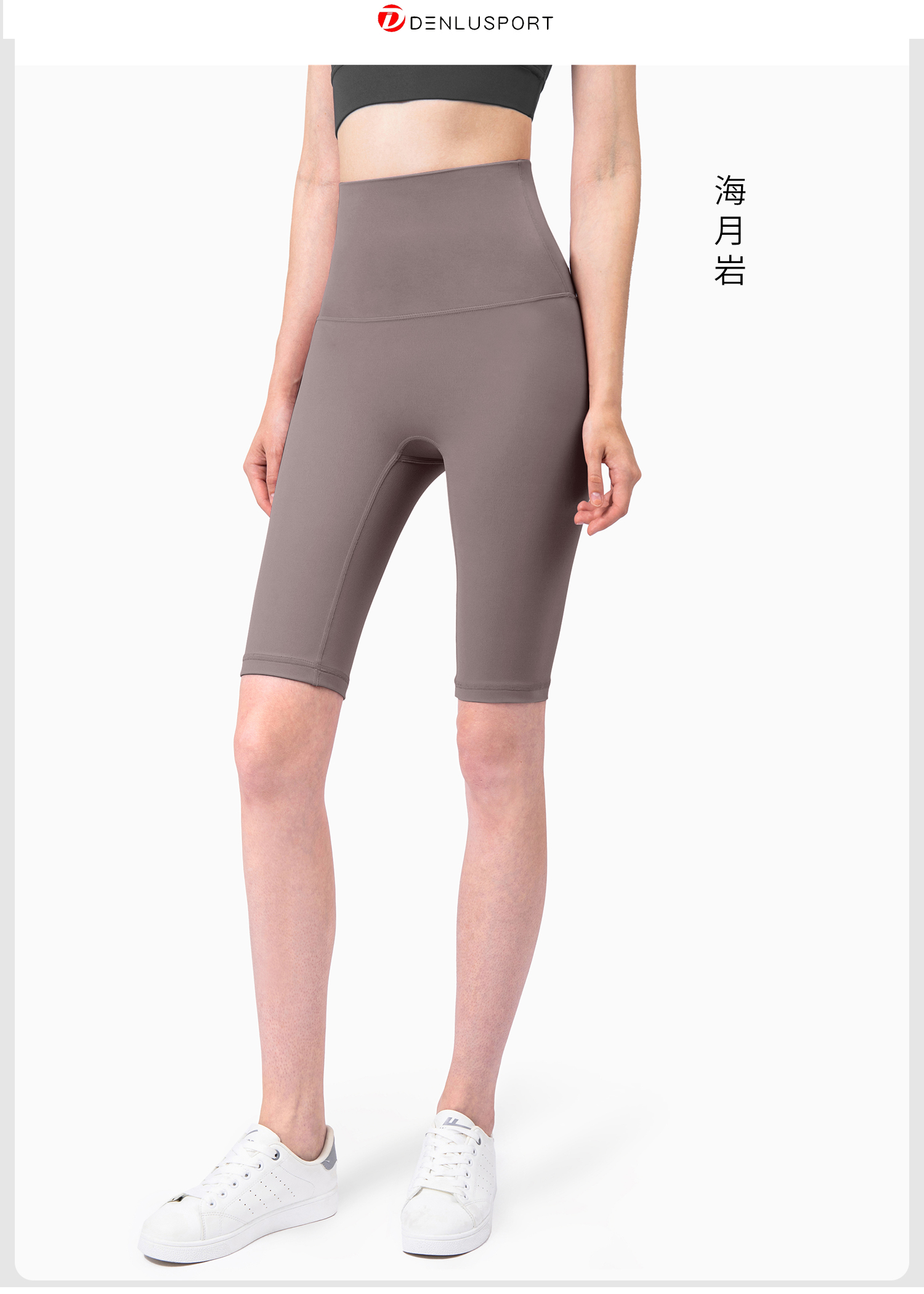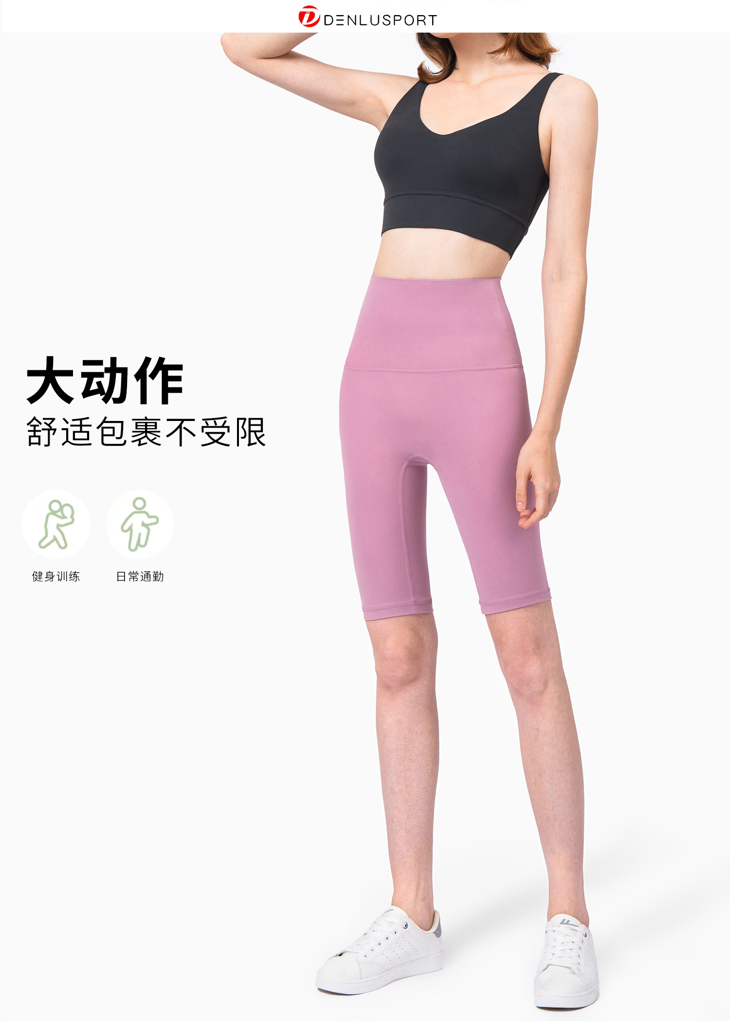 新款高腰提臀外穿瑜伽健身五分短裤双面锦纶运动紧身裸感骑行裤DK95102#