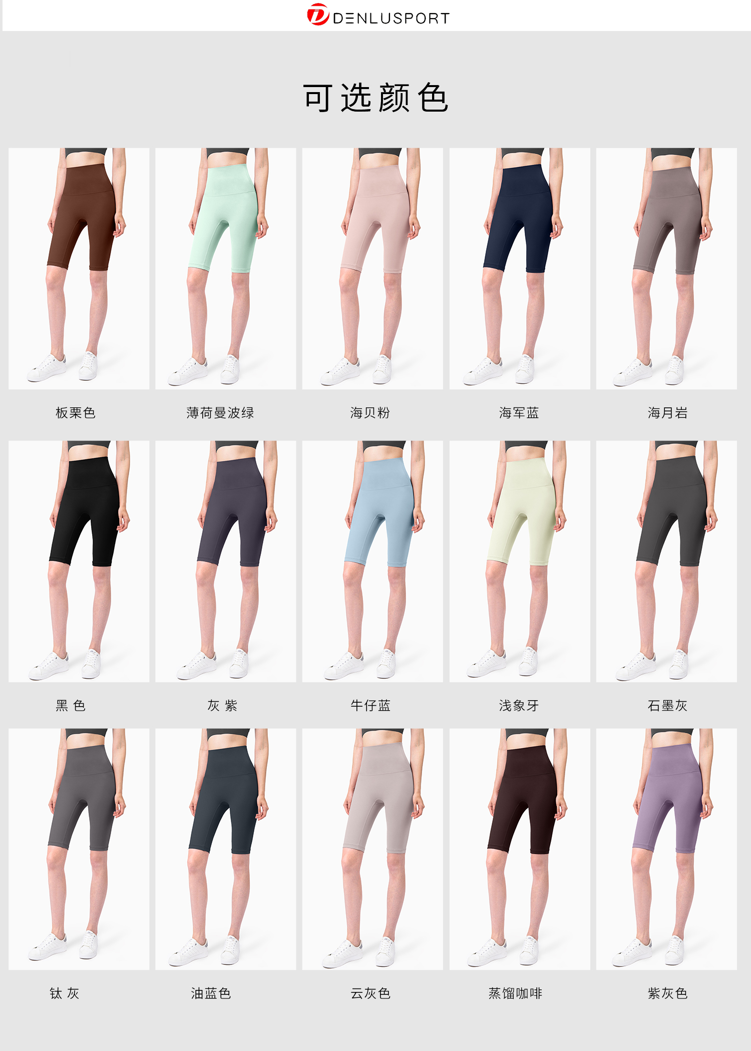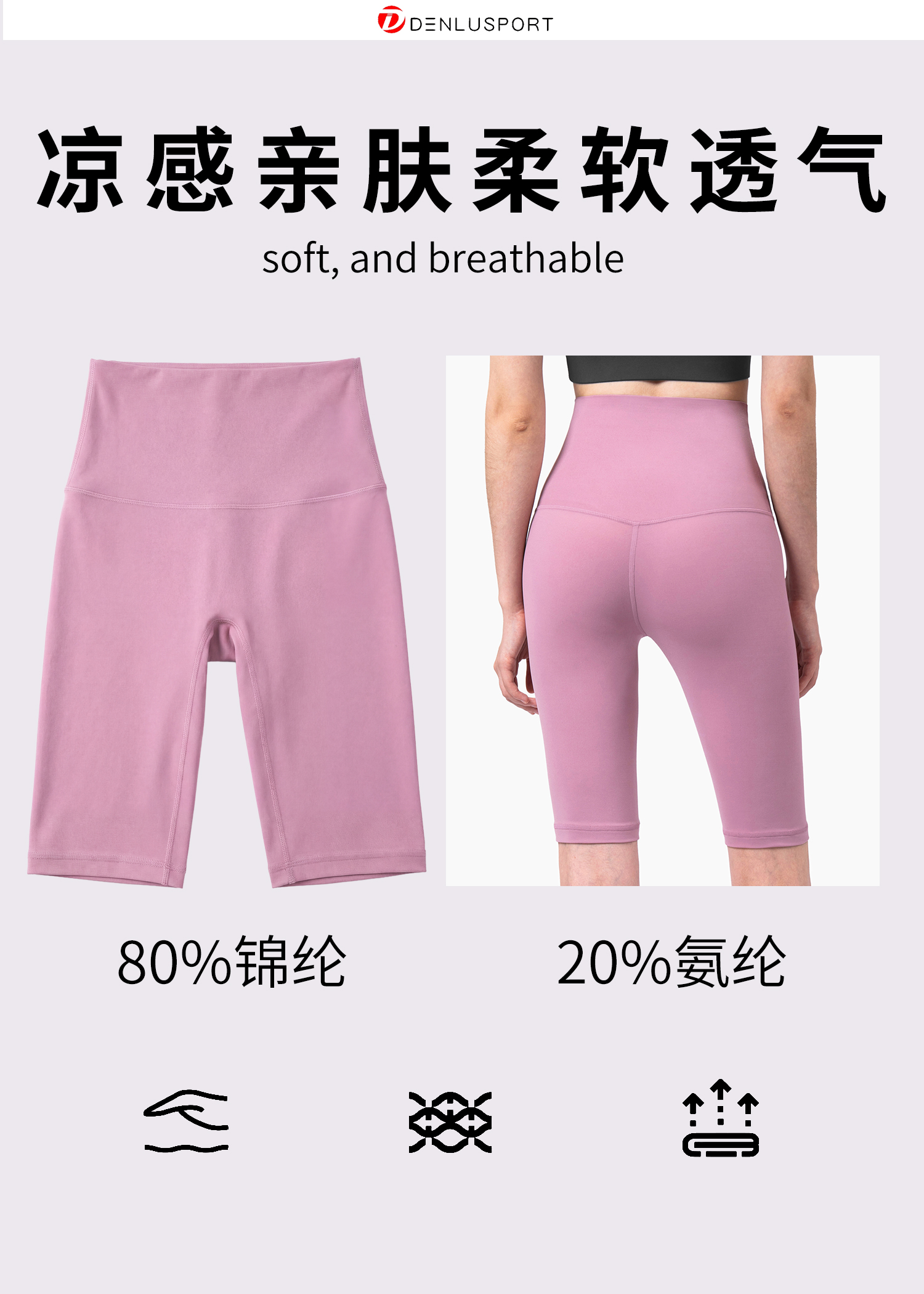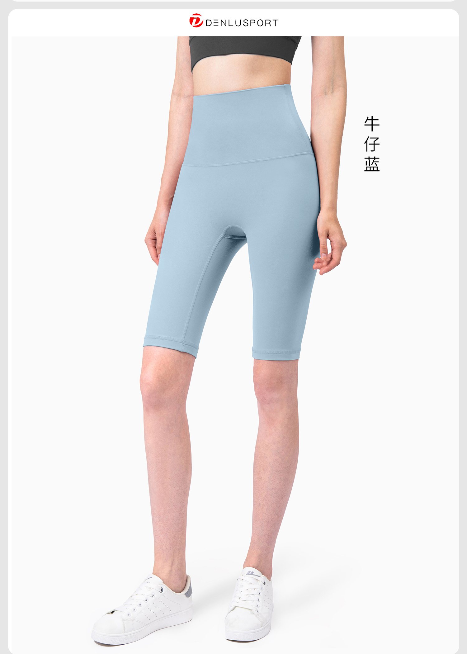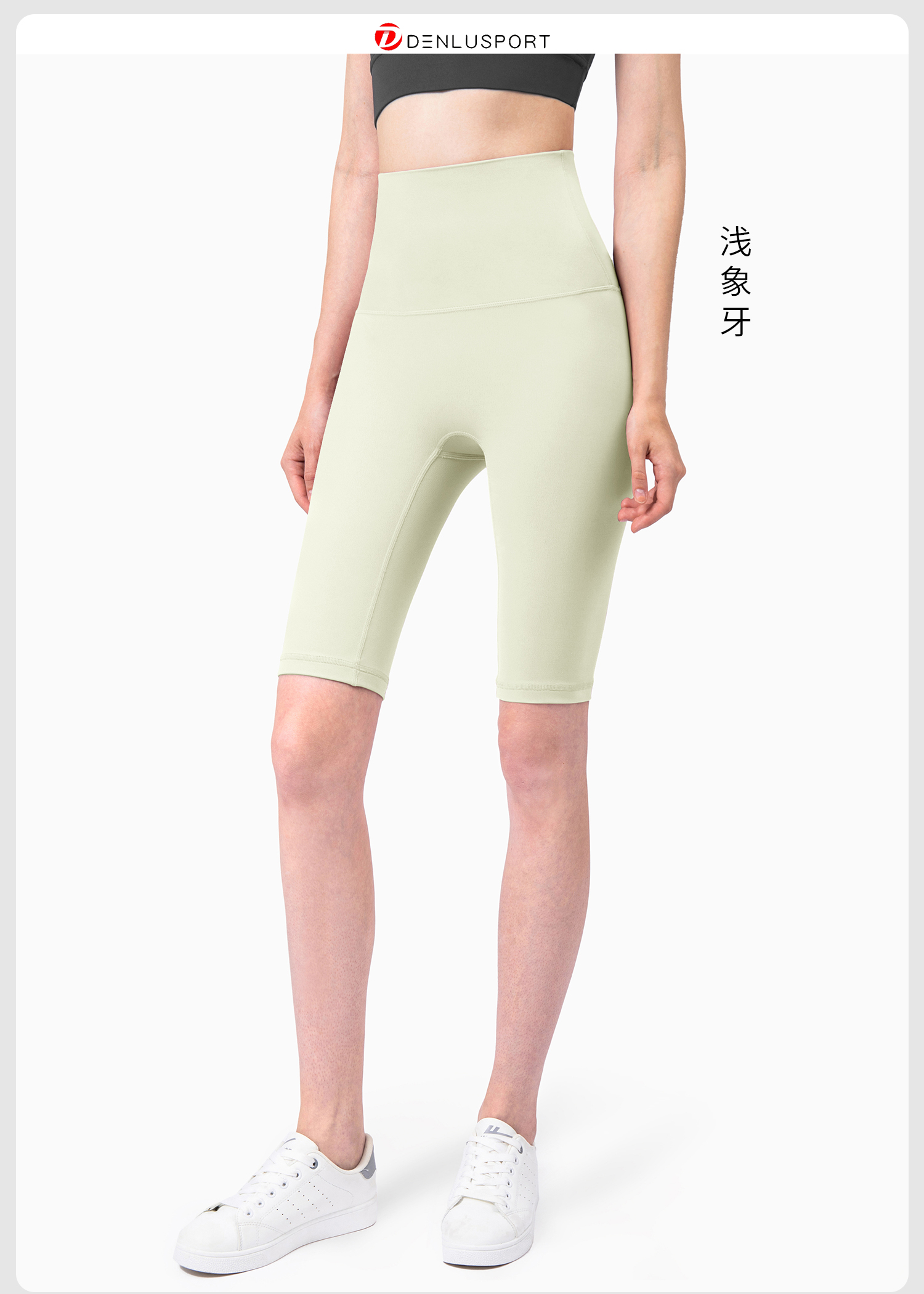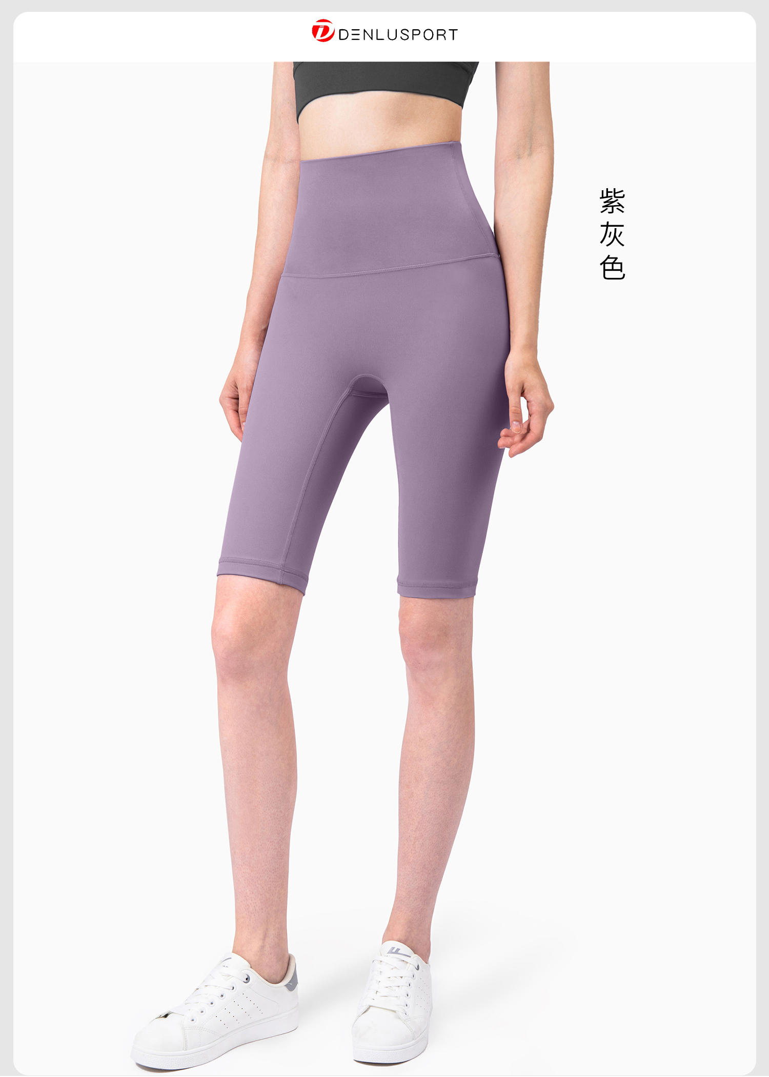 新款高腰提臀外穿瑜伽健身五分短裤双面锦纶运动紧身裸感骑行裤DK95102#