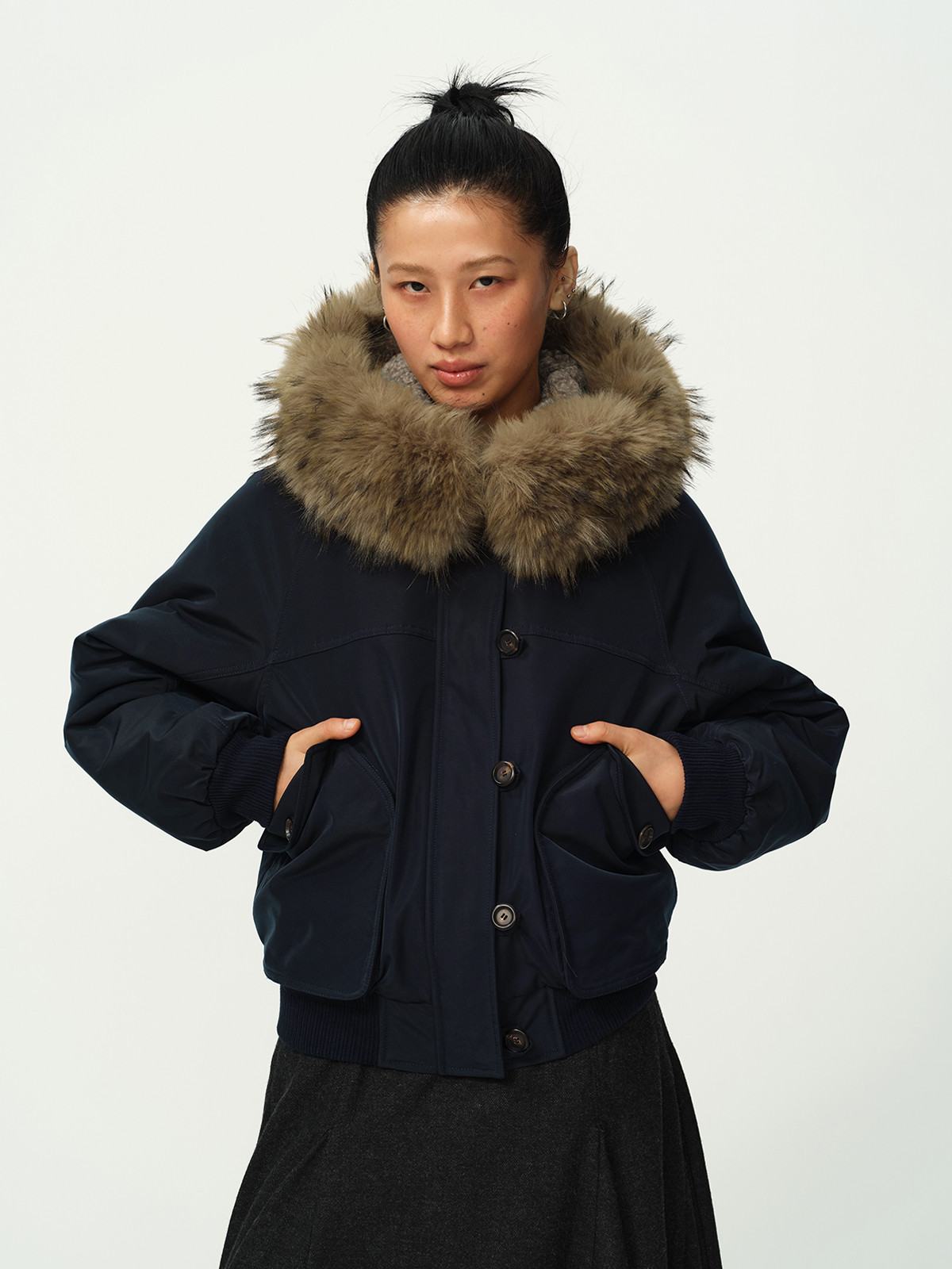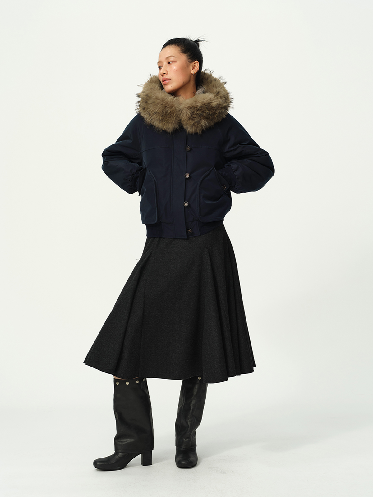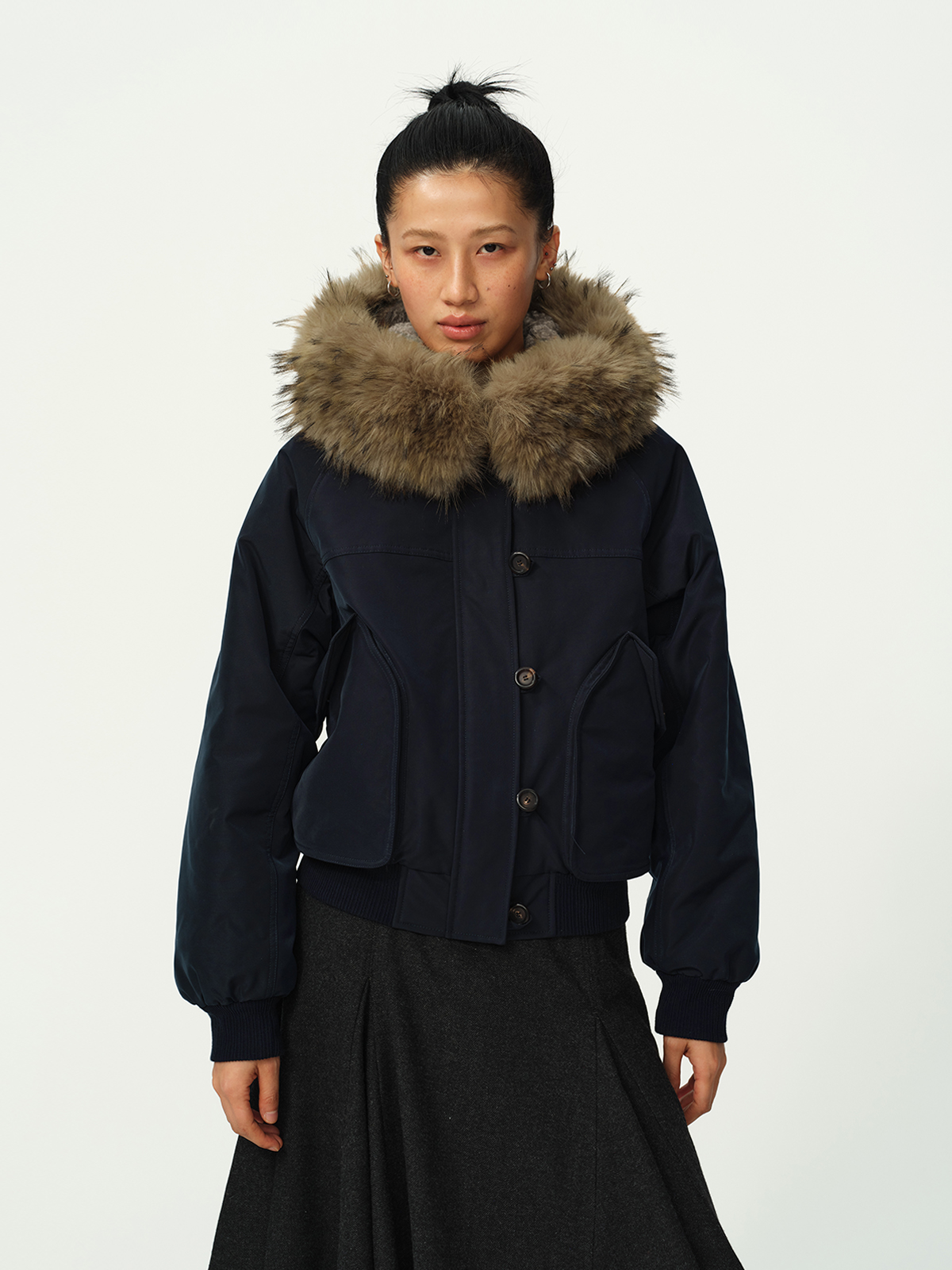 Evistub girls/E-5DWT1440/美式复古貉子毛领派克服