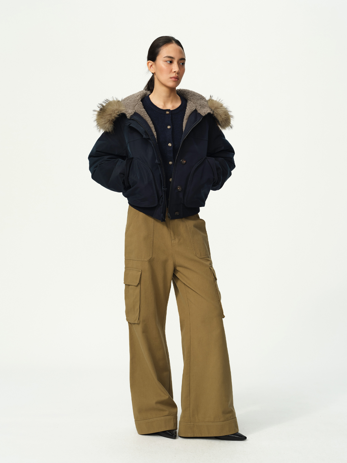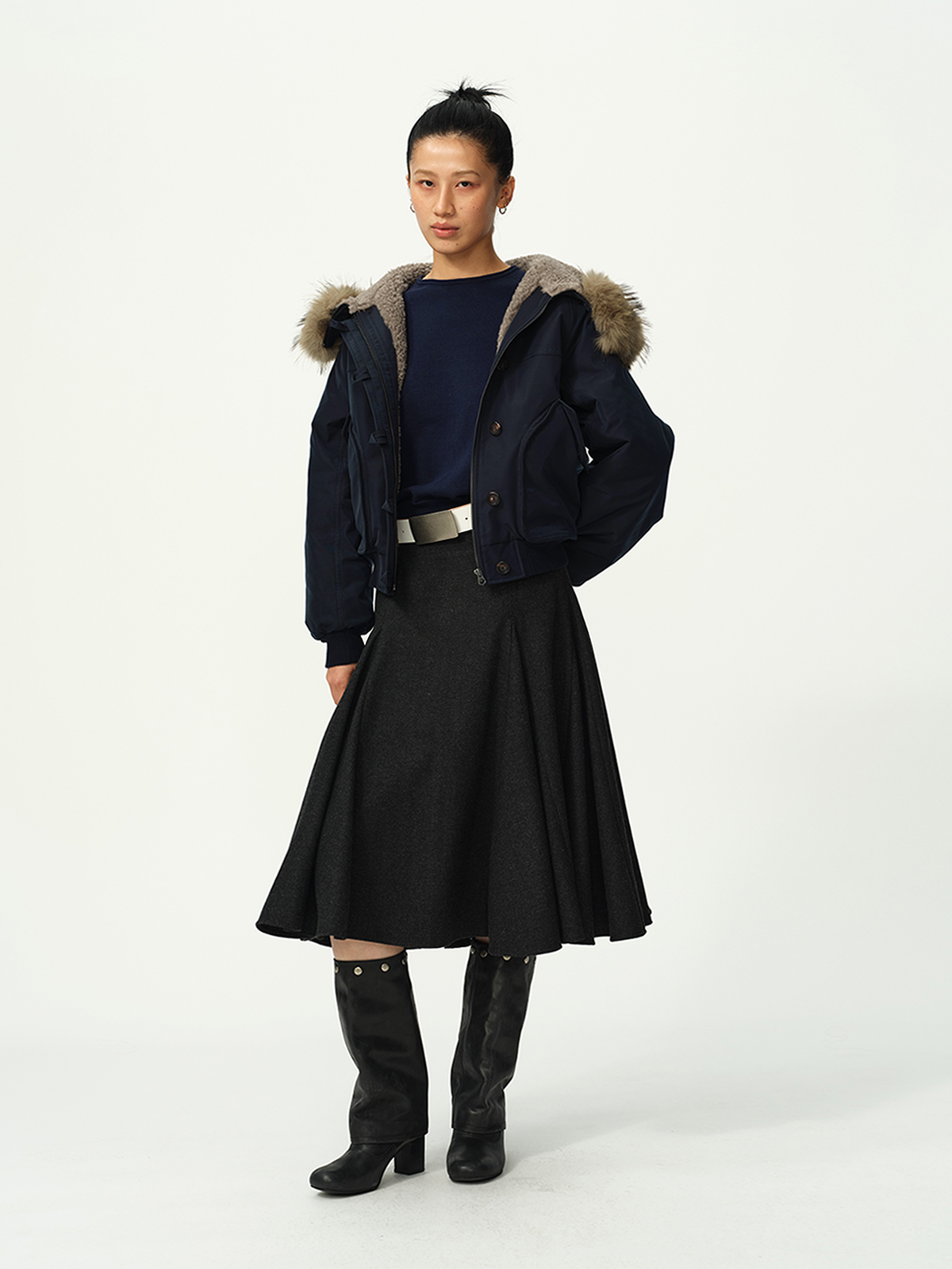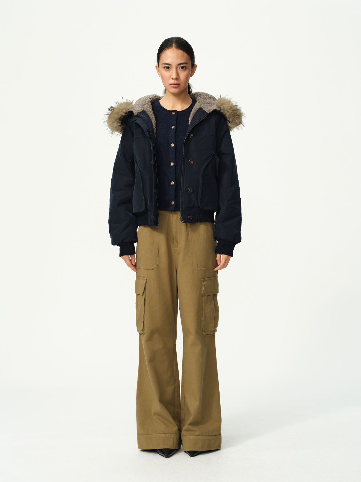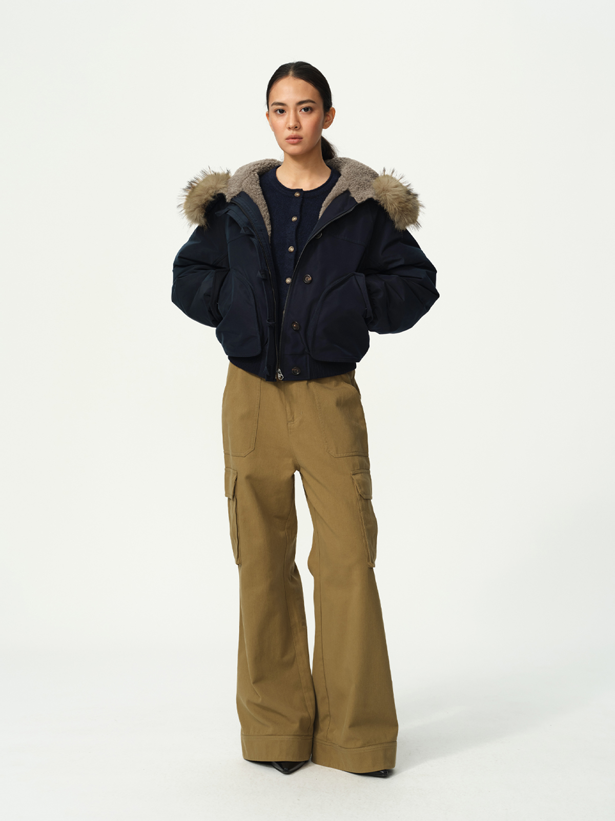 Evistub girls/E-5DWT1440/美式复古貉子毛领派克服