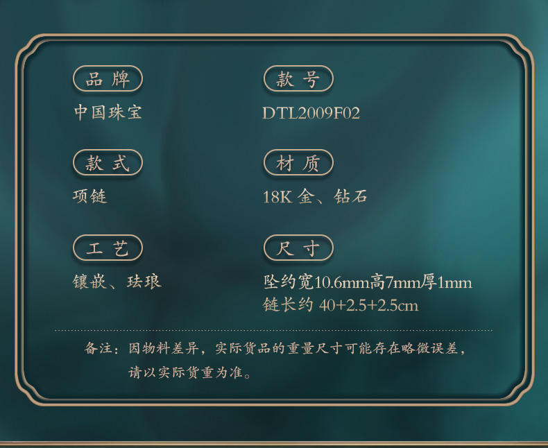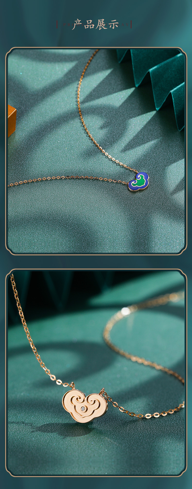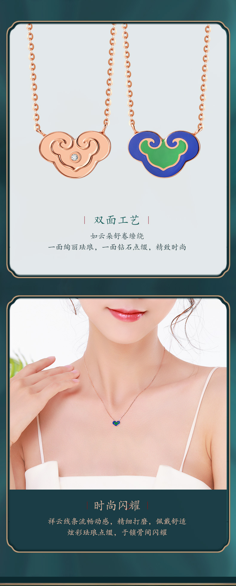 「敦煌」18K金钻石项链 祥云珐琅玫瑰金锁骨链