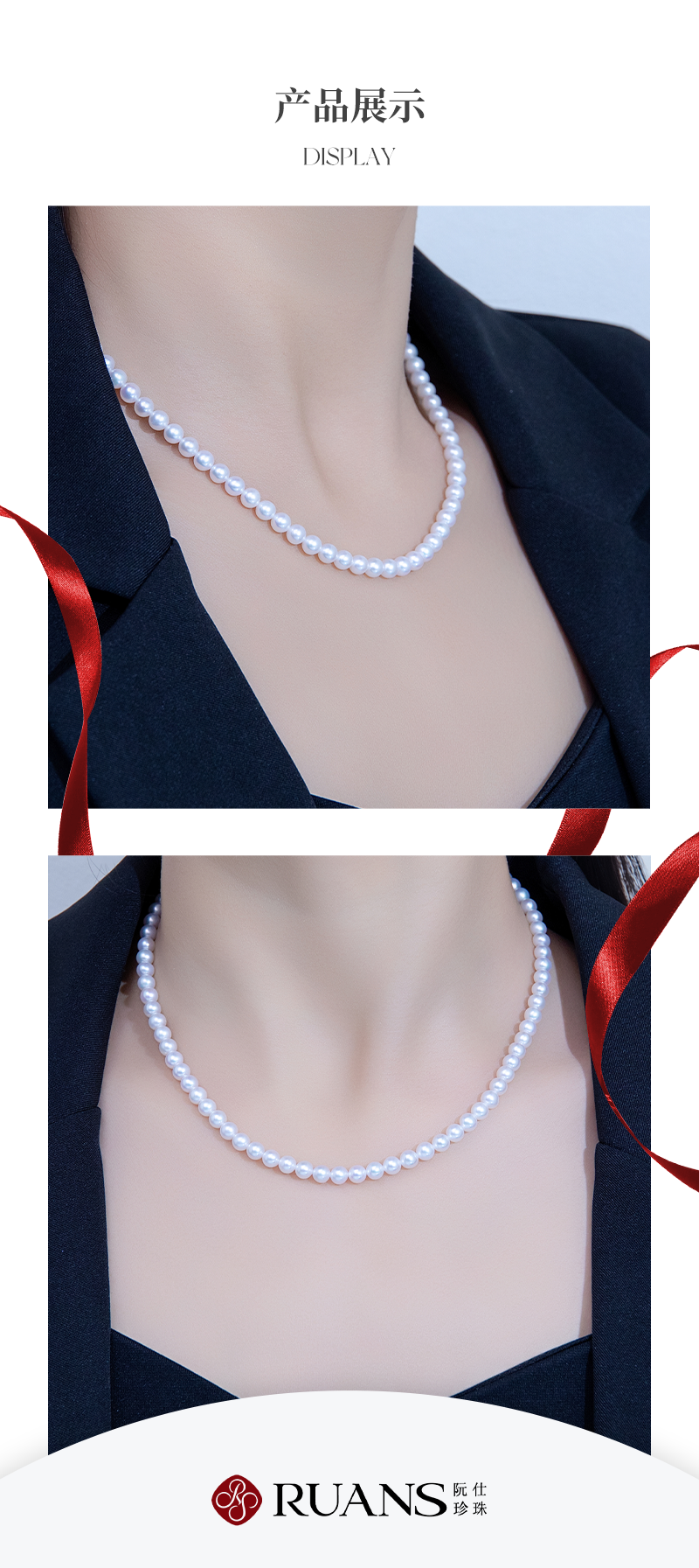 阮仕惊鸿系列 S925银淡水珍珠项链 5-5.5mm 正圆 极微瑕 极强光(吉尔德超级欧若拉)