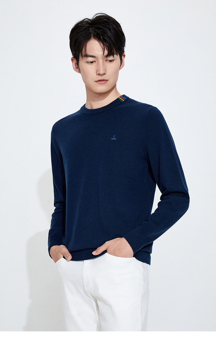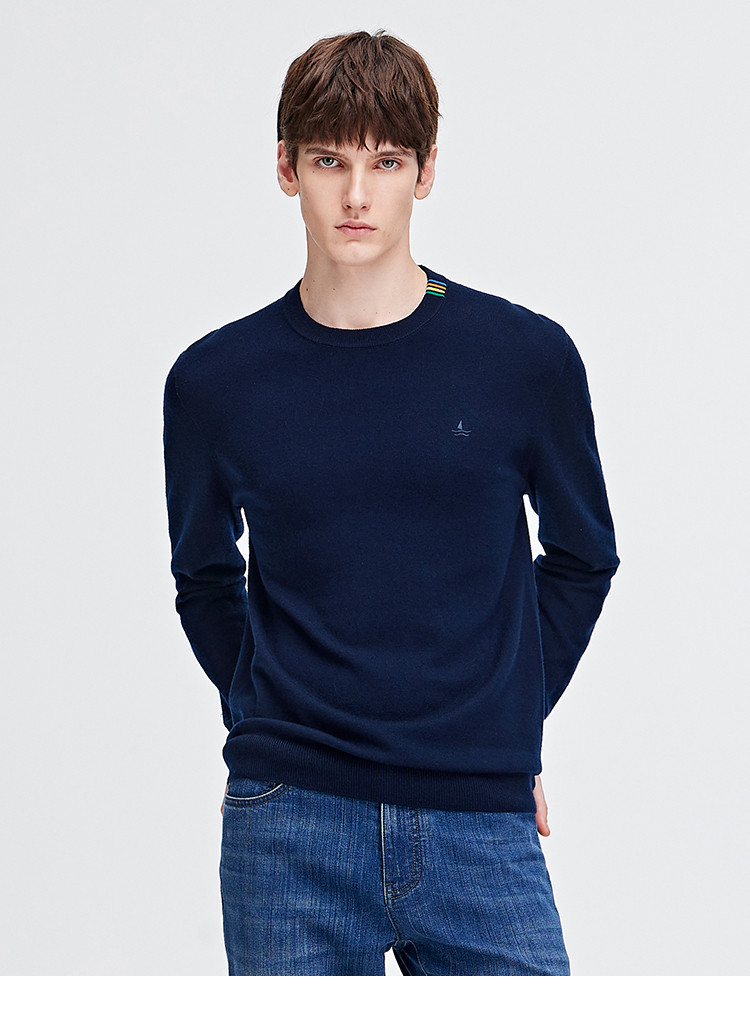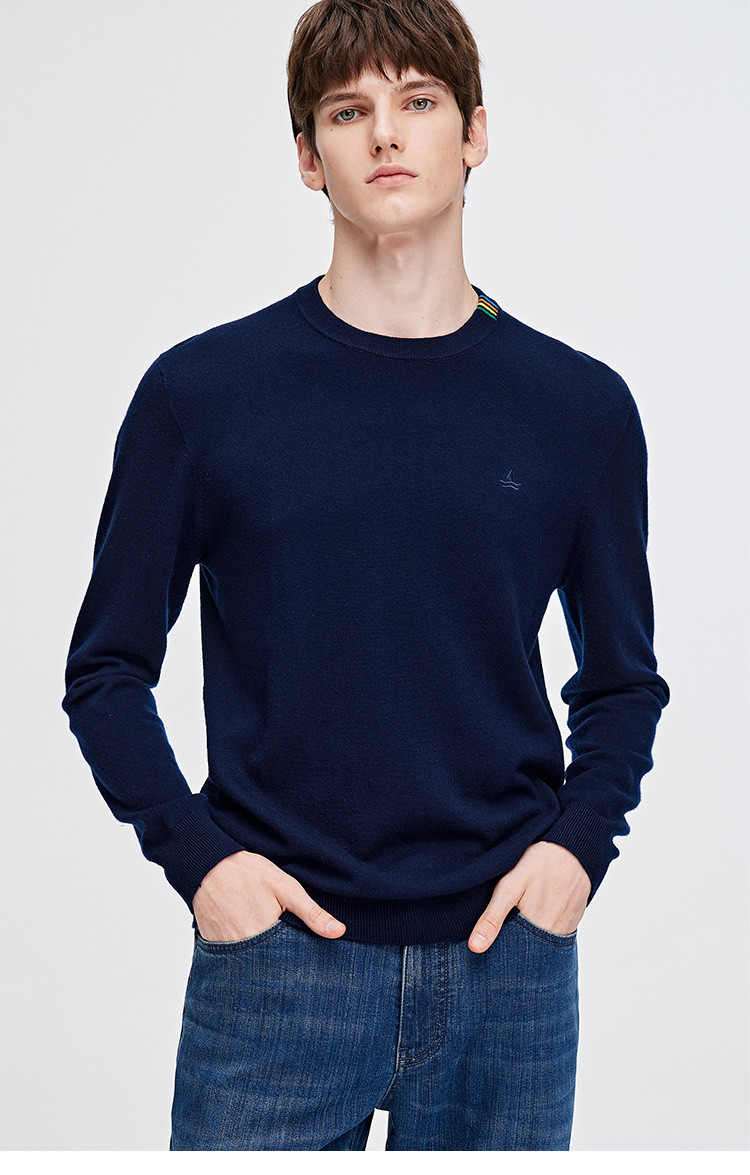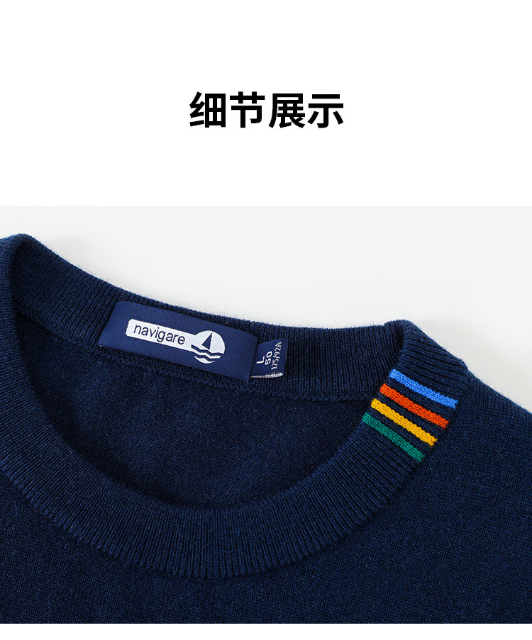 纳维凯尔Navigare意大利小帆船抑菌保暖纯色内搭羊毛衫男士圆领毛衣 1144004221