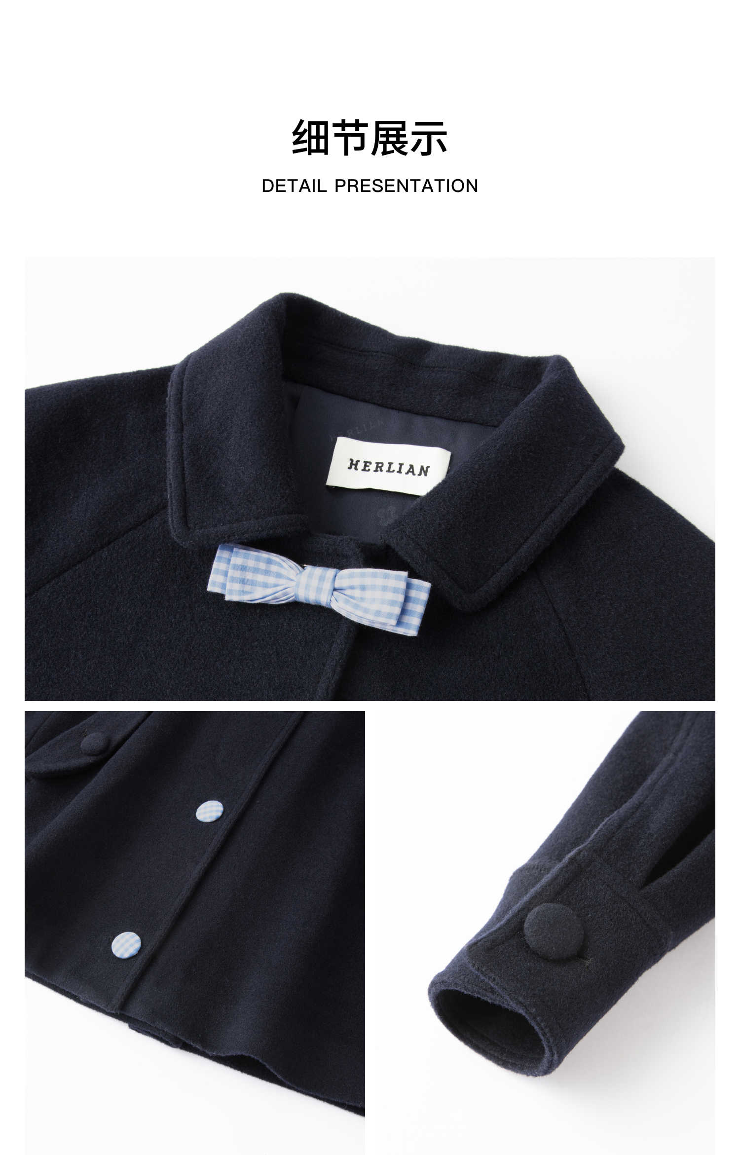 HERLIAN 2025年冬季新品蝴蝶结装饰娃娃领毛呢外套女