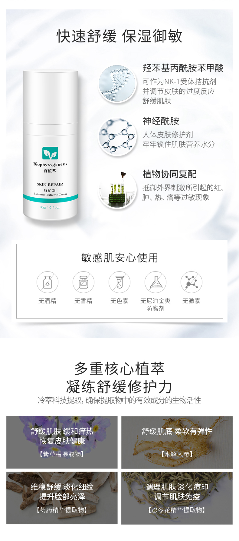 【百植萃】百植萃快速舒敏保湿特护霜舒缓敏感肌专用护肤品面霜修护皮肤屏 特护霜30g