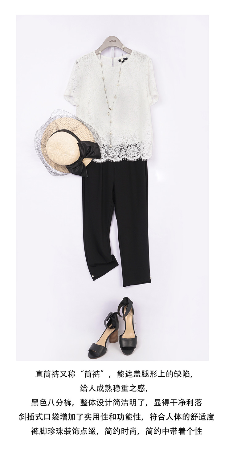 罗马布裤脚钉珠八分裤29074