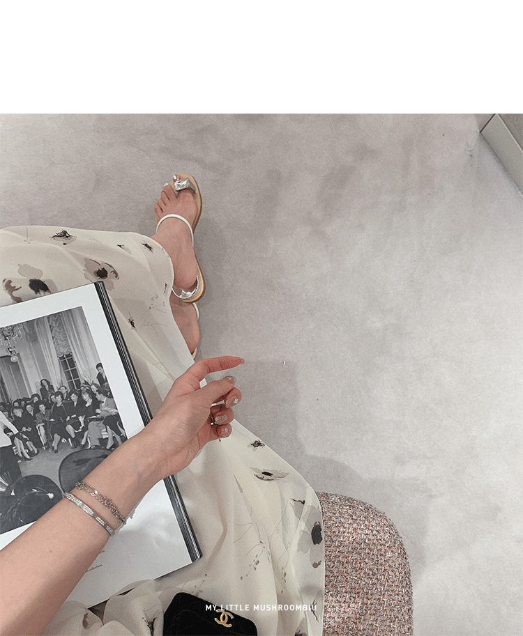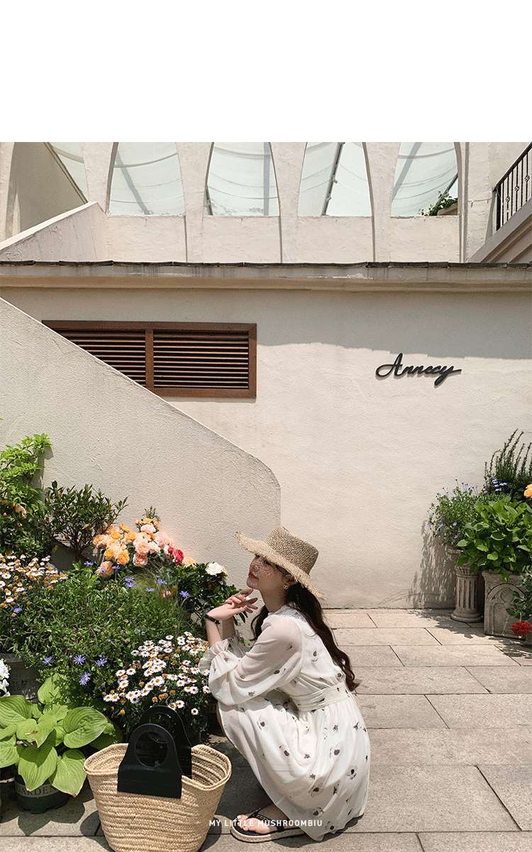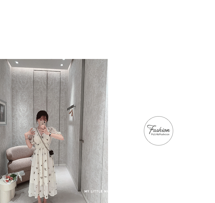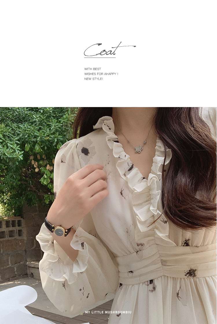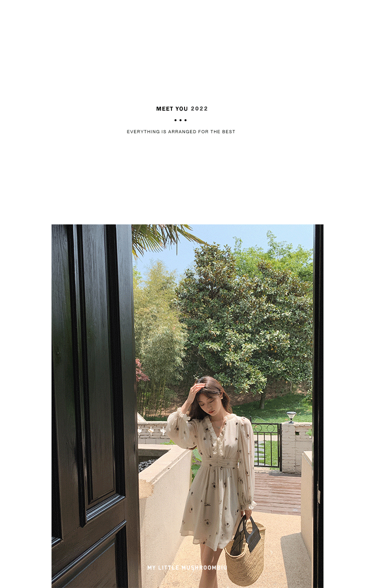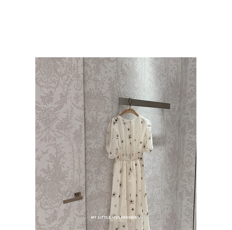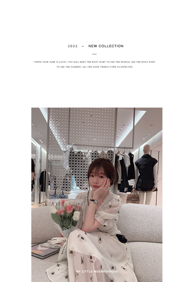金蘑菇菇【水墨丹青】 夏日清冷感V领设计感收腰显瘦连衣裙