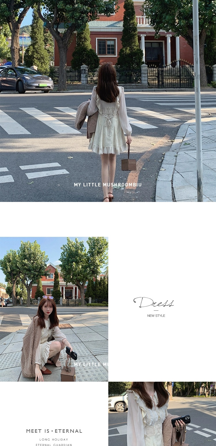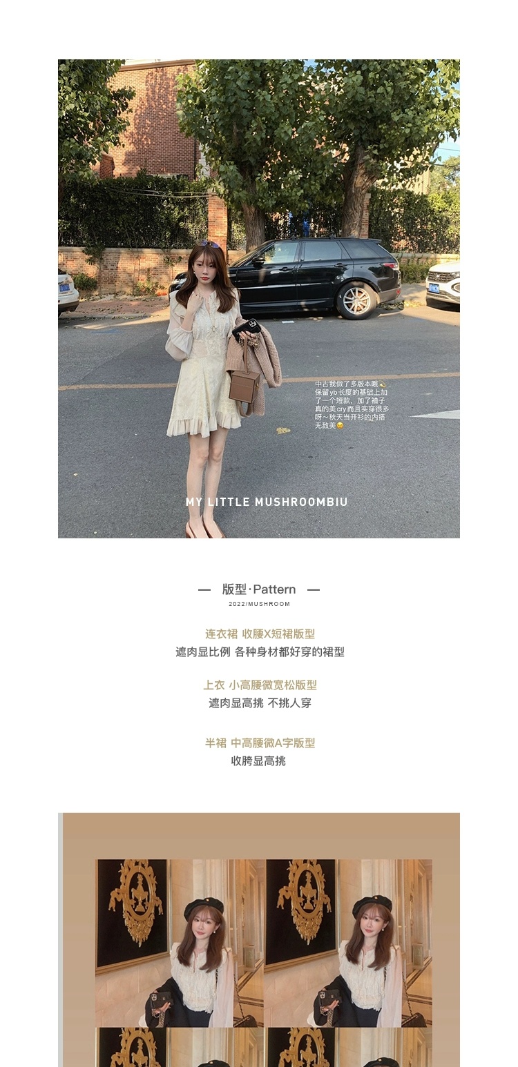 XS码 金蘑菇菇 伦敦罗曼史/ 中古私服真丝裙 轻奢风初秋收腰连衣裙