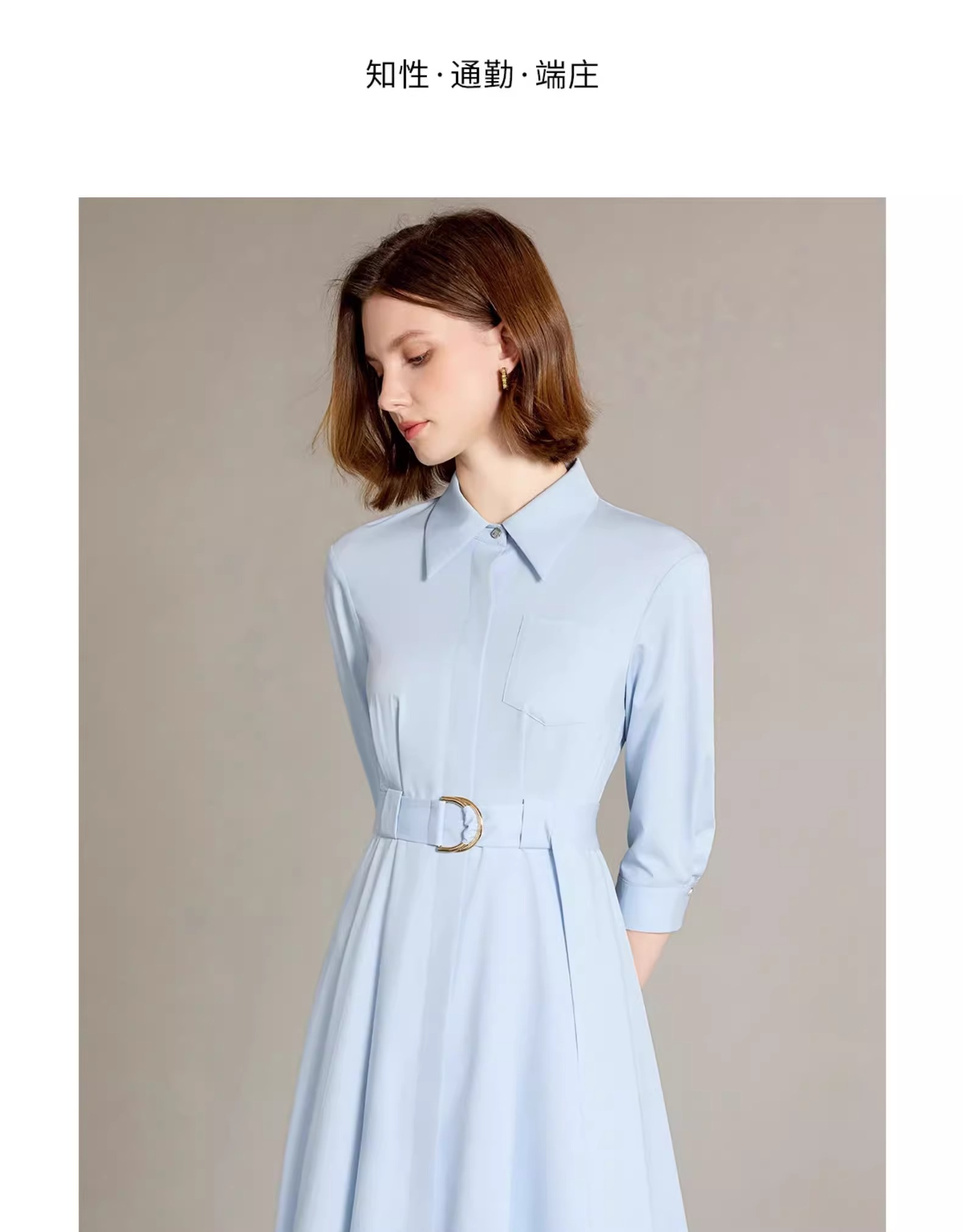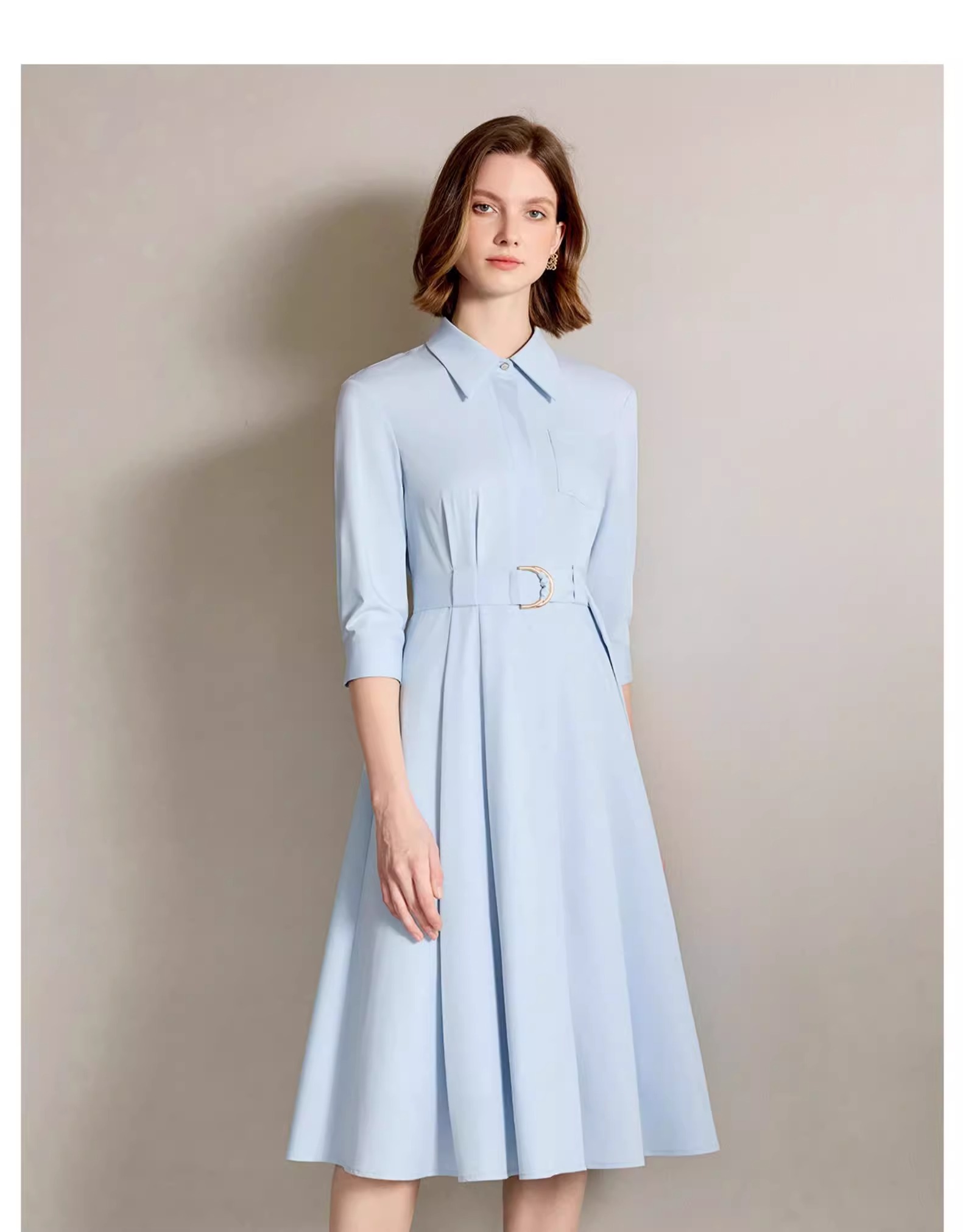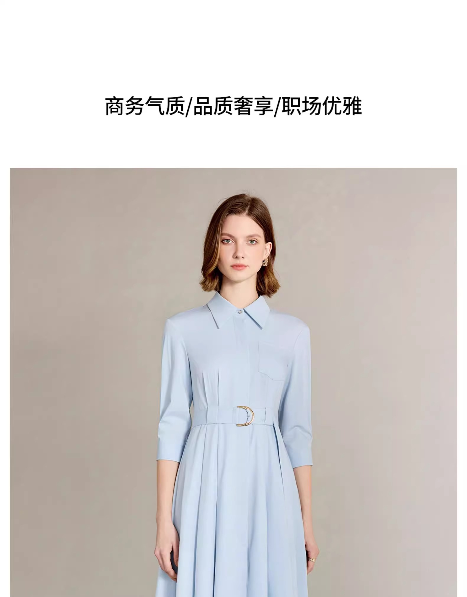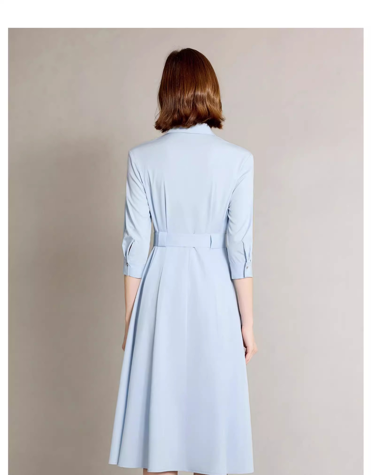 IWY/简单大方蓝色衬衫连衣裙正式场合裙子工作服正式场合裙子Q1310