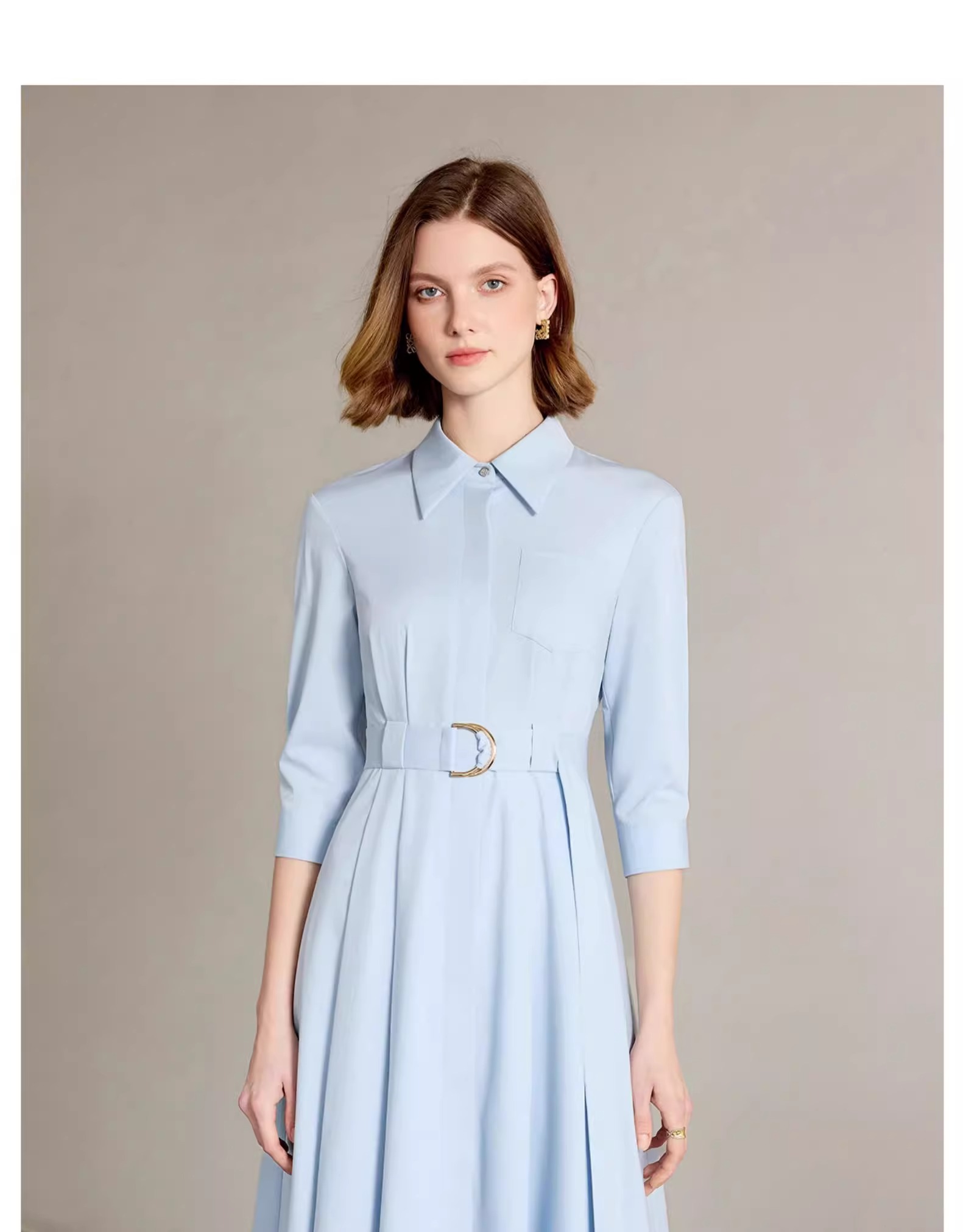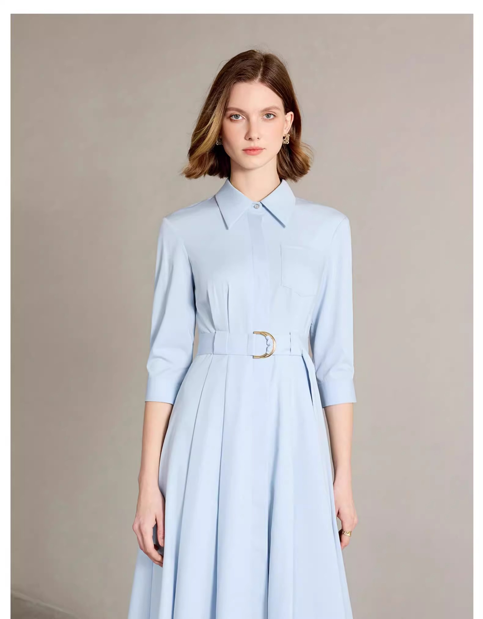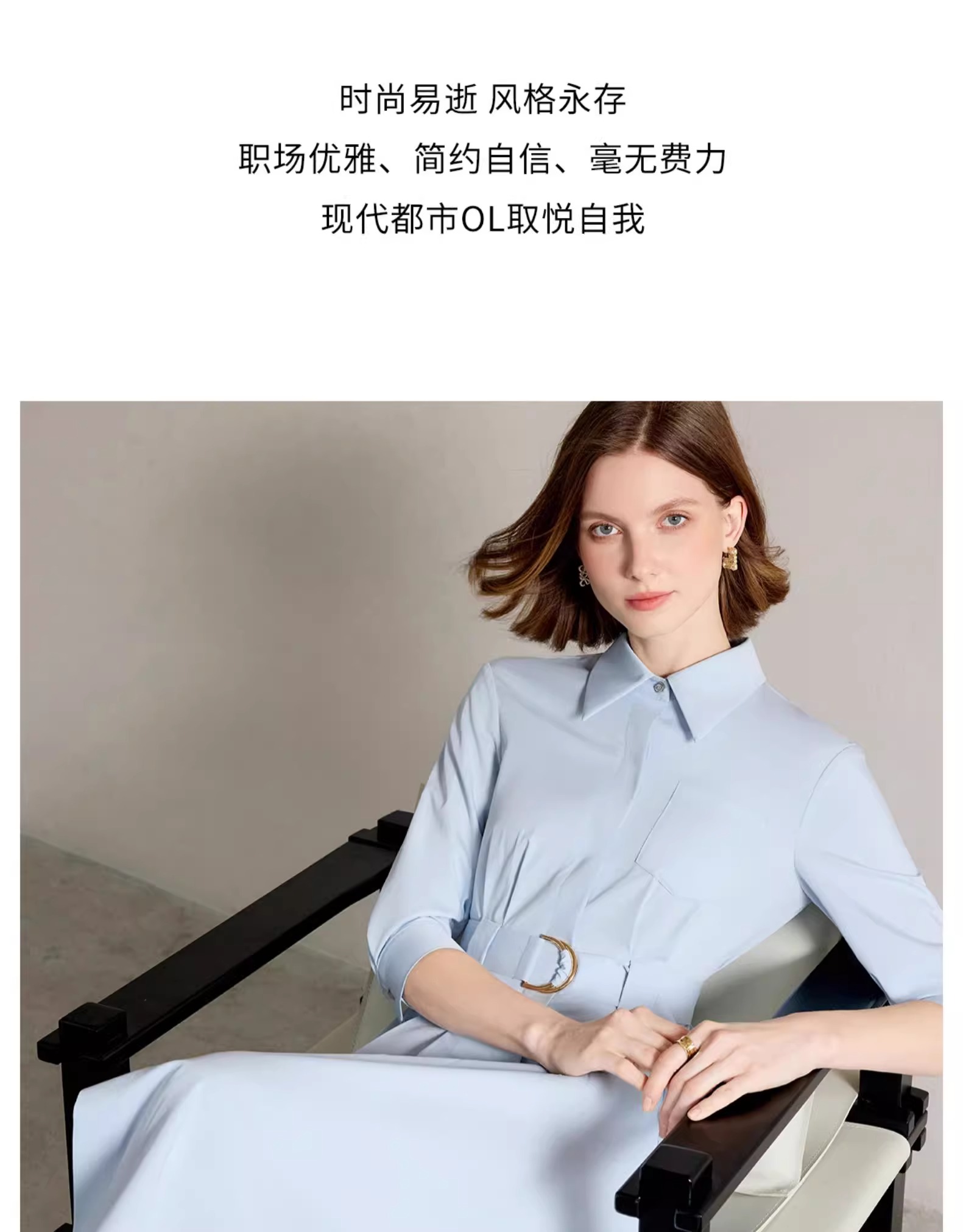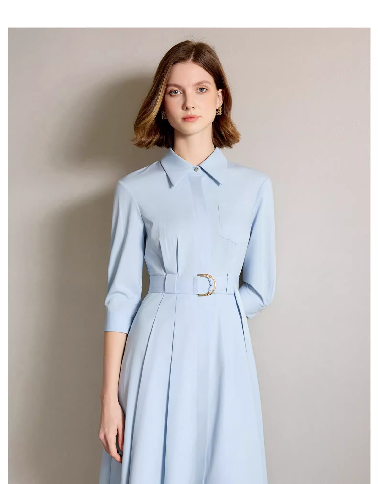 IWY/简单大方蓝色衬衫连衣裙正式场合裙子工作服正式场合裙子Q1310