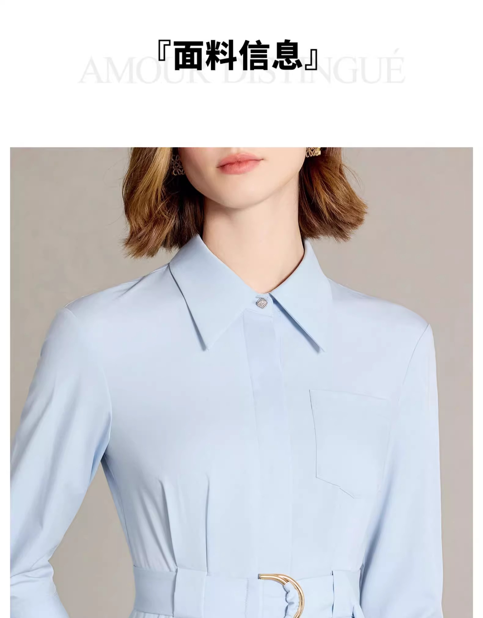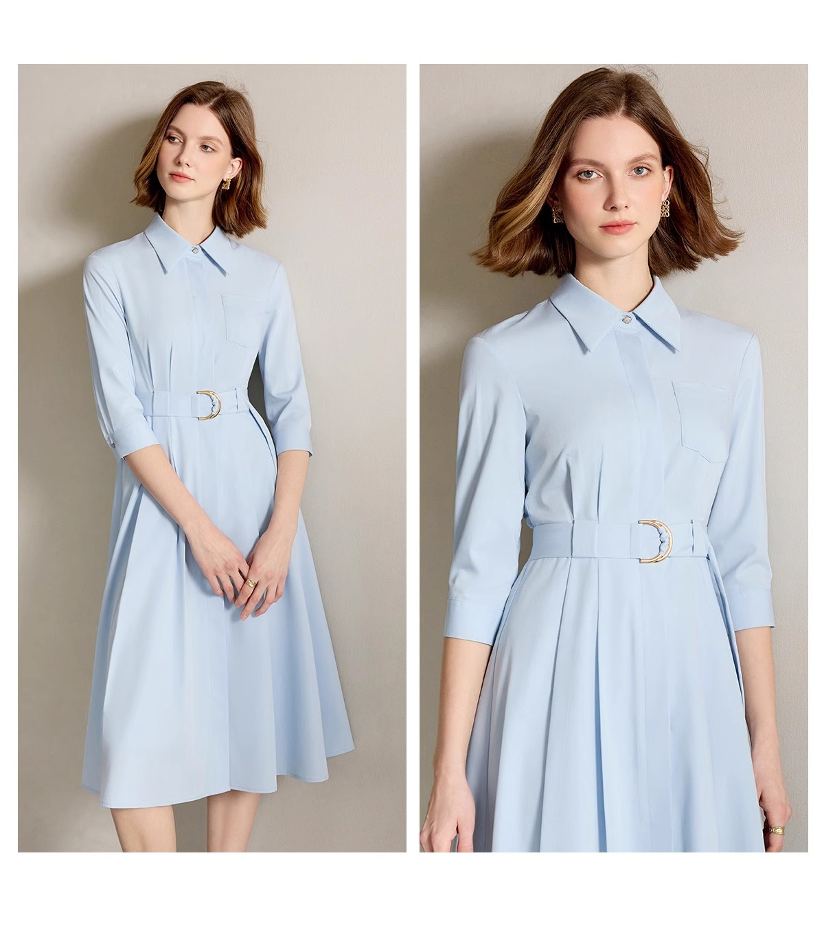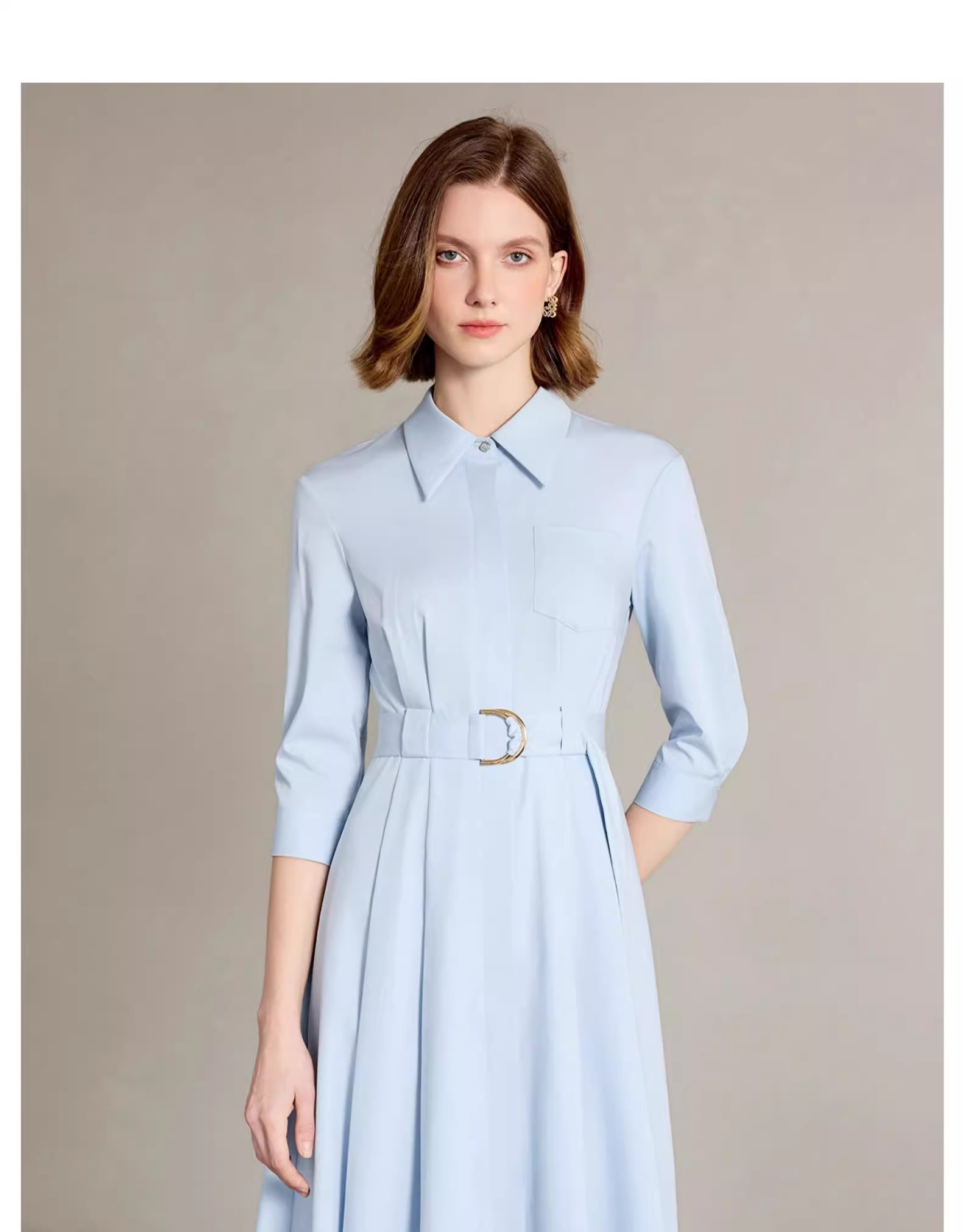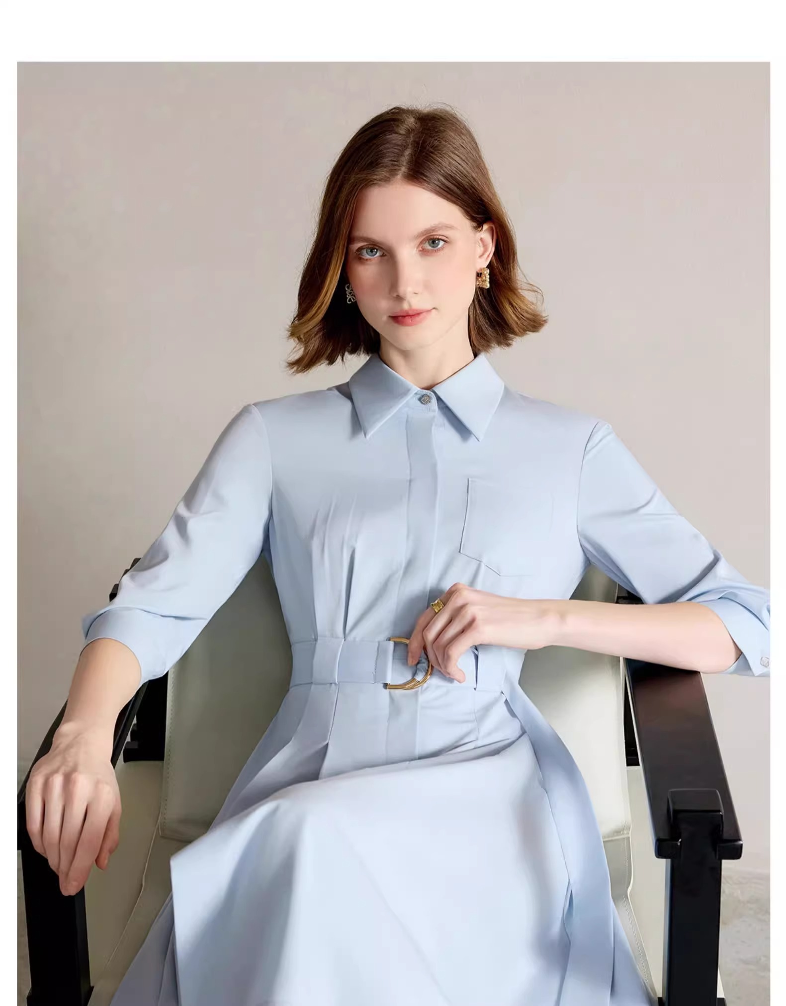 IWY/简单大方蓝色衬衫连衣裙正式场合裙子工作服正式场合裙子Q1310