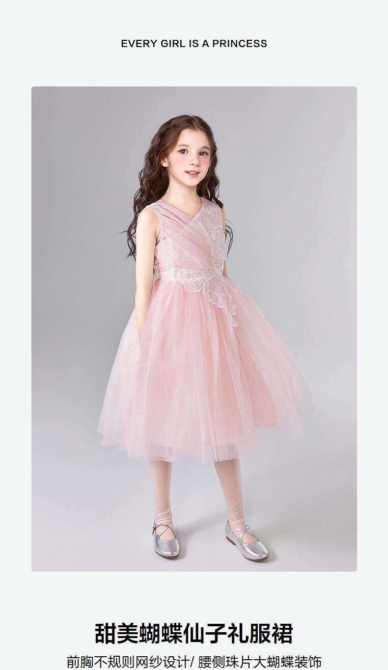 笛莎Deesha 童装女童连衣裙2025夏新款女童甜美蝴蝶仙子礼服裙