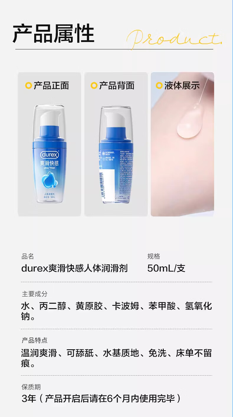 Durex/杜蕾斯 爽滑快感情趣啫喱人体润滑液 50ml装/瓶
