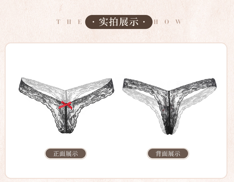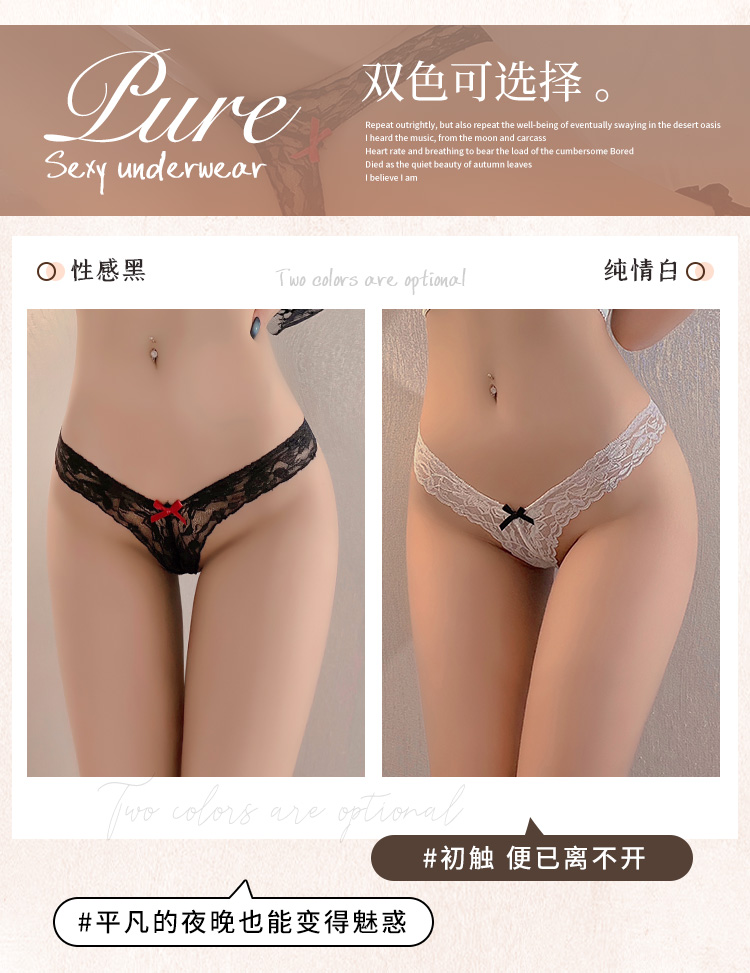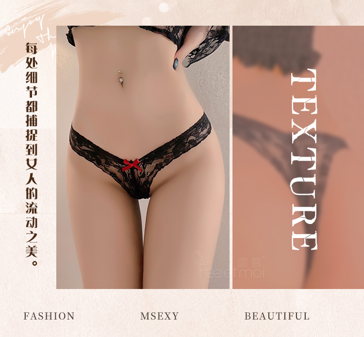 霏慕 蝴蝶点缀蕾丝女内裤6867 情趣内衣T裤丁字裤不开档镂空透视性感女士内裤