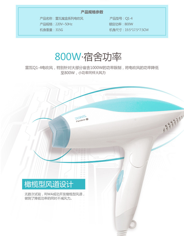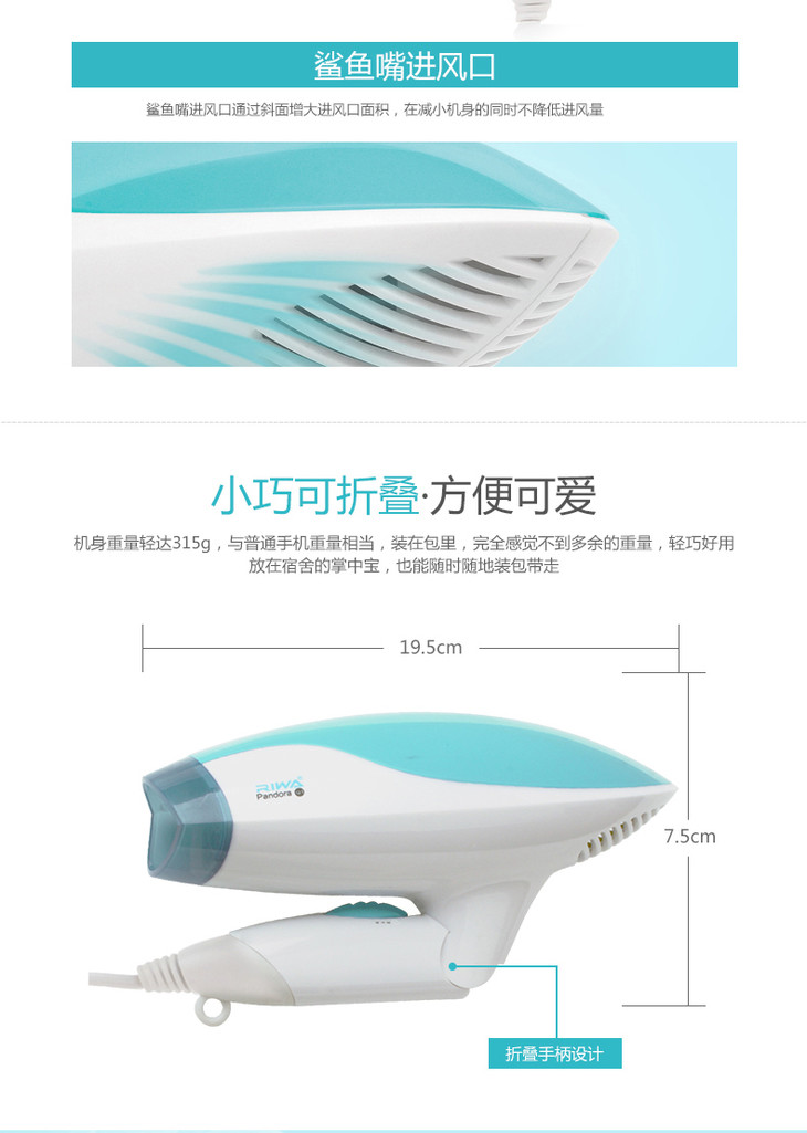 雷瓦(RIWA) 雷瓦 (RIWA) 迷你可折叠电吹风家用吹风机宿舍专用 Q1-4(800瓦)