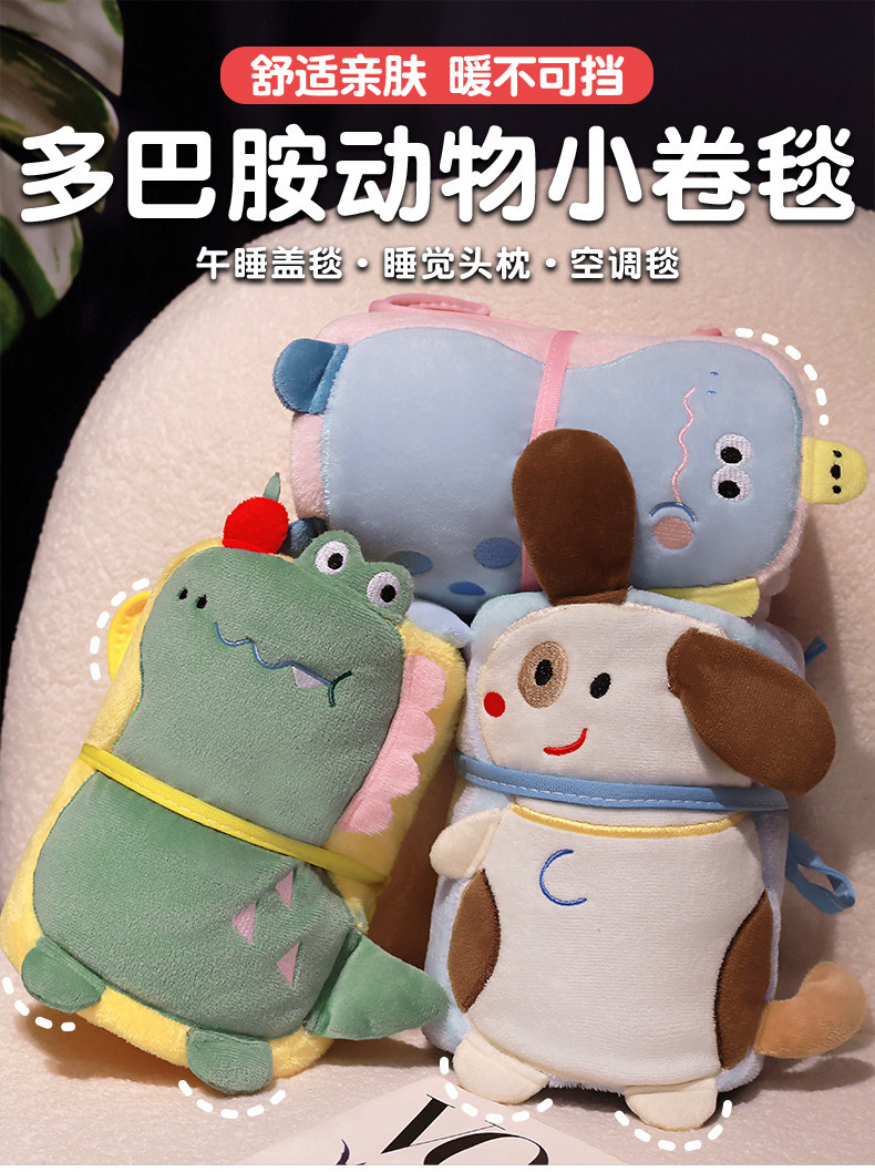 【多巴胺动物小卷毯】可爱小动物法兰绒卷毯办公室午休毯小毛毯办公室盖腿小毯子学生午睡空调毯。ry