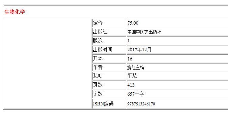 生物化学 “十三五”规划教材 施红主编 中国中医药出版社9787513246170