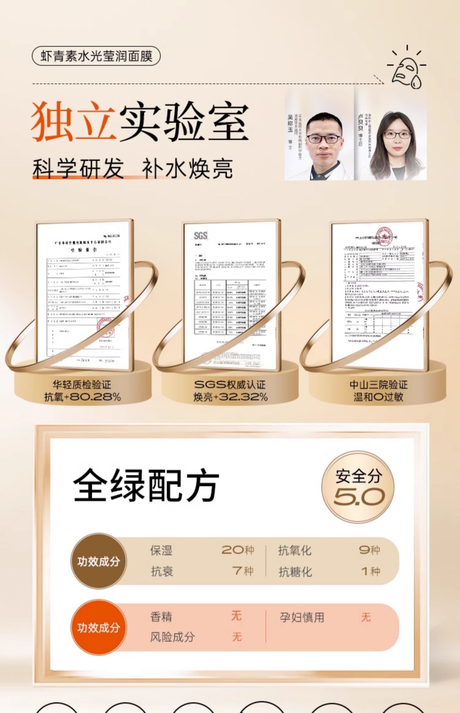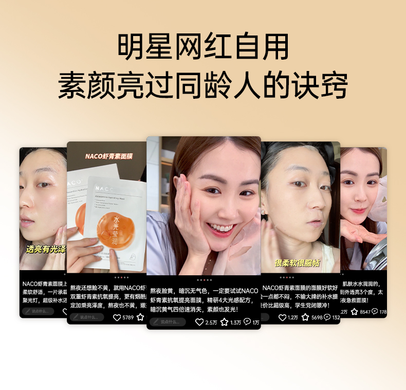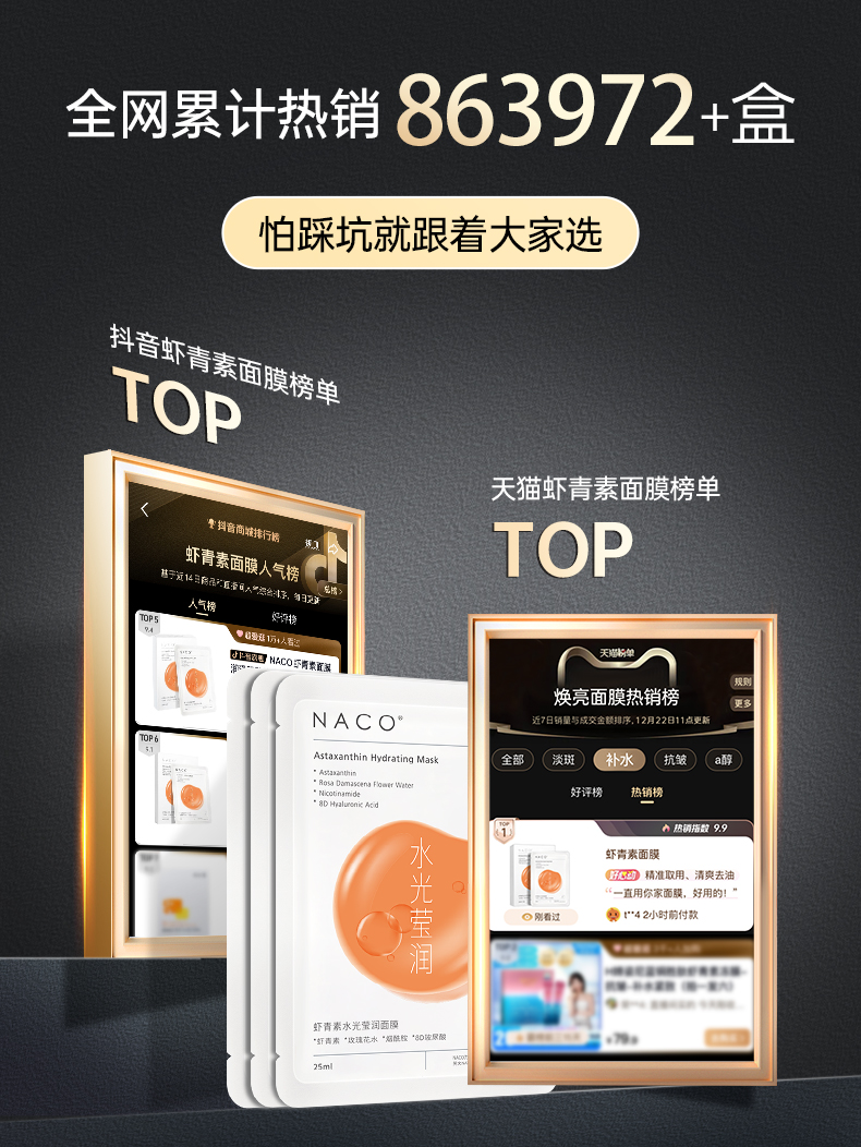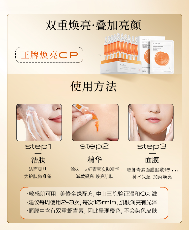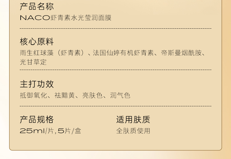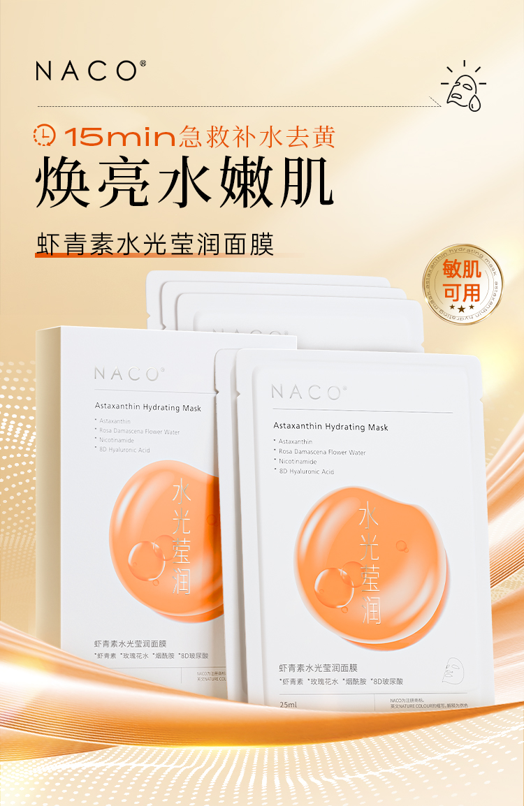 【269任选3️⃣件 】NACO虾青素水光莹润面膜25ML*5片*3(3盒 到手15片)