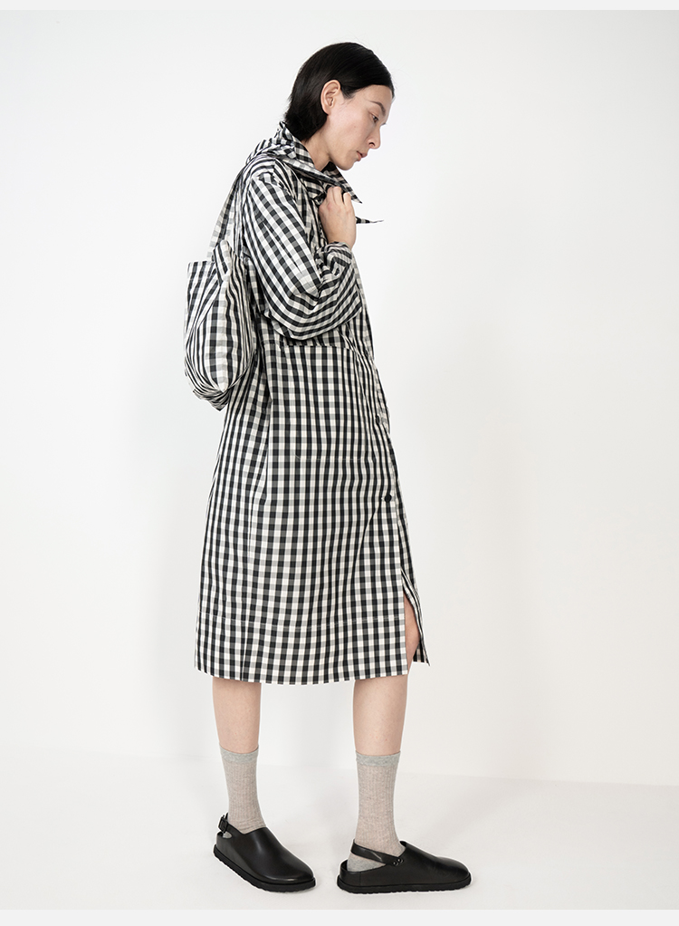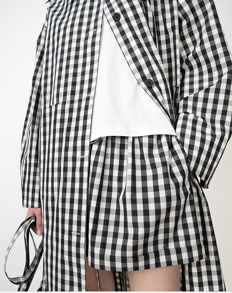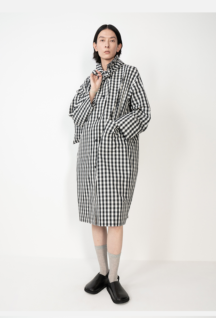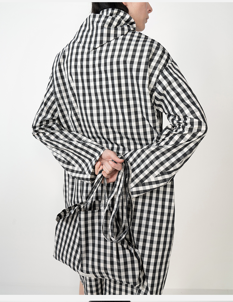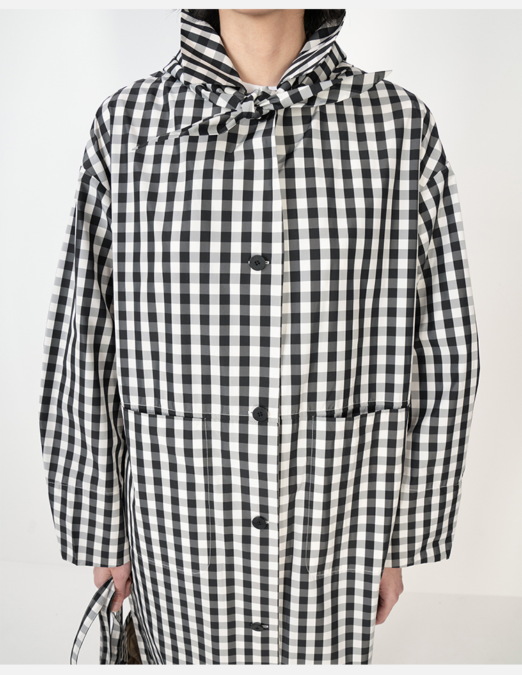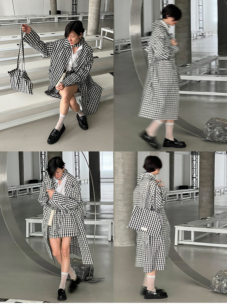HIDEMI黑白格纹极简设计感长款风衣套装
