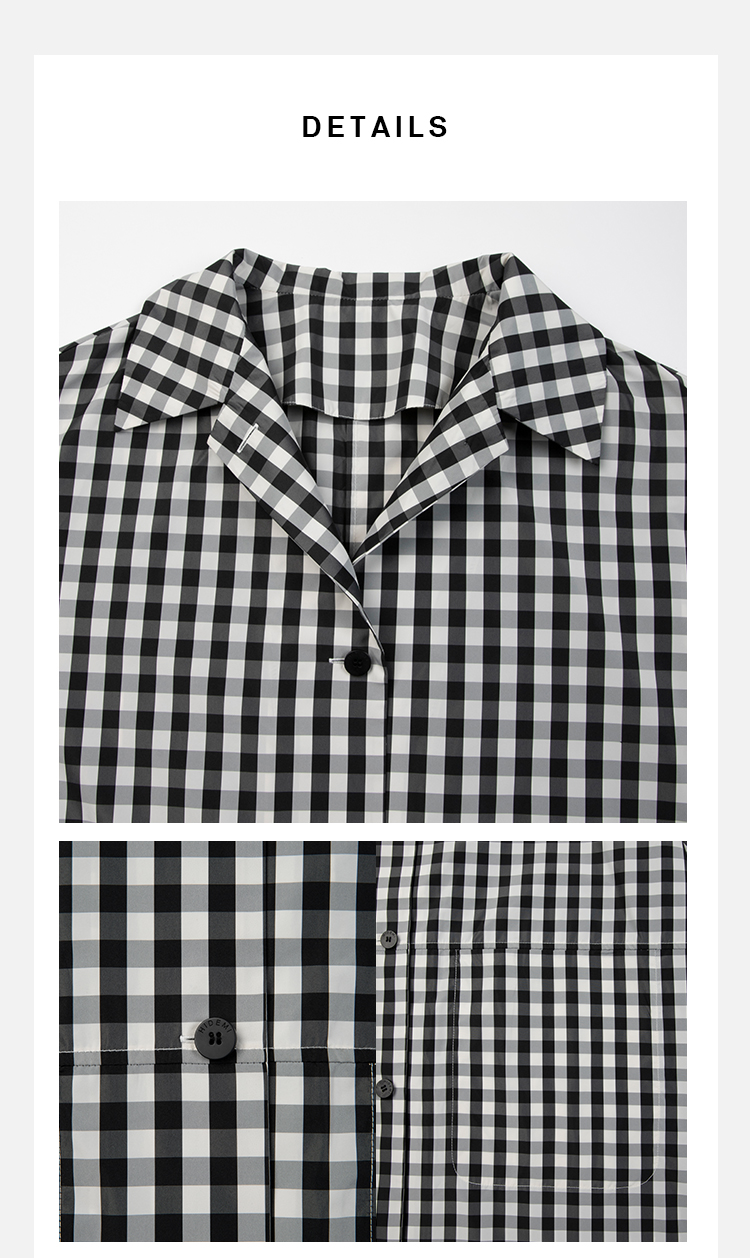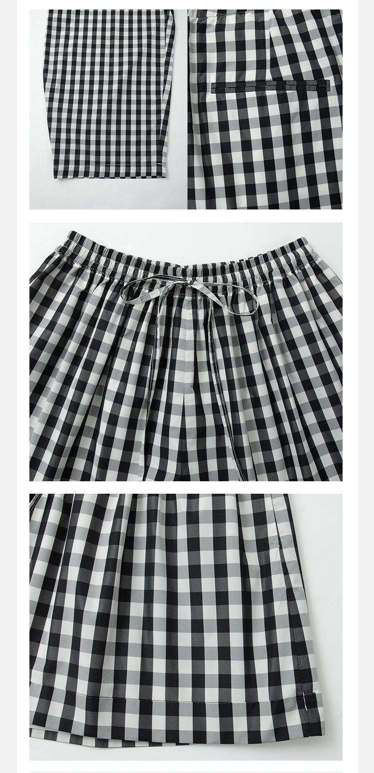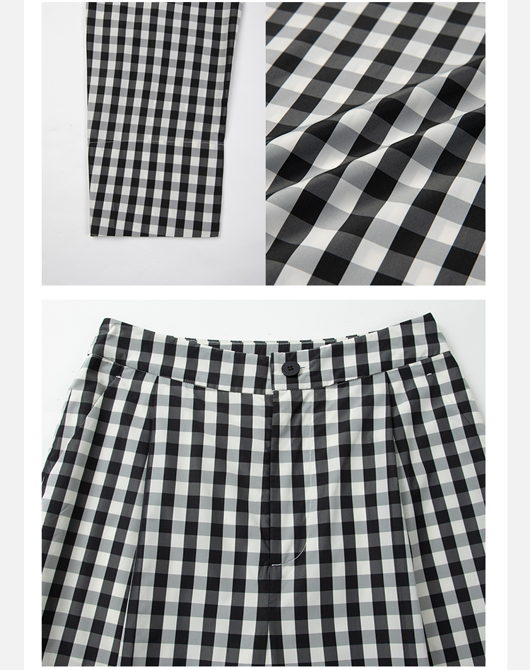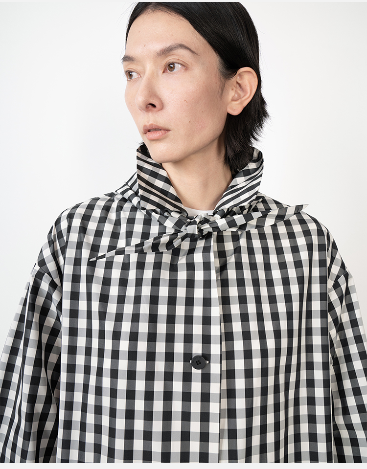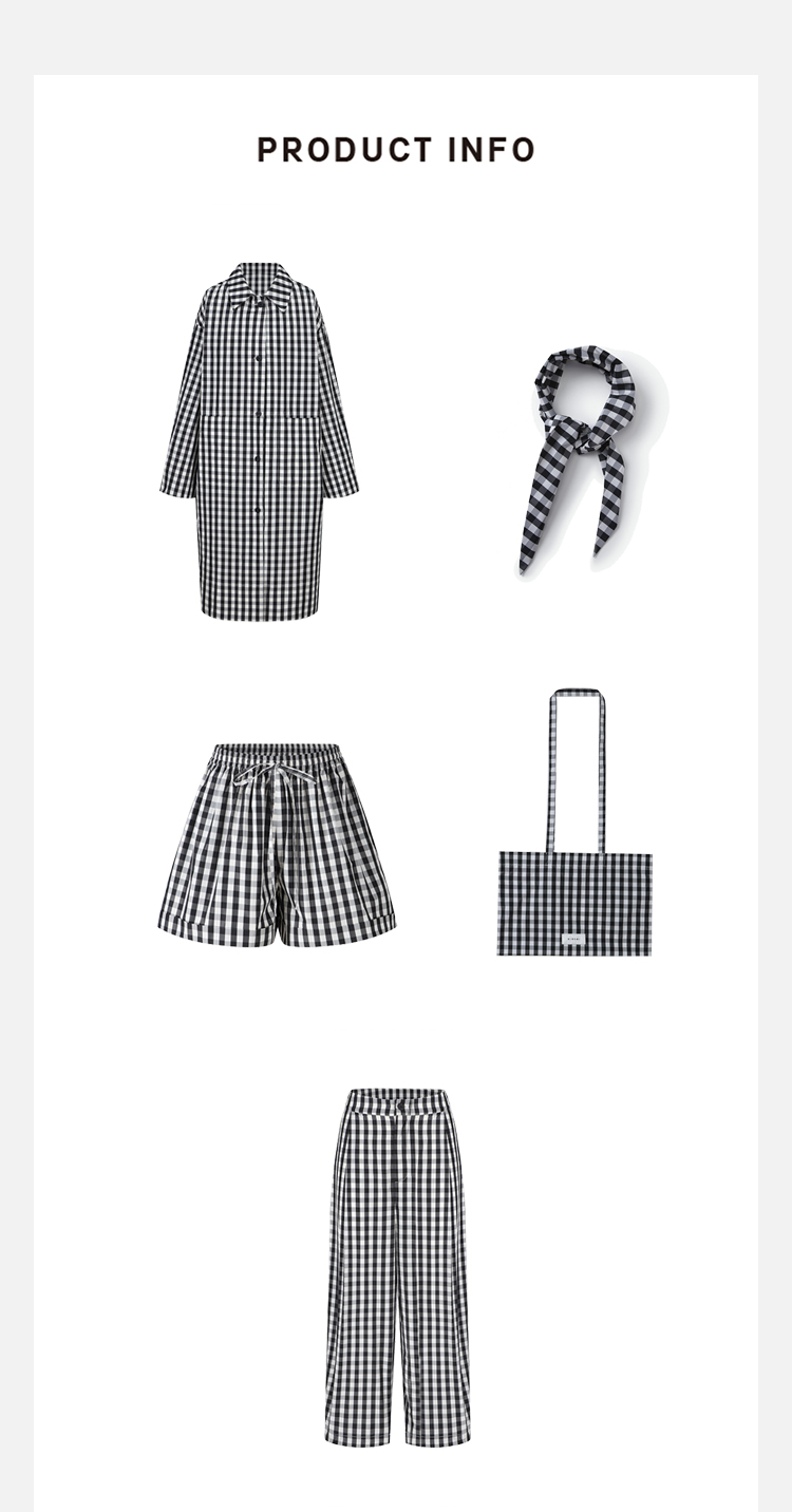 HIDEMI黑白格纹极简设计感长款风衣套装