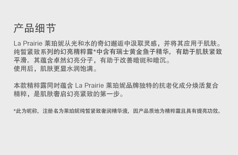 LA PRAIRIE莱珀妮白鲟鱼子纯皙紧致亮肤精粹露150ml