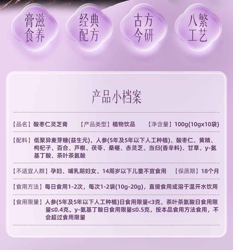 【官方正品】云南白药有这一方酸枣仁灵芝膏10g*10袋便携装酸枣仁黄精灵芝人参百合安心眠滋养速溶无渣