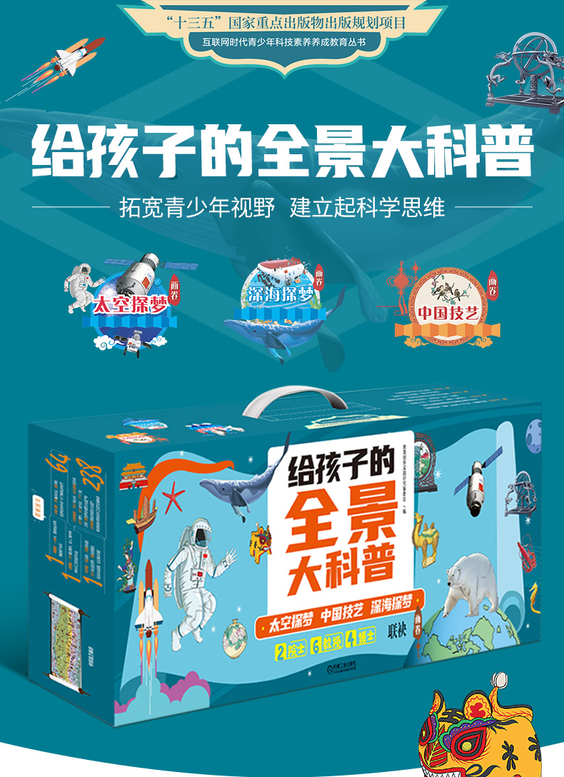 书名:互联网时代青少年科技素养养成教育丛书*1期(共3册,中国技艺画卷+深海探梦画卷+ 太空探梦画卷)