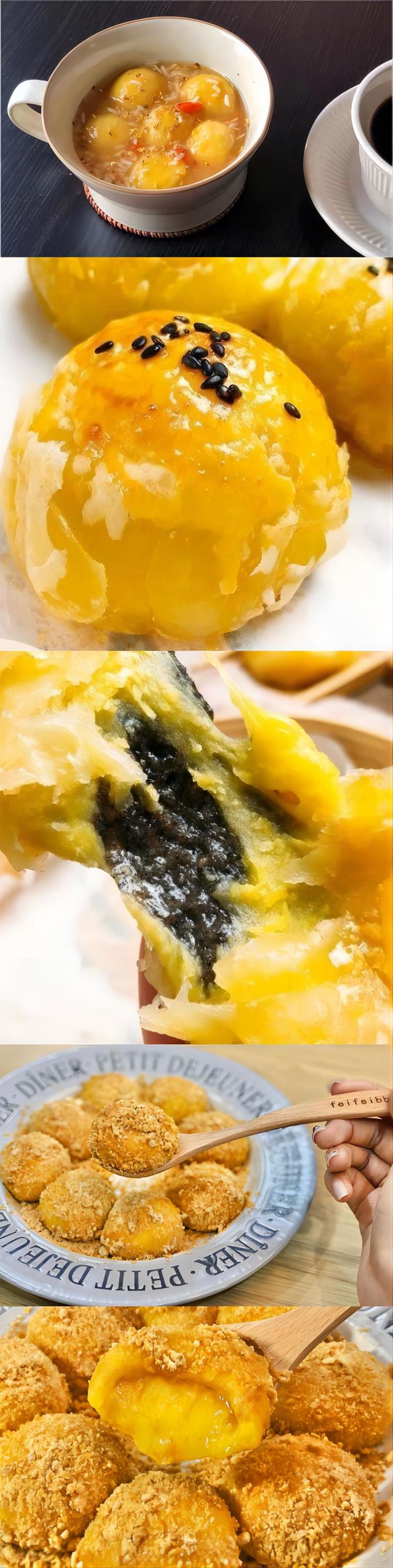 经典的浓香黑芝麻馅料每一种都蕴含着满满的幸福感。馅料给的超足,金灿灿的黄米皮散发诱人的热气,用牙齿咬开一个小流心芝麻就涌出来了😋