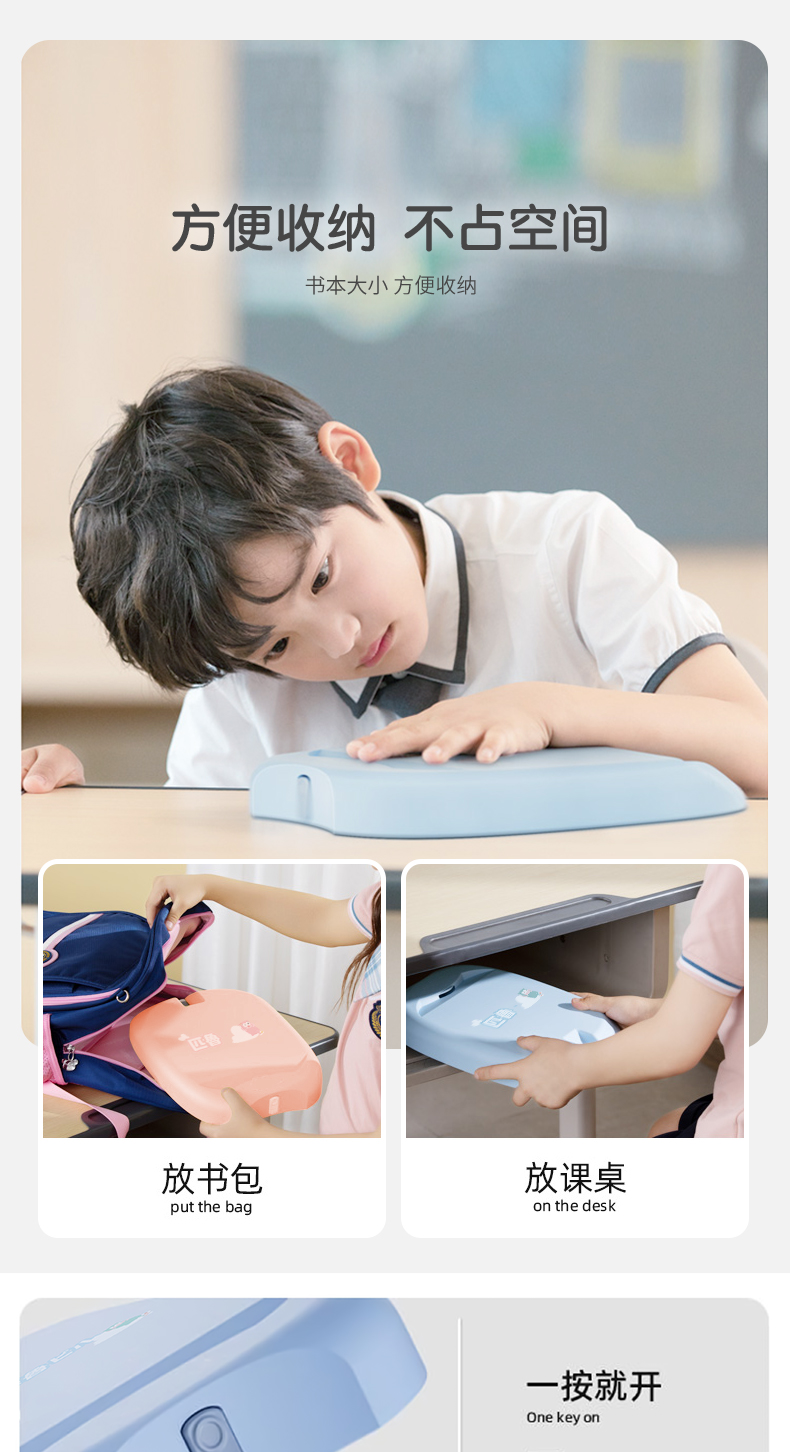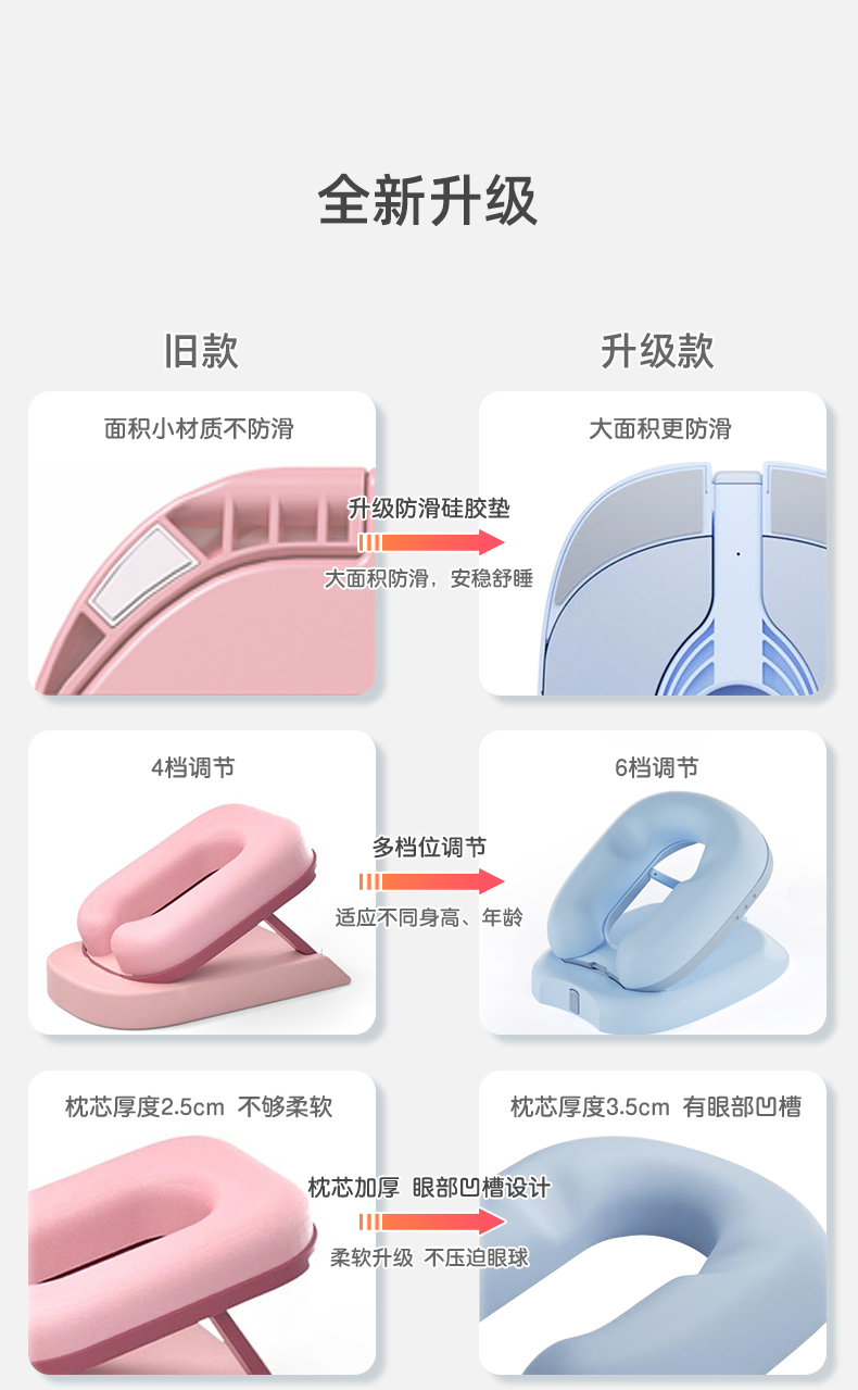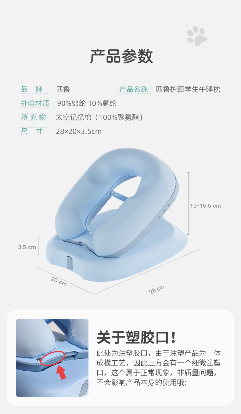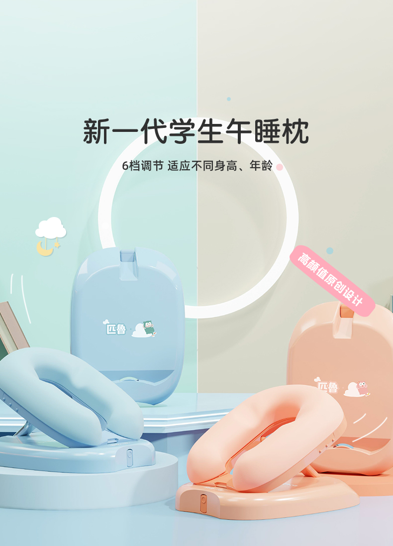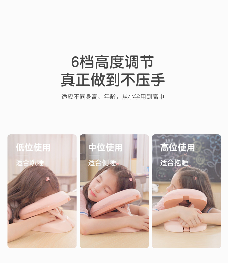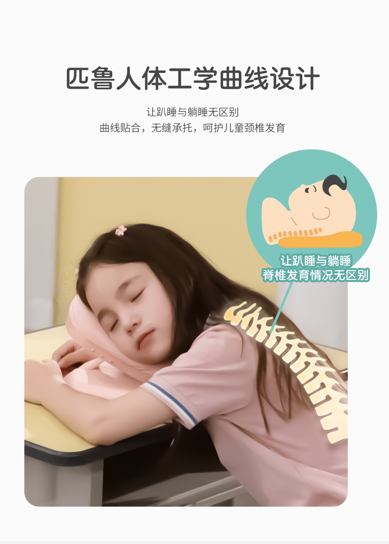 ³【匹鲁家便携午睡趴枕】2色6档调节 人体工学曲线护颈设计 可拆卸枕套 学生/办公室午休枕 XN03-CRMM-PL