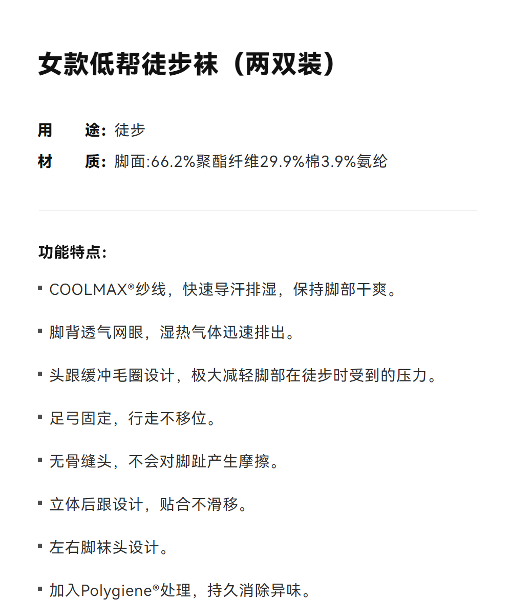 KAILAS凯乐石 女款低帮徒步袜(两双装)KH2502202