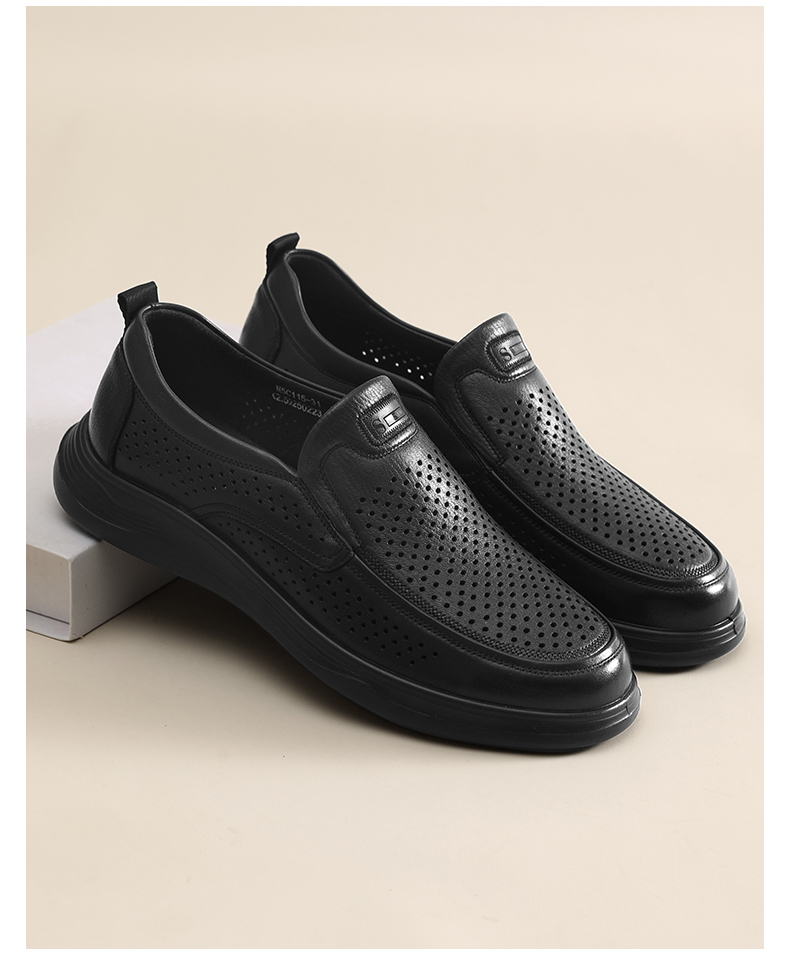 信诺羊皮男鞋2025新款夏季镂空透气洞洞鞋真皮凉鞋中年软底爸爸鞋N5C115-31